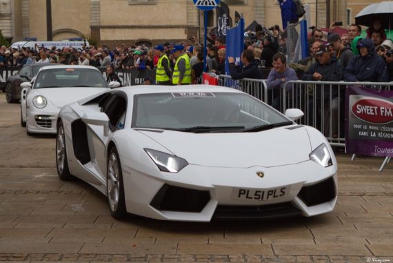 Il y a aussi une belle quantité d’anciennes qui défilent et pour le moment, tout se passe bien même si quelques détails me choquent d’emblée… J’aperçois quelques pins / autocollants / posters et autres merdouilles qui s’envolent de certaines voitures pour tomber en pluie sur les gradins. Mais… que diantre se passe-t-il ?