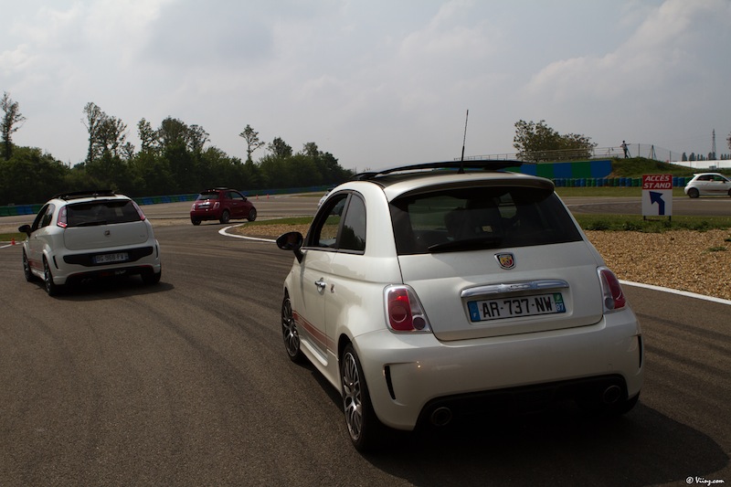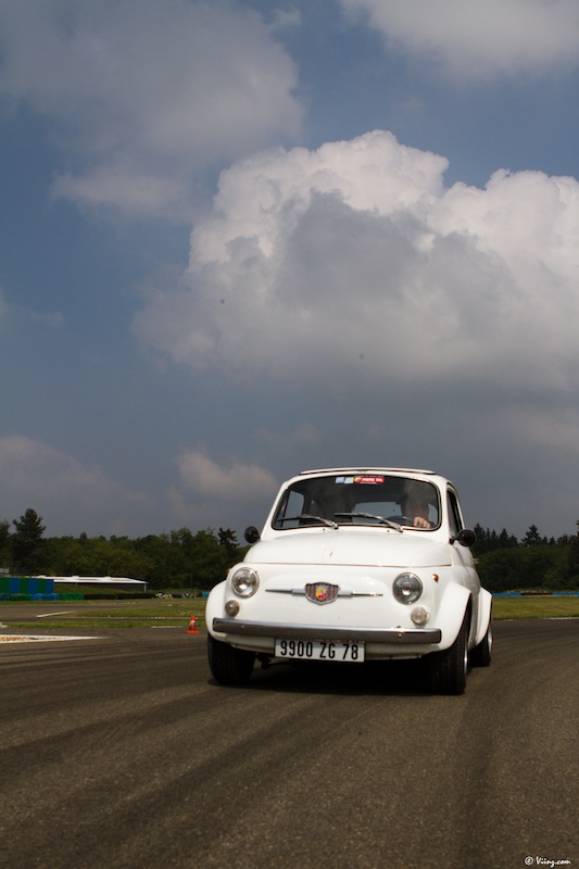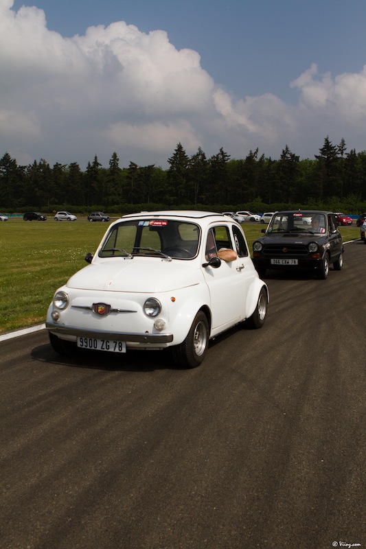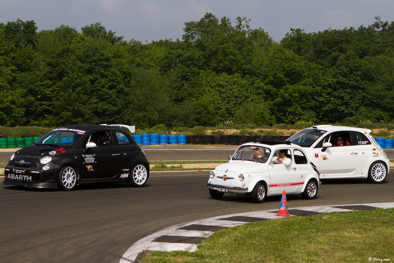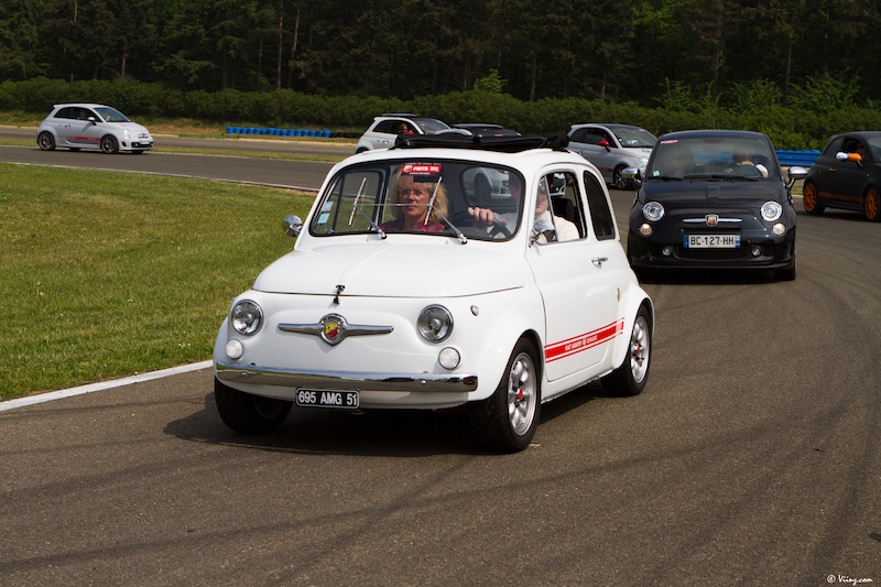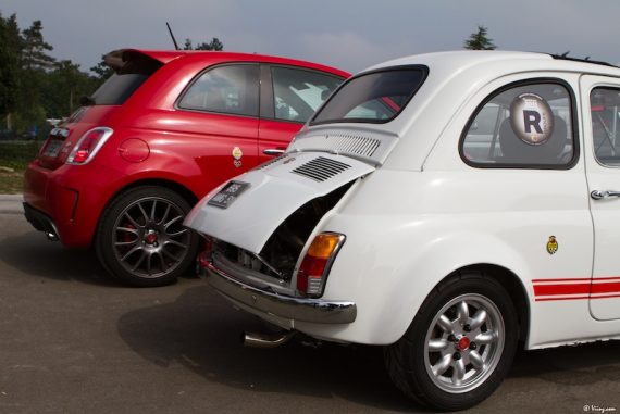 La journée a toutefois commencé par une balade sur le parc fermé regroupant toutes les voitures de la marque, des vieilles Autobianchi à la toute dernière 695 Tributo Ferrari en passant par son aïeule. Un festival de carrosseries plus ou moins personnalisées mais toutes attirantes et séduisantes.
