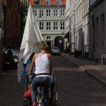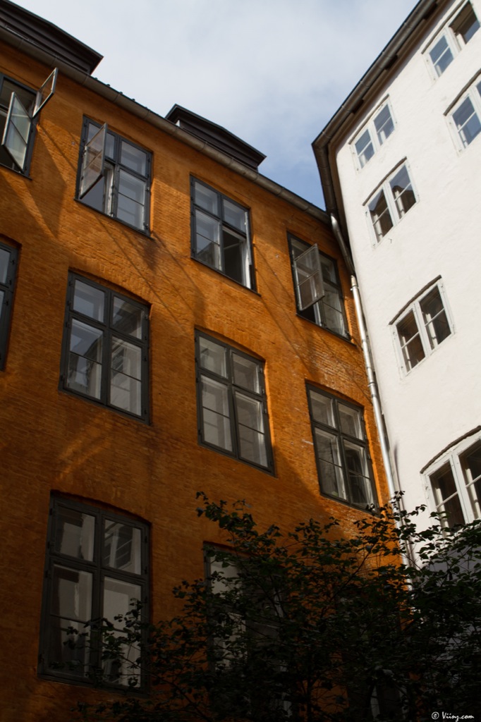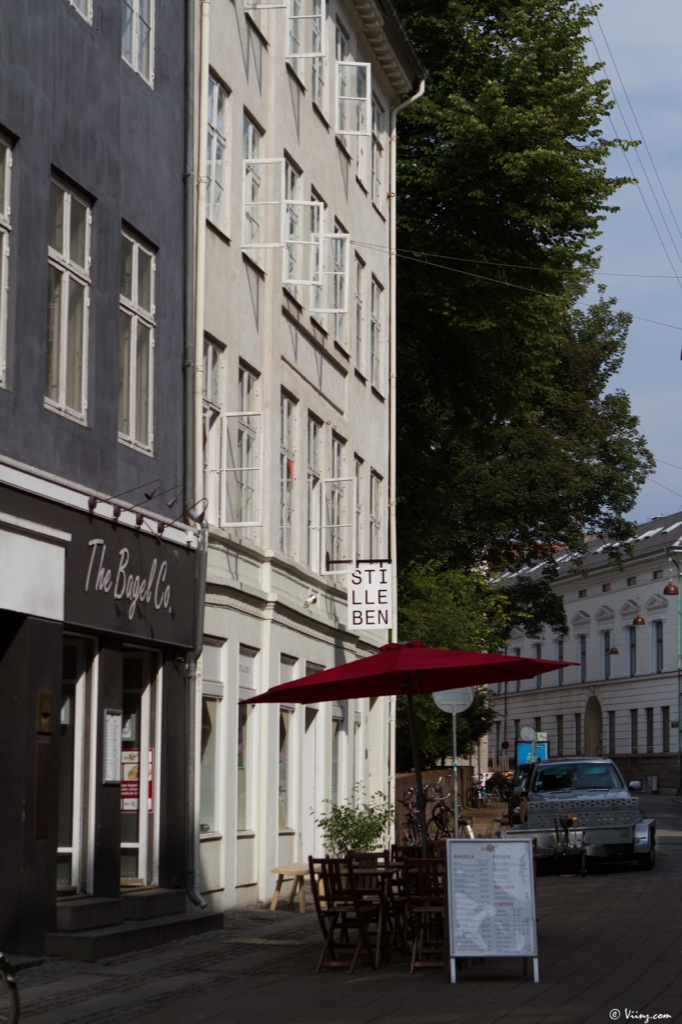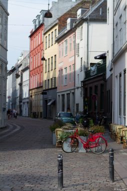 La balade s’est ensuite continuée au travers des ruelles, rues et places arborées de la ville. On remarque les façades délicieusement colorées, le pavage des rues, les tous petits passages ou encore les couvertures fournies par les bars et restaurants sur chacune des chaises. Les danois aiment rester dehors, y compris si cela implique de se recouvrir d’un joli plaid. J’aime beaucoup cette façon de penser, c’est… vivant ! Il doit faire bon vivre ici même si nous sommes fin juillet et que la ville est vidée d’une partie de ses habitants, en vacances.
