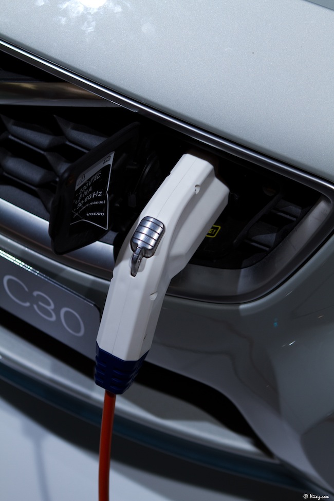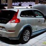 Côté véhicule électrique, Volvo croit à l’hybride et à l’électrique comme une solution à moyen terme mais cela ne doit pas occulter d’autres axes de recherche… Aussi la C30 est-elle un premier pas dans le domaine ! Amusant de soulever le capot de cette voiture, de voir la fameuse prise électrique côté capot avant, l’absence de trappe à essence… Le design n’évolue pas et tant mieux, je suis toujours aussi fan de cette voiture. A tel point que je me suis fait une petite version sur les écrans tactiles du stand… Bilan : un C30 T5 (240 ch si je me souviens bien) en boîte 6 manuelle et avec le R Design comme robe… Miam !