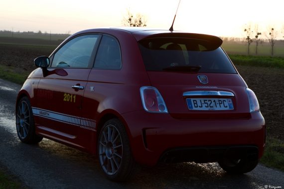 Une boîte très perfectible, un amortissement sévèrement raide pour un usage de tous les jours (mais supportable, n’abusons pas), une consommation à peine au dessus des 11 L/100 même en tapant dedans sans cesse (vraiment), un prix modéré, une bouille craquante, un moteur de feu, cette Abarth 500 esseesse est imparfaite mais tellement craquante. La 500 de base a déjà un potentiel de séduction assez massif ; avec cette version Abarth et plus encore avec le kit esseesse, elle devient une arme de séduction globale, attirant les regards, les oreilles, mangeant l’asphalte avec envie et clouant au pilori nombre de voitures. L’Abarth 500 esseesse est typiquement le genre de voiture qui me donne envie de quitter Paris pour aller jouer partout ailleurs.