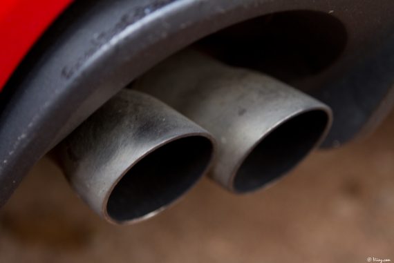 Vue de l’extérieur, cette version esseesse ne se démarque pas tant que ça de sa petite soeur mais adopte simplement des roues 17″ propres au kit. Elle se remarque aussi au travers du “esseesse” marqué sur le capot et un peu plus bas… Oh tiens. Quatre sorties d’échappement. Oui. Quatre. Alors moteur.