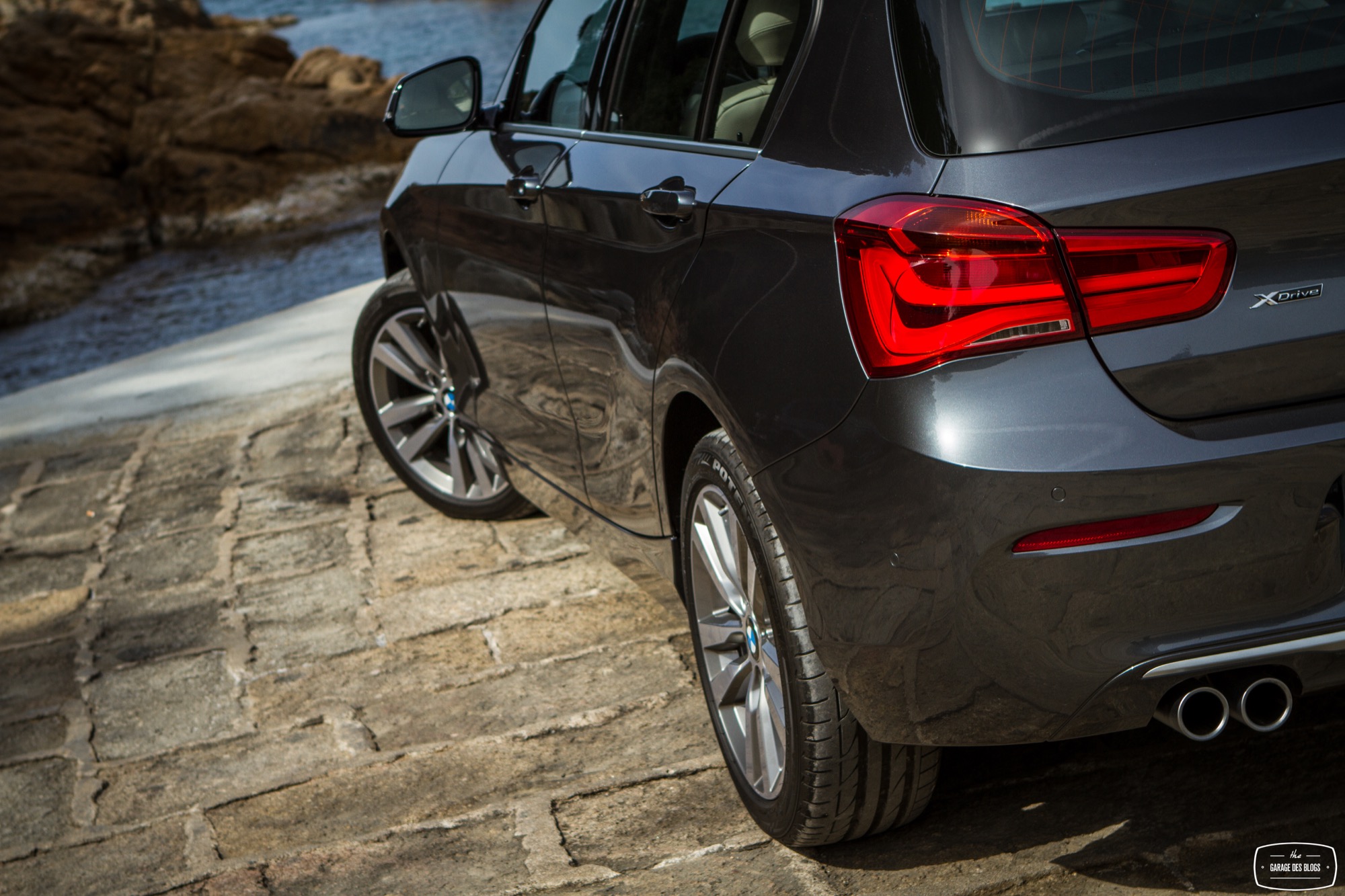 La BMW Série 1 s’est vue offrir un lifting de mi-vie particulièrement bienvenu car sa naissance remonte à 2011. Le regard quelque peu singulier et les feux arrière monobloc ont disparu et c’est bien mieux ainsi. La face avant se rapproche désormais des standards de la marque avec de nouveaux feux (LED ou full LED en option) et une calandre à effet 3D en sus d’une partie basse plus expressive. L’arrière change aussi avec l’intégration de feux en deux blocs, l’un toujours intégré aux flancs, l’autre au hayon. Nouvelles roues, flancs en revanche inchangés si je ne m’abuse, l’ensemble est plutôt cosy et redonne une once de classe à la voiture, la rendant sur cette finition supérieure plus statutaire, voire sexy. C’est donc tout à fait réussi pour ce qui me concerne, surtout que le regard précédent me collait les miquettes ! Série 1, même en version 5 portes, a enfin une belle bouille et elle intègre aussi une jolie double sortie d’échappement (oui, ce n’est plus réservé aux 6 en ligne désormais).