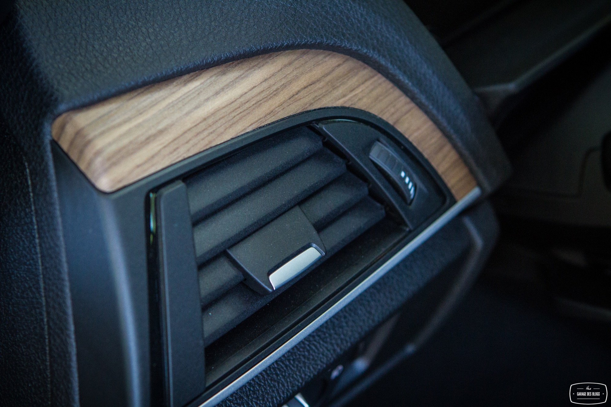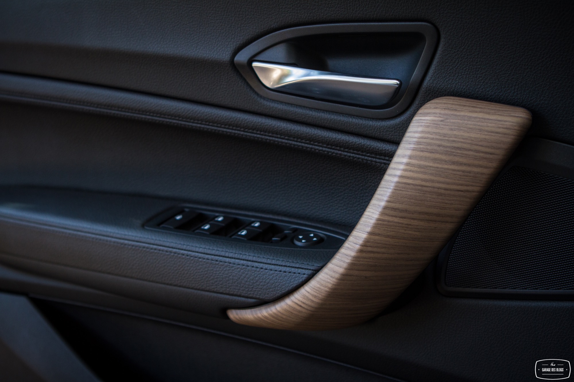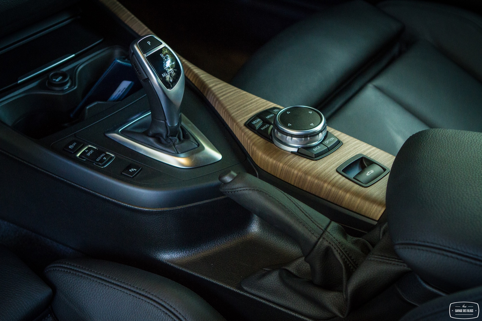 L’intérieur est à comparer à celui de la Série 1 décrit précédemment : même niveau d’équipement mais des inserts en bois joliment faits, même volant très vilain, mêmes avantages et inconvénients pour ce qui est du pavé tactile BMW iDrive et son écran : je ne saurais donc que vous conseiller ici aussi un volant sport en option ! Les sièges, manquant cruellement de maintien dans la 120d, sont ici des sièges “sport” et leur maintien en courbe est un bon compromis entre le sport et le confort. Bref : changez le volant, pour le reste on est globalement bien dans ce cabriolet, en plein soleil !