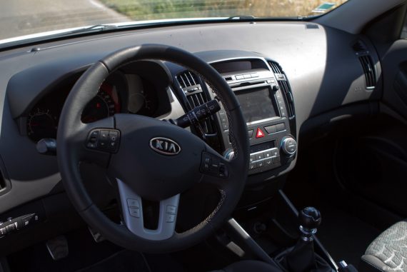 Intérieurement, le bilan est en revanche assez mitigé. Le restyling de début d’année est passé par là mais il n’est pas passé partout. Autant sur les versions de base de la Pro Cee’d, je veux bien le comprendre, autant sur cette définition c’est un peu dommageable. Ainsi, de bons éléments de finition côtoient des plastiques noirs, durs et de qualité assez moyenne. Les accoudoirs par exemple sont en mauvais plastique alors qu’ils sont bordés de matériaux de qualité supérieure issus du restyling. Assez incompréhensible. L’ensemble reste cohérent et surtout, en se plaçant du point de vue de l’ingénieur, il faut bien comprendre qu’un restyling n’est pas une refonte du véhicule… autrement dit il est normal de retrouver d’anciens éléments au milieu des nouveaux, tout est question de maintien des coûts !