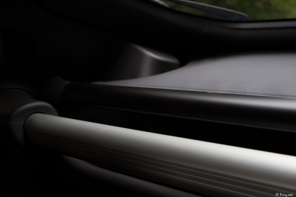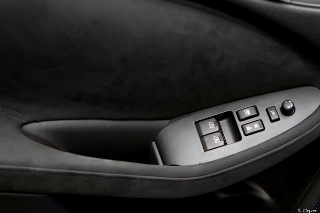 Ainsi, l’assise est bonne, les sièges confortables et enveloppants : on est maintenu dans toutes les conditions sans toutefois se sentir compressé et leur réglage se fait sans problème. Le volant tombe parfaitement sous la main avec le regard toujours un peu enamouré en regardant le Z au centre du cerceau quand bien même la qualité de matériaux du centre du volant mériterait justement un petit “plus”. C’est l’impression globale qui ressort du reste de l’habitacle d’ailleurs ! C’est bien voire très bien mais il manque parfois quelque chose, comme pour la plupart des boutons. Reste que l’essentiel est préservé : qualité de la jante du volant, levier de vitesse, contreportes en alcantara, l’ensemble compteurs, écran tactile facile à utiliser et sièges conducteur comme passager : on est bien à bord ! Spartiate, mais pas trop.