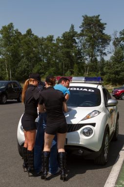 Place désormais au Juke-R après m’être fait gentiment punir par la R-Squad… (vraiment gentiment, j’en ai même redemandé, forcément, c’était n’importe quoi !). La bestiole chausse ses pneus et s’engage sur le slalom. Petit moment de stress et puis la confiance revient : plein gaz. On reste à vitesse relativement basse mais les sensations sont d’ores et déjà là ! Le grip de ce monstre est fantastique et la puissance passe au sol avec facilité, y compris sur le mouillé alors que les quatre roues veulent dériver. Glisser, c’est perdre du temps, aussi ai-je été délicat sur l’accélérateur. Un peu moins sur le frein avec ce dernier freinage terriblement tardif mais qui aura eu le mérite de me faire rire. Au moins n’ai-je pas bougé les plots ! J’ai retrouvé pendant ce roulage mes sensations de Dubaï. Le Juke-R est facile à conduire, son freinage est dément et surtout on s’attend à tout sauf à cette accélération, digne de la GT-R. Cela souffle sous le capot et cela se sent sous le pied et entre les mains. Cette machine est un délire d’ingénieurs et de passionnés, c’est donc un régal à conduire pour un ingénieur passionné.
