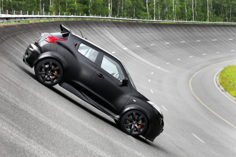 Le temps de reprendre mon souffle, le Juke-R chausse des pneus spéciaux. Il s’agit maintenant de parcourir l’anneau de vitesse du CERAM, d’aller flirter avec la vitesse maximale du monstre, de sentir l’accélération dantesque à laquelle on est soumis alors qu’on se trouve tout en haut de l’anneau. Jouissance. Je stresse un peu, les mains un peu moites et en même temps, je crève d’envie d’appuyer sur l’accélérateur. Franchement, fermement, avec autorité.