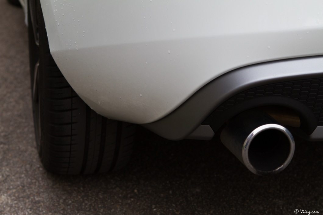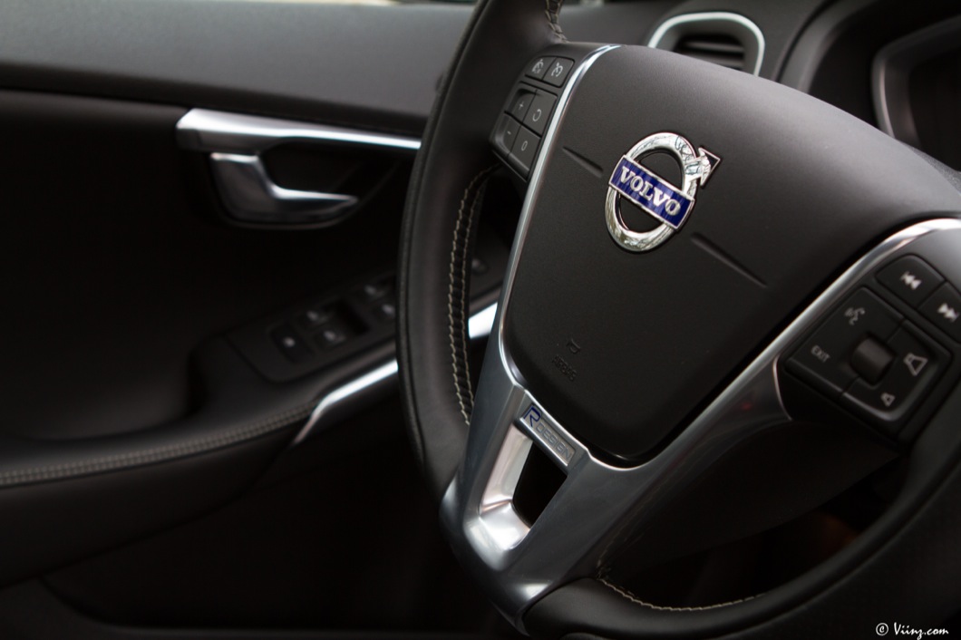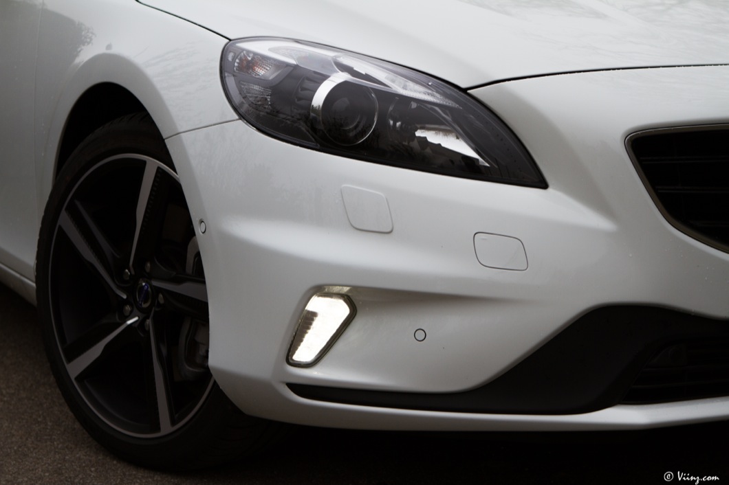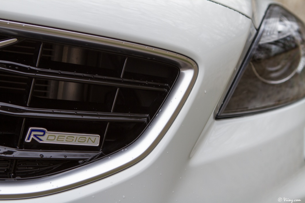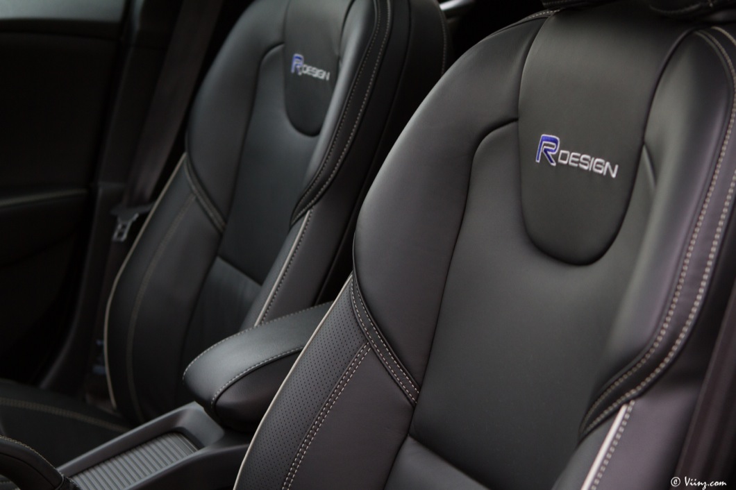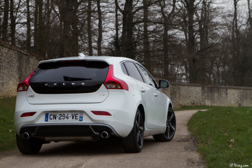 Je ne vais pas forcément revenir en détails sur ce que je pense de la robe de V40, vous savez déjà que je la considère comme l’une des plus belles compactes aux côtés de la Mercedes Classe A. La version R-Design ajoute simplement une touche de sportivité et d’agressivité au design original de la suédoise. Bouclier avant plus dessiné et spécifique, roues en 18″ et pneus taille basse, diffuseur arrière et double sortie d’échappement, rétroviseurs et contours de vitres argentés. La retouche est légère mais elle suffit à faire le distinguo entre une V40 “normale” et une R-Design, pack optionnel que l’on peut appliquer à n’importe quel modèle si je ne m’abuse… Sur la T5, il est plus que légitime !