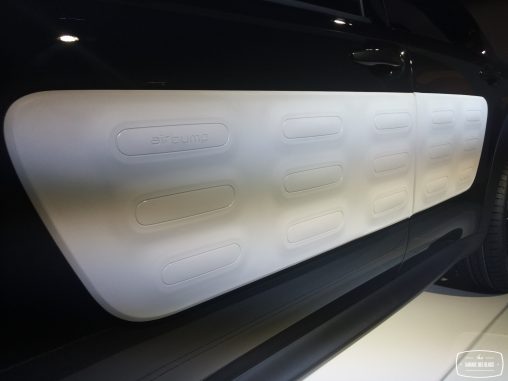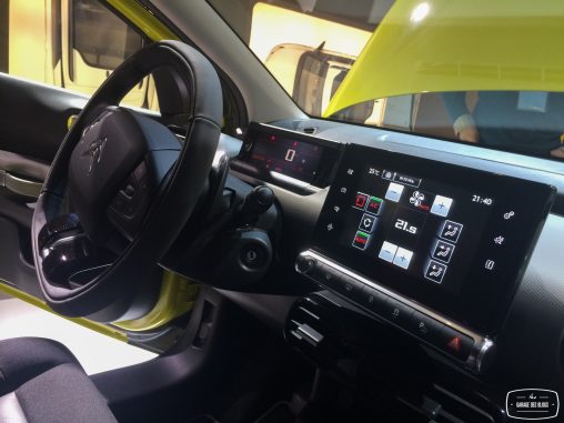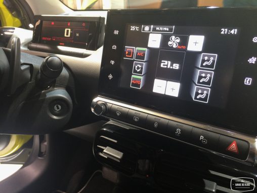 A l’intérieur, même combat de simplification avec une boîte auto dont les trois gros boutons D/R/N se veulent simples d’accès. La planche de bord se transforme en malle de voyage et force l’airbag à migrer dans le pavillon, une première. Les poignées de porte sont doublées sous forme de lanières rappelant le monde de la bagagerie. Enfin, la technologie est également bien présente avec le bloc d’instrumentation numérique et la tablette tactile qui se diffuse peu à peu chez PSA.