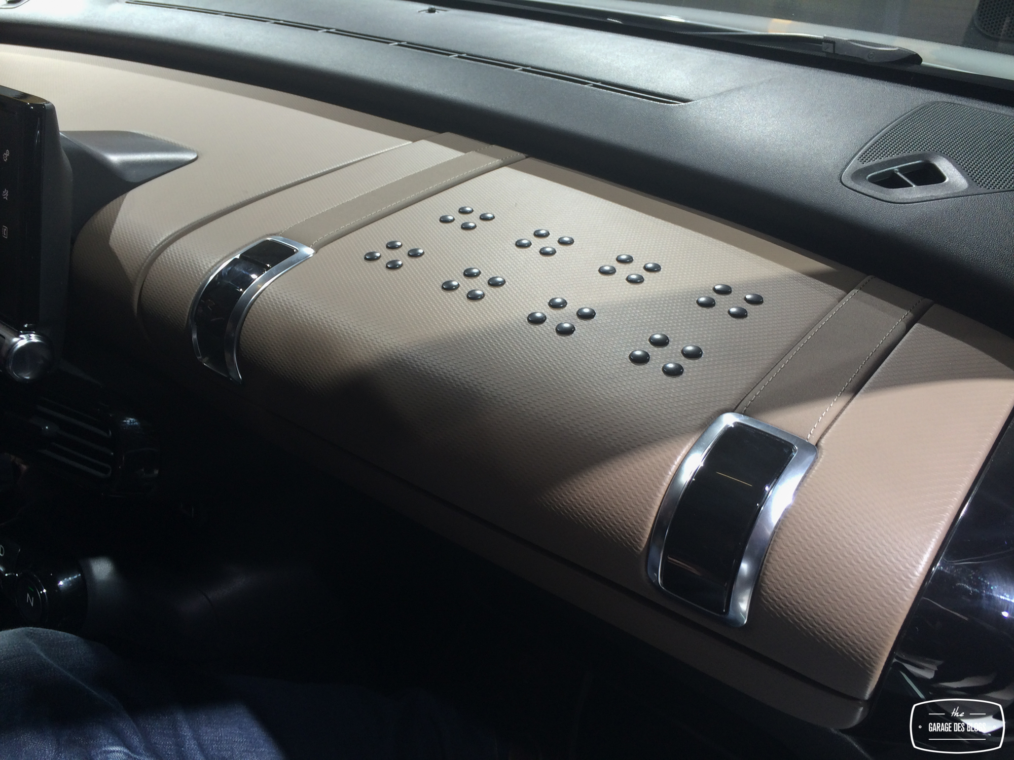 A l’intérieur, même combat de simplification avec une boîte auto dont les trois gros boutons D/R/N se veulent simples d’accès. La planche de bord se transforme en malle de voyage et force l’airbag à migrer dans le pavillon, une première. Les poignées de porte sont doublées sous forme de lanières rappelant le monde de la bagagerie. Enfin, la technologie est également bien présente avec le bloc d’instrumentation numérique et la tablette tactile qui se diffuse peu à peu chez PSA.