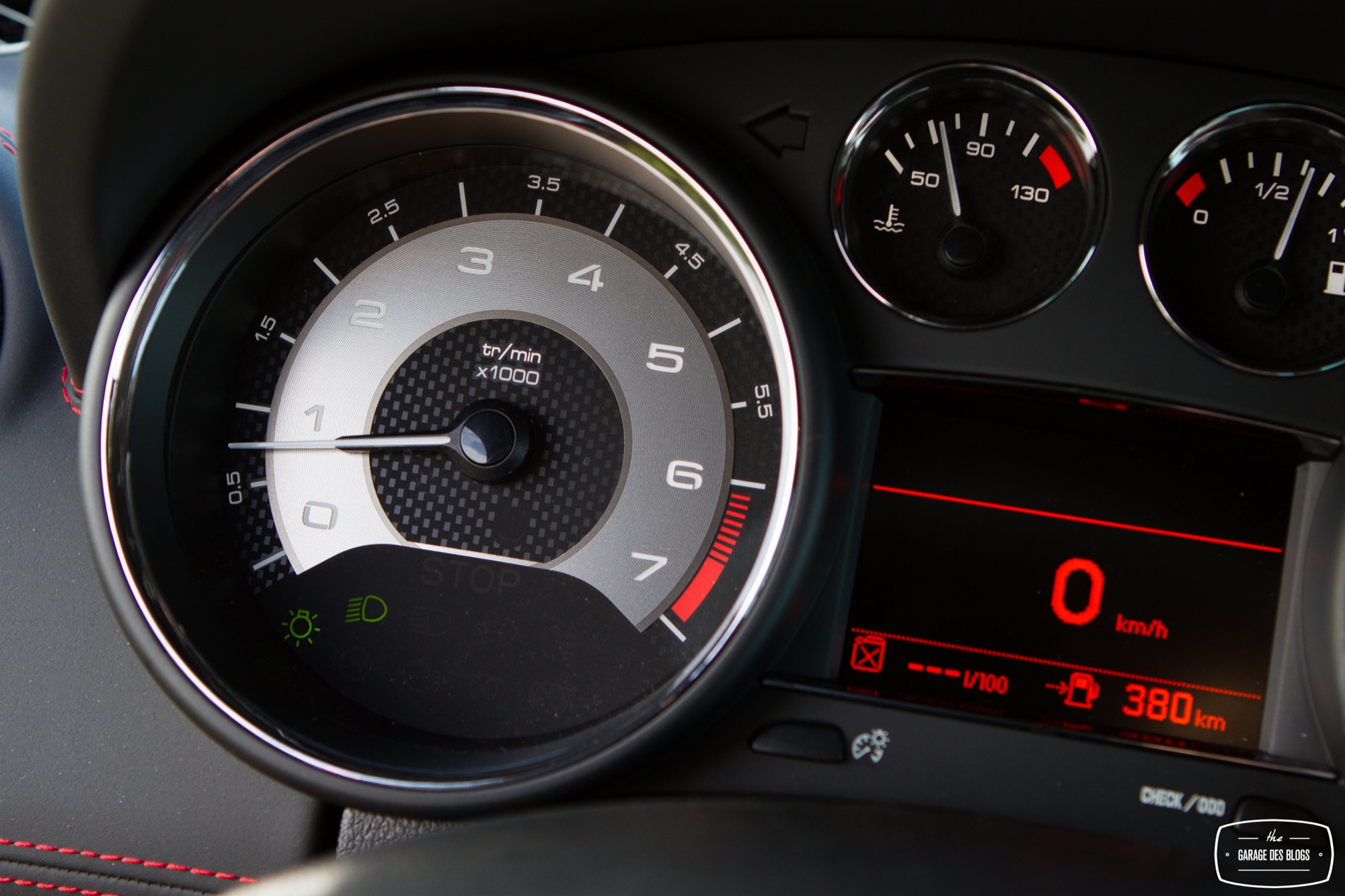 Un moteur avec du caractère donc, voilà qui commence bien (et qui consomme raisonnablement au vu de mon roulage : 12.1 l/100 sur les 550 km) ! La boîte quant à elle est un peu moins bonne que ce à quoi je m’attendais. Les verrouillages et guidages manquent d’un petit quelque chose de précision, de netteté, par rapport au reste des éléments techniques qui sont bien marqués Peugeot Sport. Attention, je ne dis pas pour autant que la boîte est mauvaise, loin de là, d’autant plus que l’embrayage est quant à lui bien en toutes circonstances et conditions de roulage. Les rapports sont bien étagés, la quatrième passant à 130 km/h avant d’enchaîner les autres rapports jusque 250 km/h. En clair : du très bon mais avec un petit plus de rugosité et ça aurait été parfait. Le constat est meilleur du côté de la direction. Il est même excellent puisque cette direction est un régal de précision et de ressenti. Le toucher de route et les remontées d’informations sont parfaitement dosées, permettant de bien ressentir le comportement et le placement de la voiture, y compris sur revêtements dégradés. Attention toutefois, le train avant est très directif et n’hésitera pas à emmener la voiture où les pneus veulent l’emmener. Il faut par conséquent rester attentif sur des routes particulièrement dégradées et étroites ou gare aux surprises !