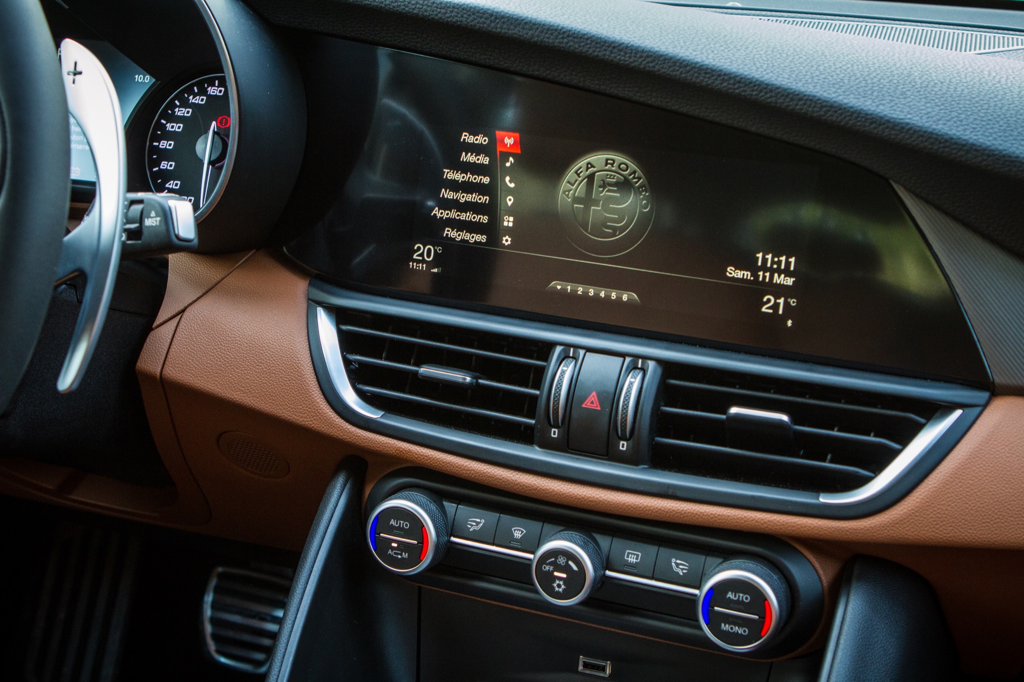 Je vais faire dans la revue de détails puisque c’est mon premier essai de cette nouvelle voiture, de l’habitacle qui vient aussi avec la nouvelle plateforme Giorgio. Si vous souhaitez passez un brin plus loin pour le ressenti au volant, ma foi n’hésitez pas mais surtout notez bien que cet habitacle est une indubitable réussite, combinant avec talent une ambiance chaleureuse assez unique assez ce cuir tabac et des technologies certes pas à l’état de l’art mais maîtrisées.