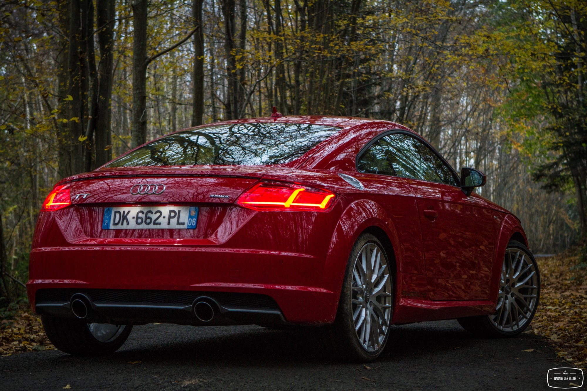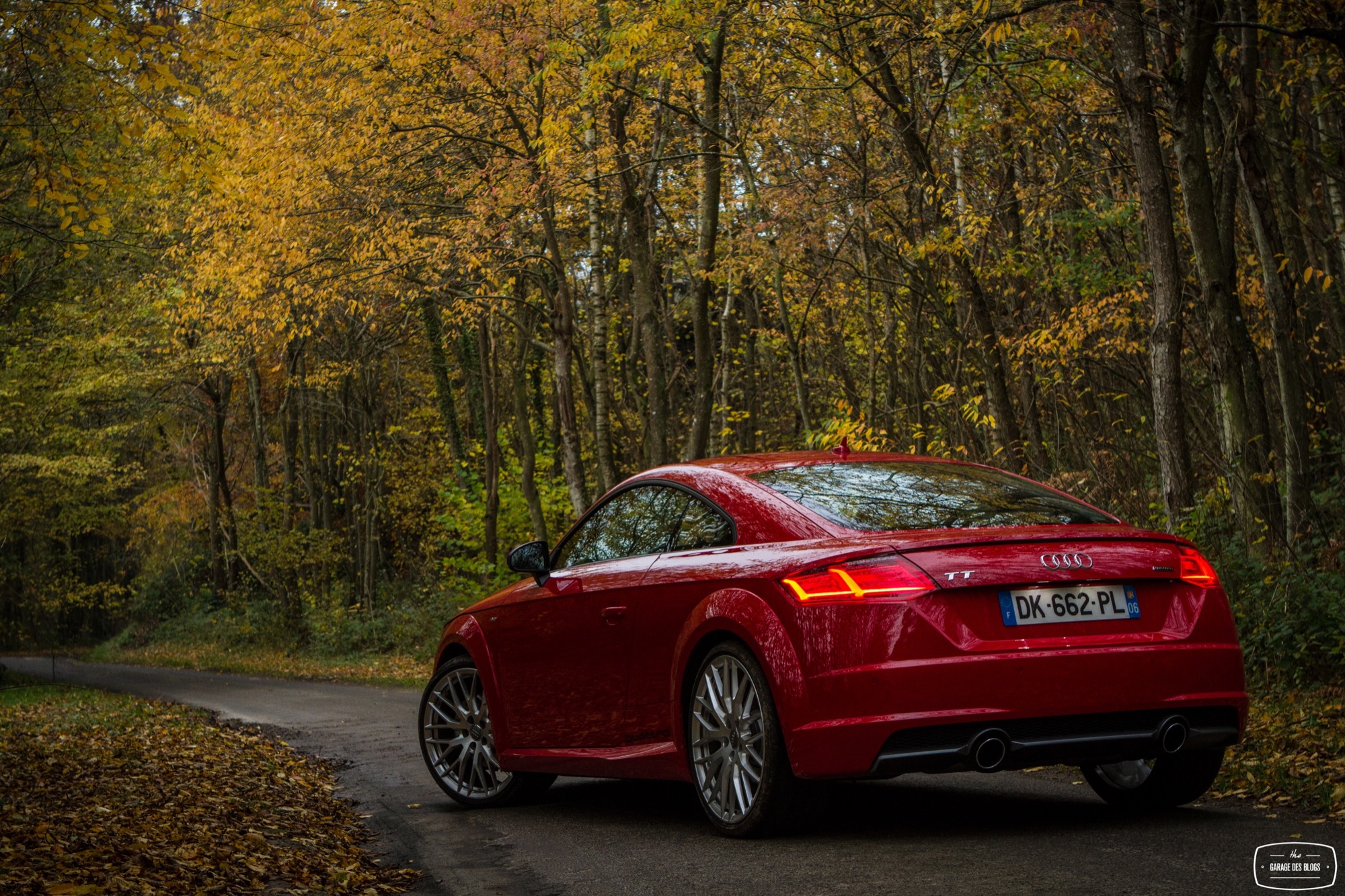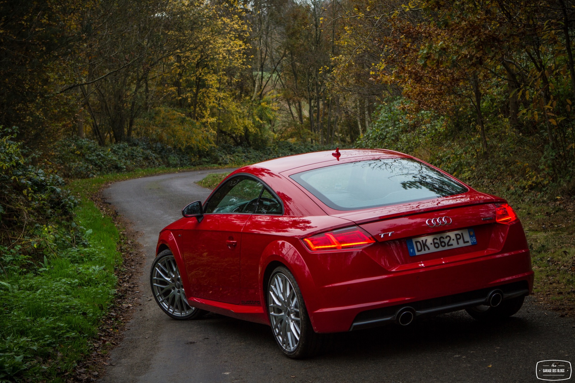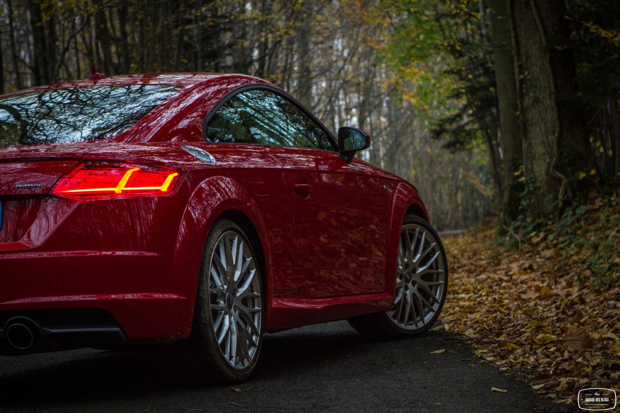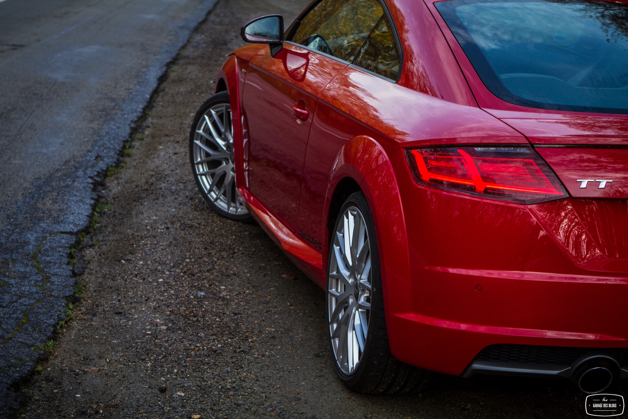 Pour sous-virer avec cette voiture, il faut être totalement sale ou rater un gros freinage. C’est d’ailleurs ma seule critique d’un point de vue dynamique puisque pour ce qui est du châssis / direction / suspension, je n’ai vraiment rien à dire si ce n’est réitérer mes compliments déjà faits pour S1 : Audi est de nouveau sur la bonne voie et je ne devrai plus jamais m’emmerder au volant de leurs voitures. En revanche, je me pose quelques questions sur le freinage. Je n’ai pas senti une efficacité diabolique de ce côté là avec un mordant un peu fade et surtout quelques décélérations difficiles une fois le système en température. Serait-ce mieux avec les roues standard ? Mes patins étaient-ils déjà un brin rincés ? Je ne sais pas mais il faut pondérer aussi un peu en me disant que le TT “standard” n’est pas non plus une voiture destinée au circuit mais bien au “TT”. Autrement dit, en conduite sportive, il ne devrait pas y avoir de souci mais je crois que je conseillerais toutefois de rester sur les roues standard, quand bien même celles-ci sont splendides.