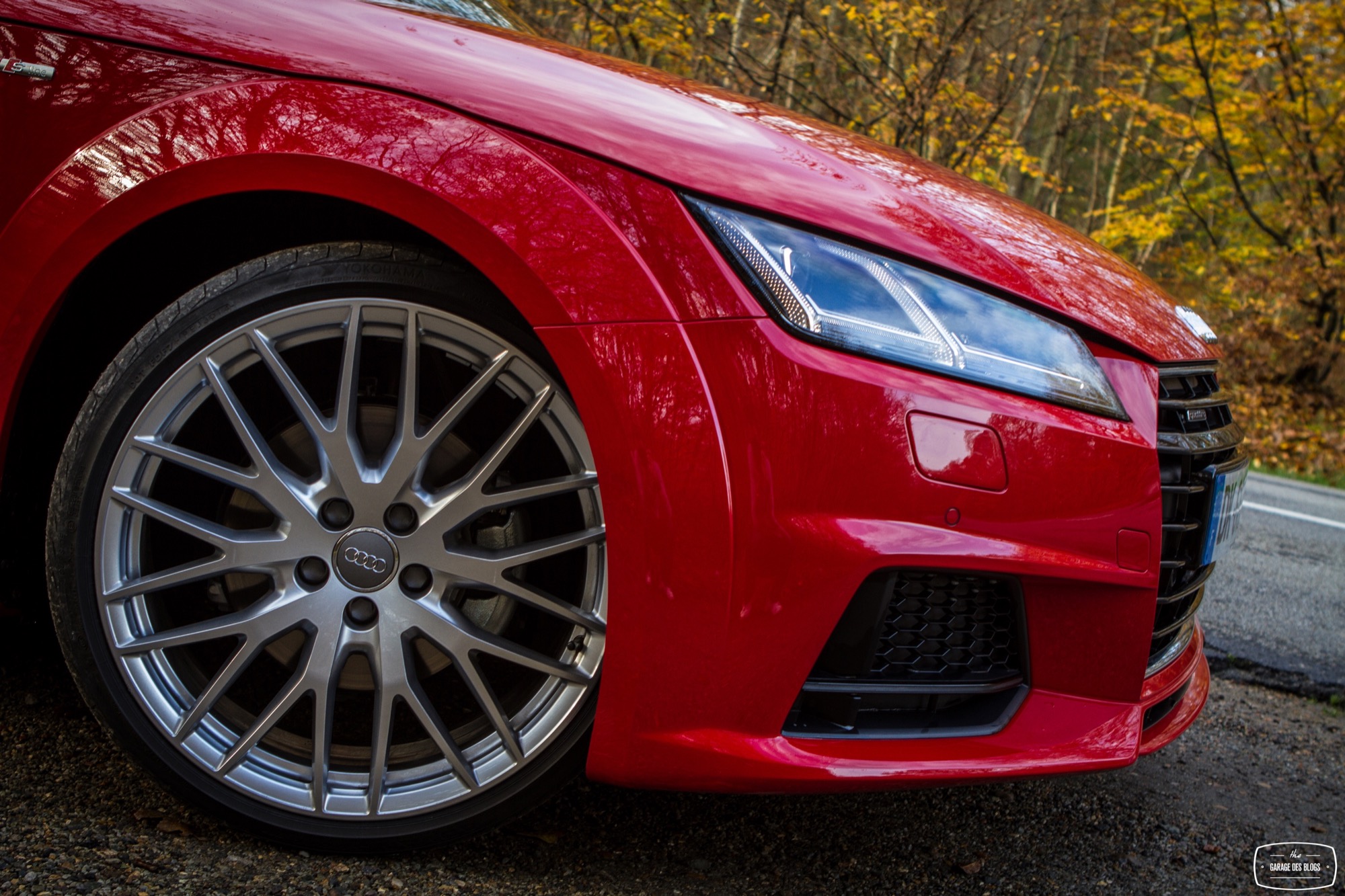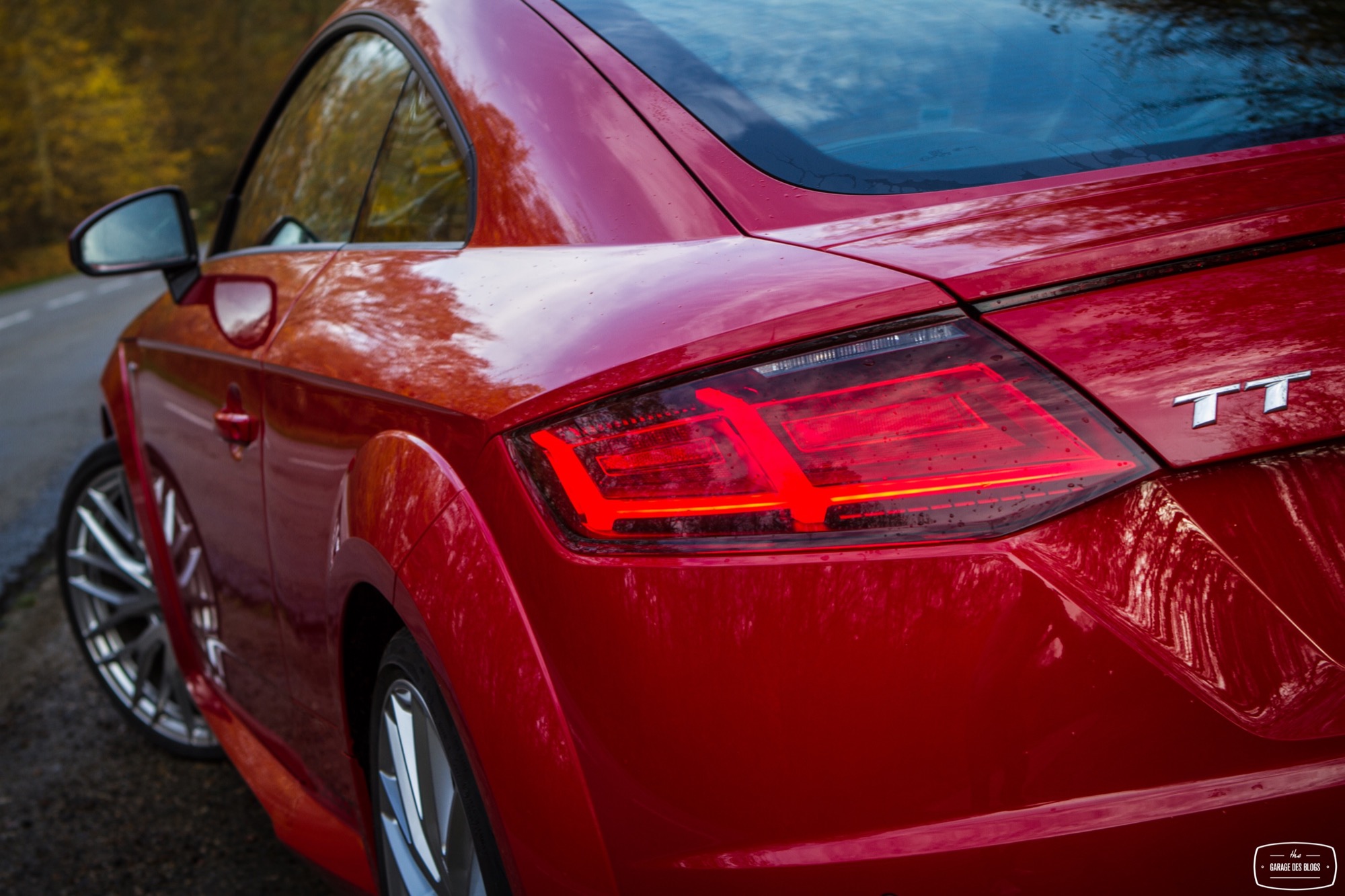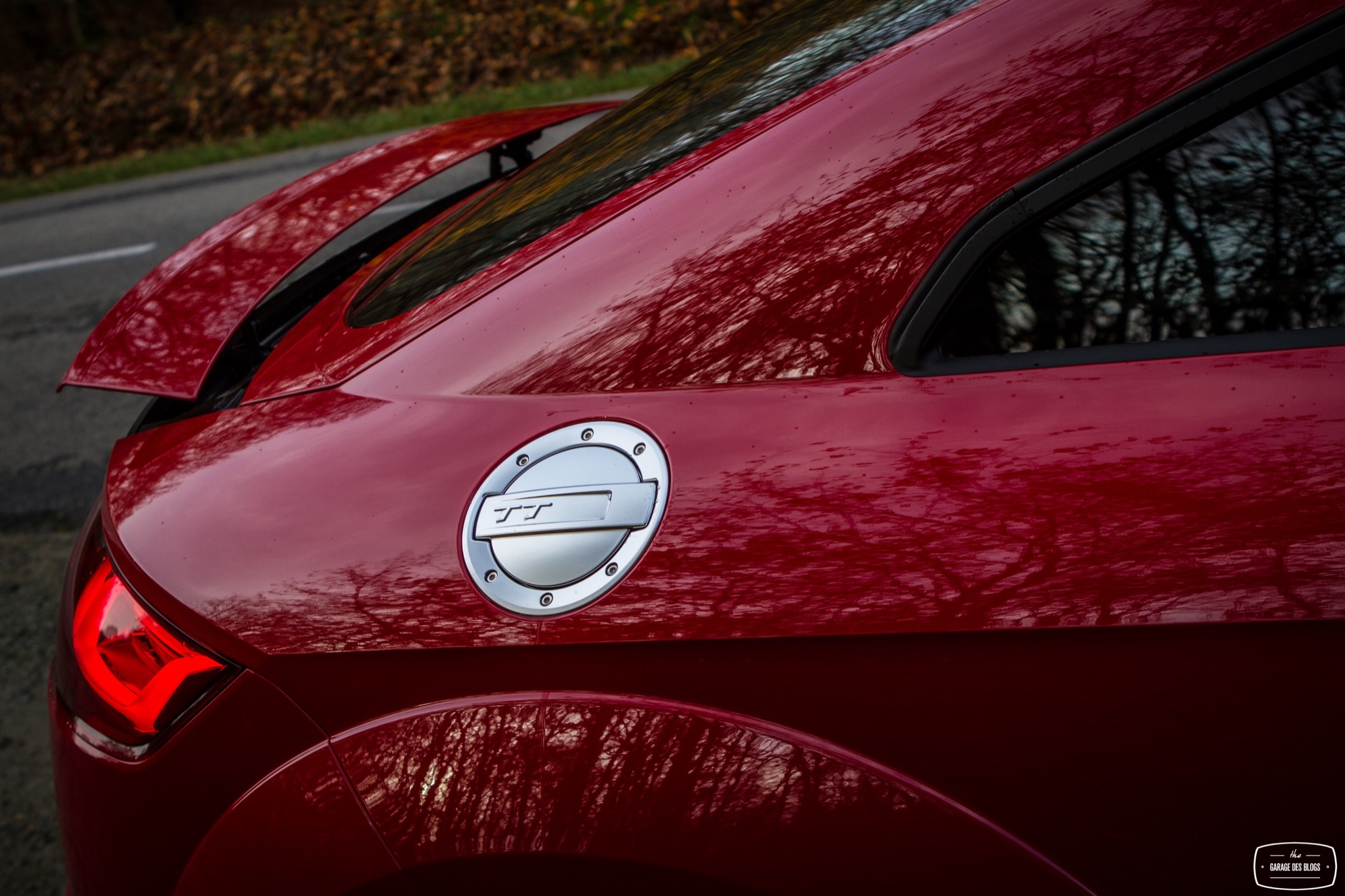 On commence les lignes extérieures pour constater qu’Audi a su rendre hommage à l’initiateur du mythe tout en introduisant ses plus récents codes dans la face avant. Les feux arrière, les ailes légèrement élargies, le bouchon de réservoir ou encore le profil tout en rondeurs, tout cela rappelle fortement le MkI et n’est pas pour me déplaire. Du côté de la face avant, Audi a joué la carte d’une certaine agressivité, notamment avec le pack S-Line qui acère les traits du TT avec une calandre singleframe bien marquée et surlignée d’un fin trait de chrome mais surtout des ouïes béantes de part et d’autre.