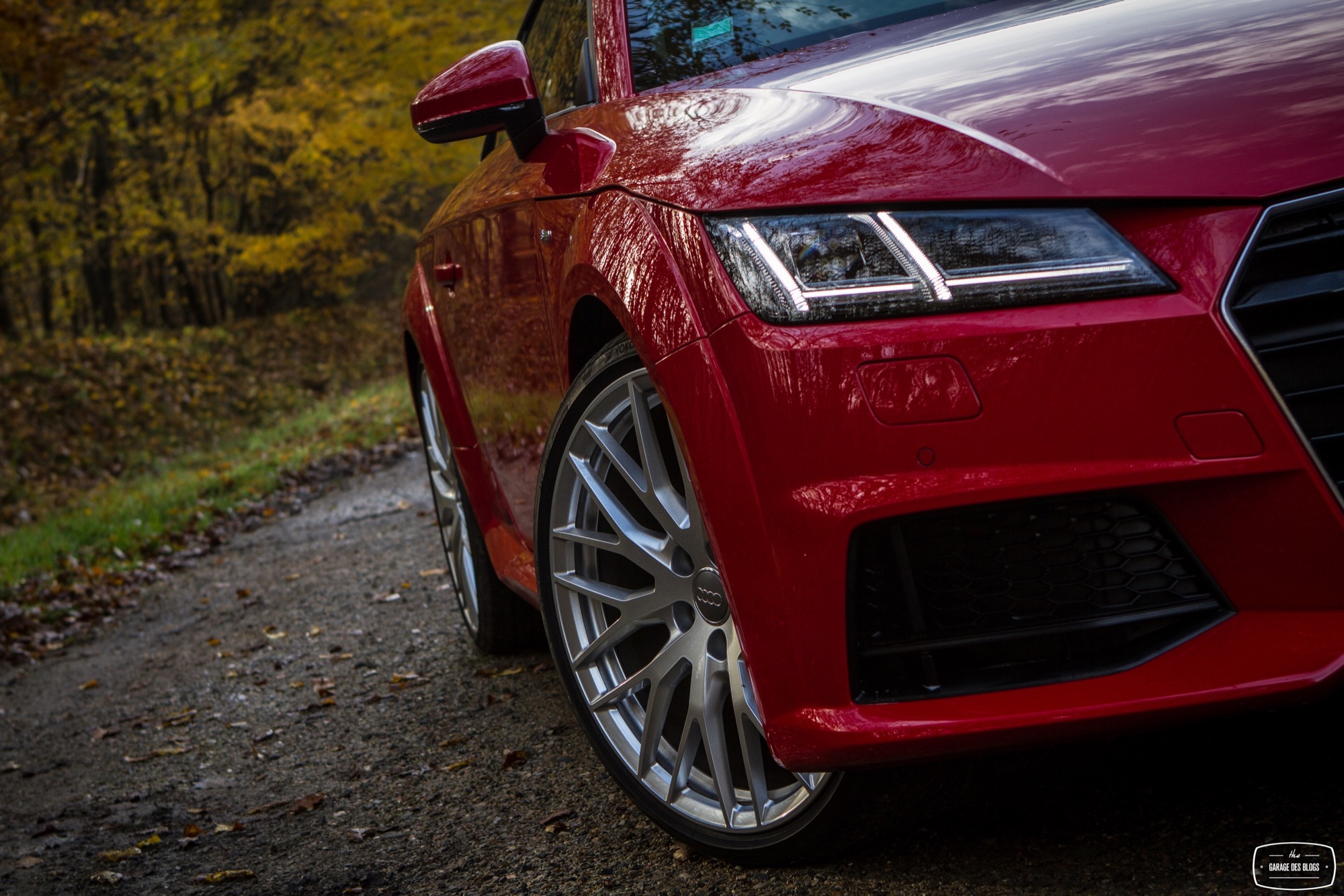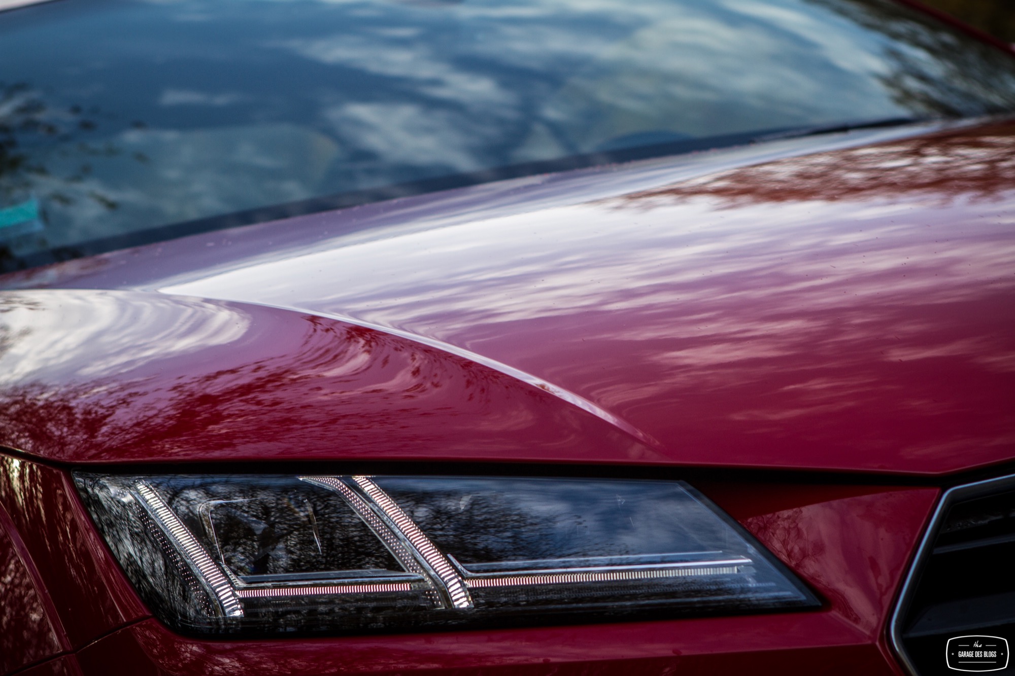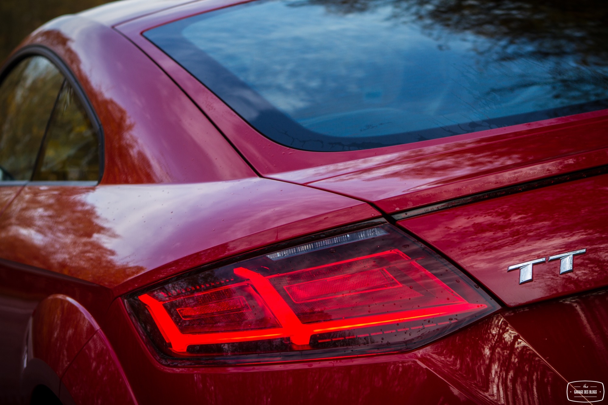 On commence les lignes extérieures pour constater qu’Audi a su rendre hommage à l’initiateur du mythe tout en introduisant ses plus récents codes dans la face avant. Les feux arrière, les ailes légèrement élargies, le bouchon de réservoir ou encore le profil tout en rondeurs, tout cela rappelle fortement le MkI et n’est pas pour me déplaire. Du côté de la face avant, Audi a joué la carte d’une certaine agressivité, notamment avec le pack S-Line qui acère les traits du TT avec une calandre singleframe bien marquée et surlignée d’un fin trait de chrome mais surtout des ouïes béantes de part et d’autre.