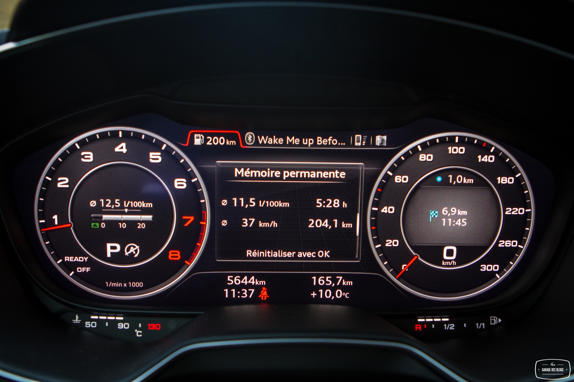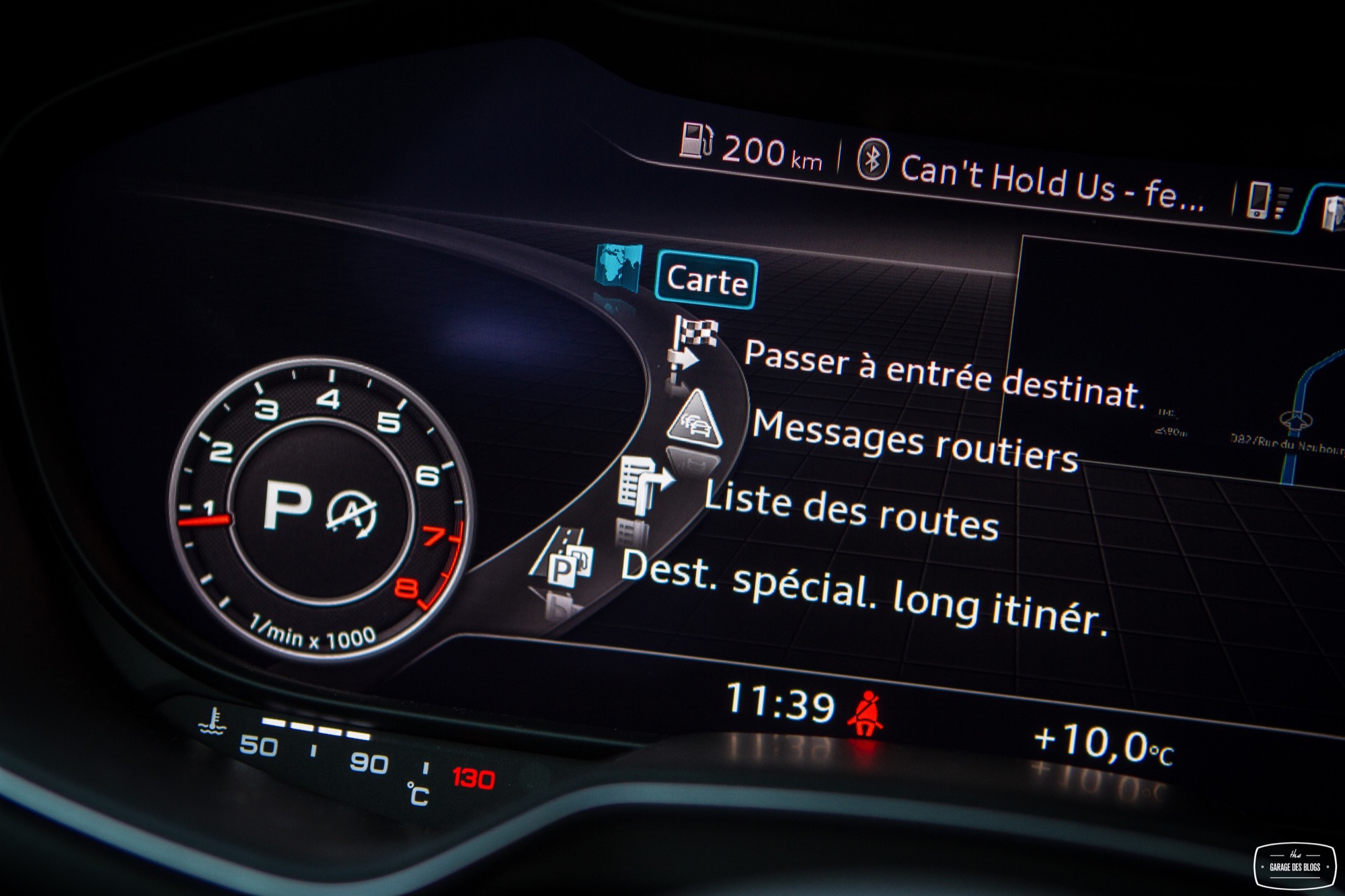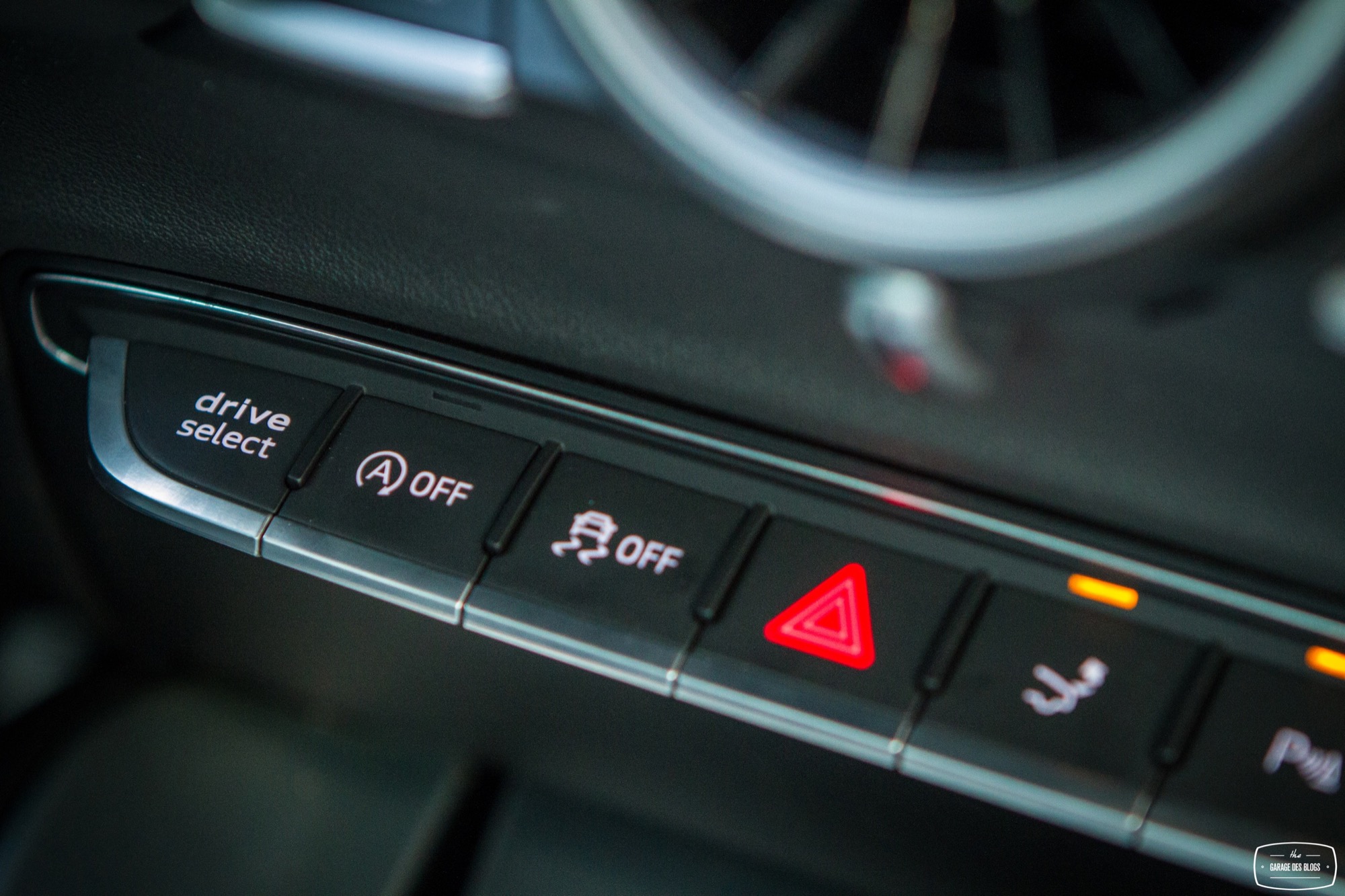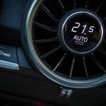 Rentrons un peu dans le détail parce qu’il le faut. Trop de choses qui changent ici pour ne pas en parler ! Je parlais donc des sièges (avec motorisation complète optionnelle) : splendides, offrant un très bon maintien et aux courbes élancées, il n’y a strictement rien à jeter. Le volant reprend les classiques Audi S / RS et il en va de même avec des surpiqûres bien faites et la bonne taille pour une excellente prise en main. Allez, un peu d’alcantara et ça aurait été absolument parfait ! Pour ce qui est du pédalier, rien à signaler non plus. Non, ce qui change vraiment, c’est évidemment le Virtual Cockpit et ses conséquences. Audi a regroupé toutes les commandes et informations dans un seul écran, celui situé derrière le volant. Il en résulte une console centrale épurée et dénuée de beaucoup de boutons. On retrouve simplement les ouïes d’aération, elles aussi compactées. Un petit actionneur situé en dessous permet d’ouvrir le flux, la bague extérieure sert quant à elle à orienter le flux et enfin la bague centrale affiche certaines informations tout en étant cliquable et réglable (température, mode, etc.). C’est intelligent et pratique au quotidien, un vrai bon point puisque la simplification est ici réussie et pragmatique. Même combat pour la rangée de boutons en dessous qui touche au minimalisme : Driving Select, déploiement de l’aileron (bien pour les photos… sinon il se déploie tout seul à 120 et se replie à 80), ESP, warnings, capteurs de parking et start/stop.