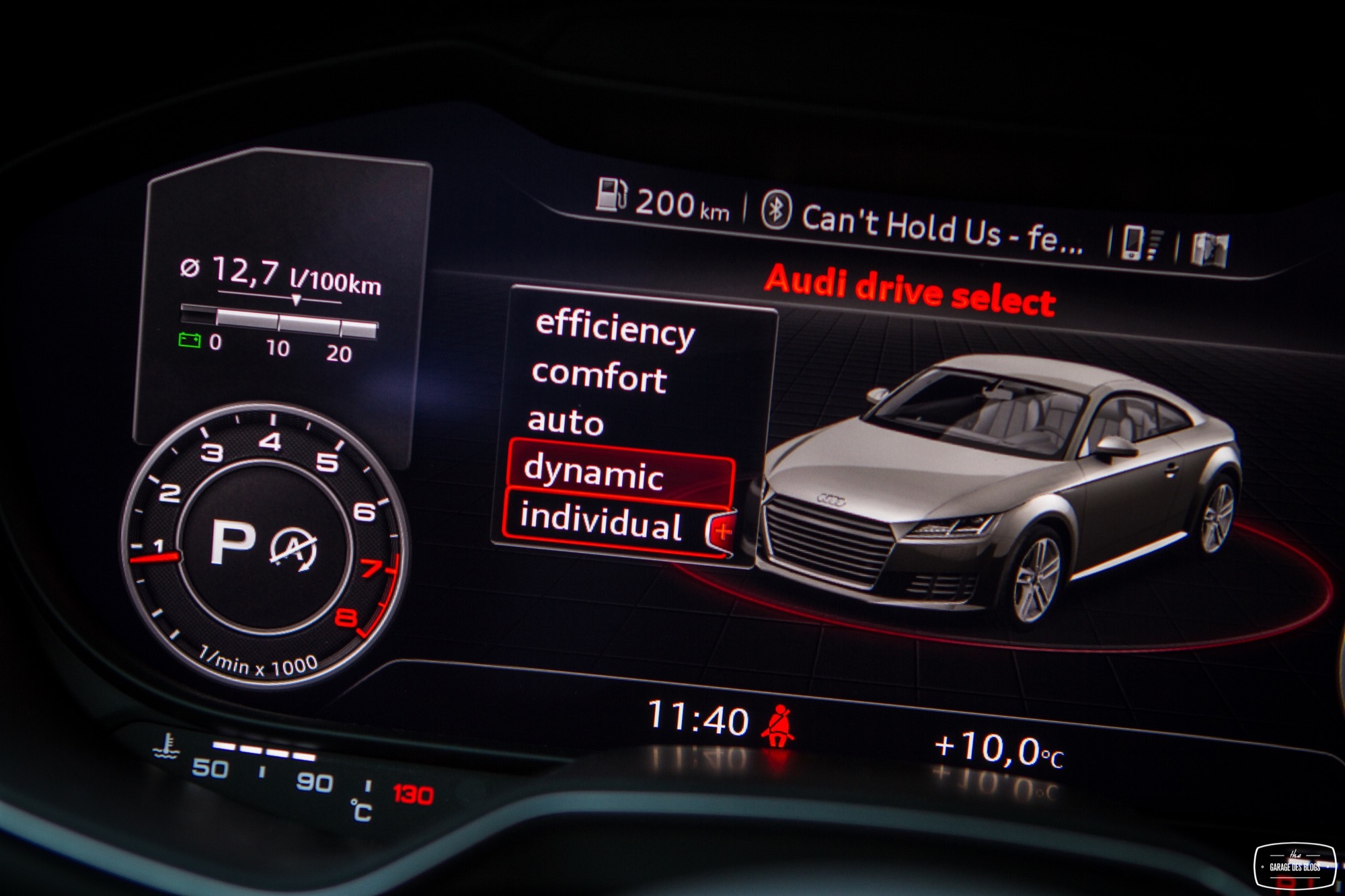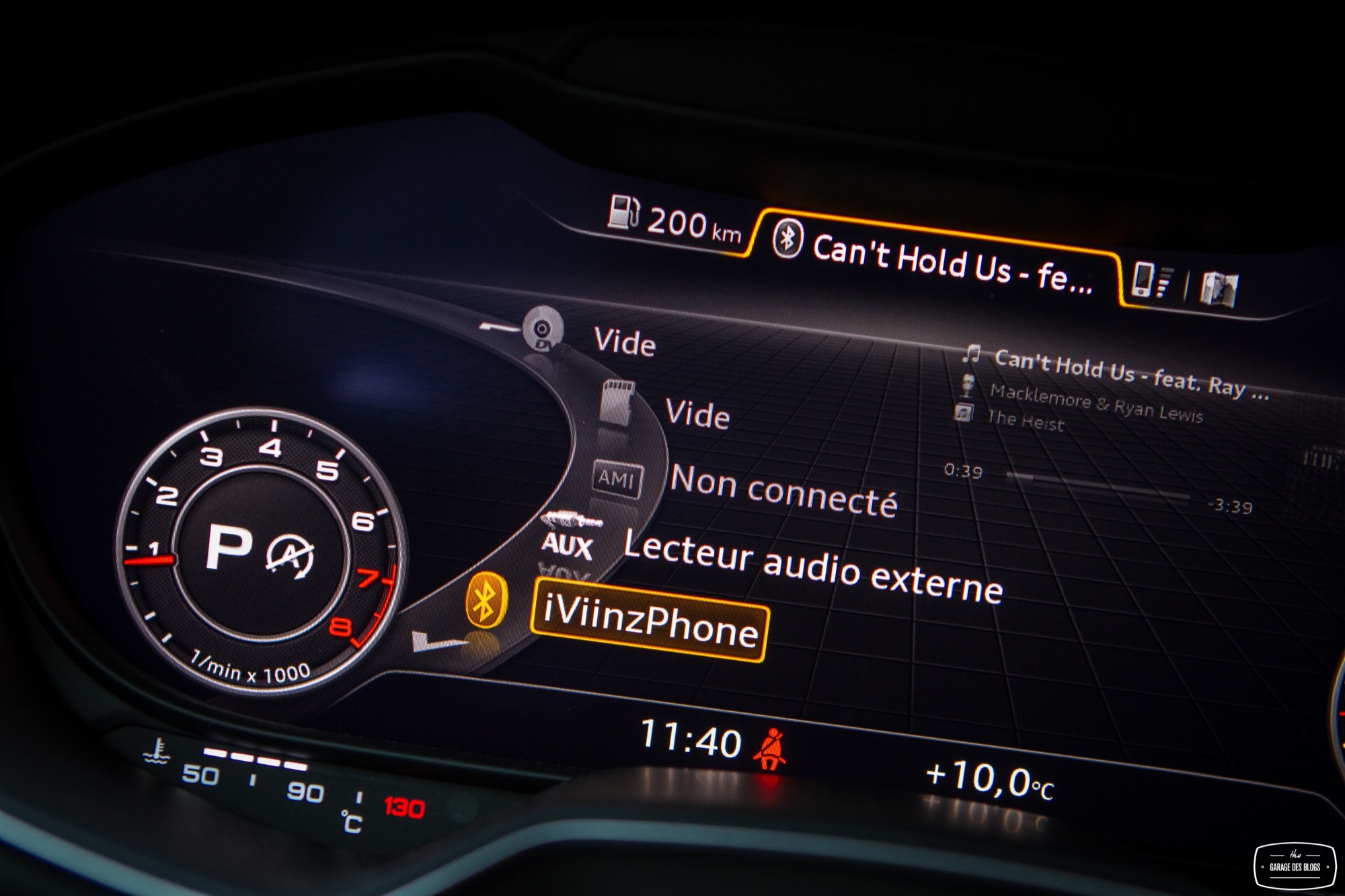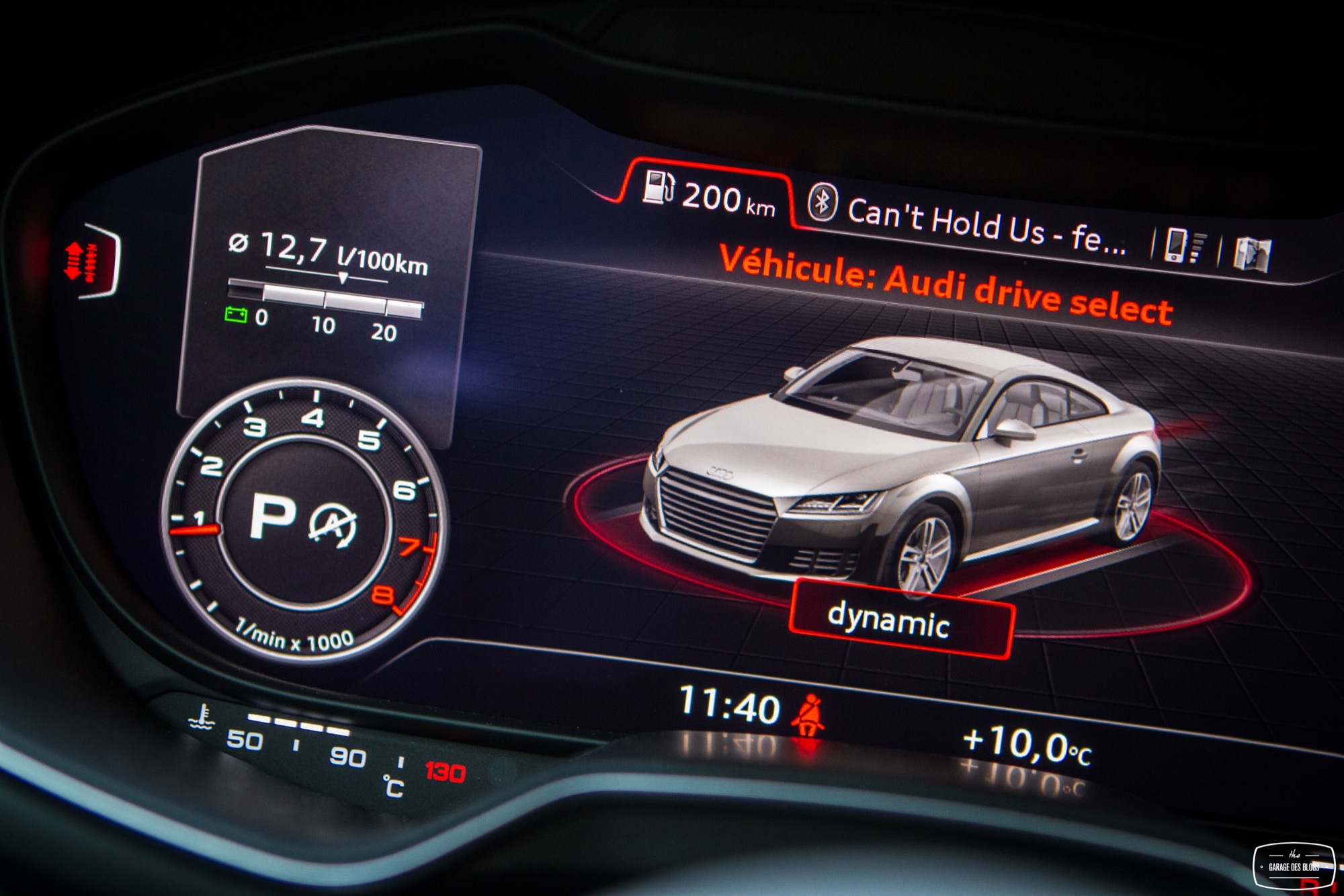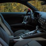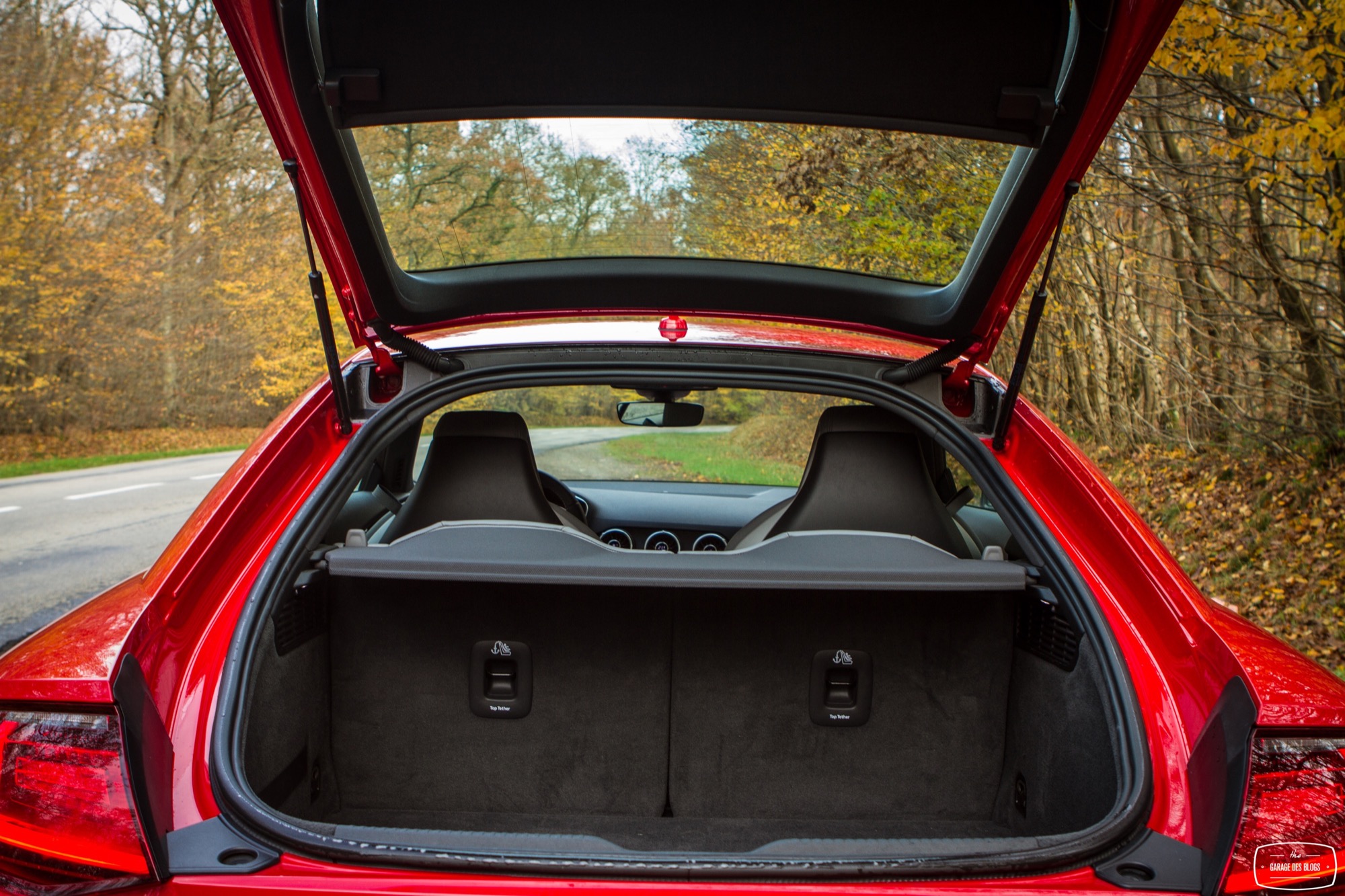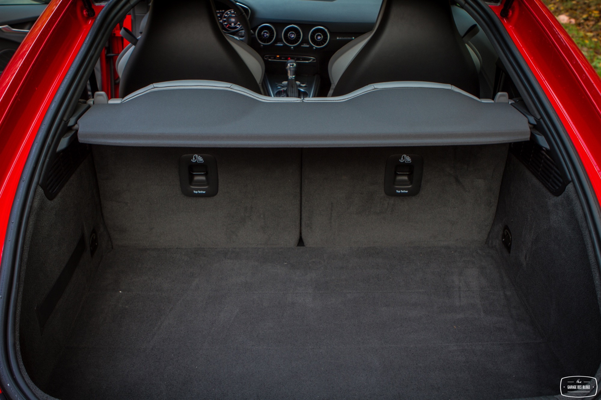 Je termine cette revue intérieure par une petite mention aux places arrières, totalement inutiles ou presque et au coffre, plutôt généreux voire très généreux puisque les sièges arrière sont justement rabattables ! De quoi partir un bon moment en vacances, à deux. PAR-FAIT. Plus sérieusement, je crois bien qu’Audi frise le sans-fautes absolu avec l’habitacle de ce nouveau TT. Si l’on excepte les palettes de la boîte qui auraient mérité un matériau noble, il n’y a strictement rien à jeter : matières, assemblages, finitions, système Virtual Cockpit, c’est du caviar pour ce type de véhicule et pour cette gamme de prix. Chapeau bas aux ingénieurs d’Audi qui ont donc su réinventer en partie leur habitacle et assumer une nouvelle position : driver oriented. Ah, en revanche, un petit truc software à corriger : le branchement USB de l’iPhone prend la main sur la connexion Bluetooth et perturbe Spotify en lançant Musique à la place. Très très très chiant puisqu’on ne peut par conséquent par recharger son iPhone et écouter Spotify en même temps… La bonne nouvelle, c’est que c’est du soft, justement.