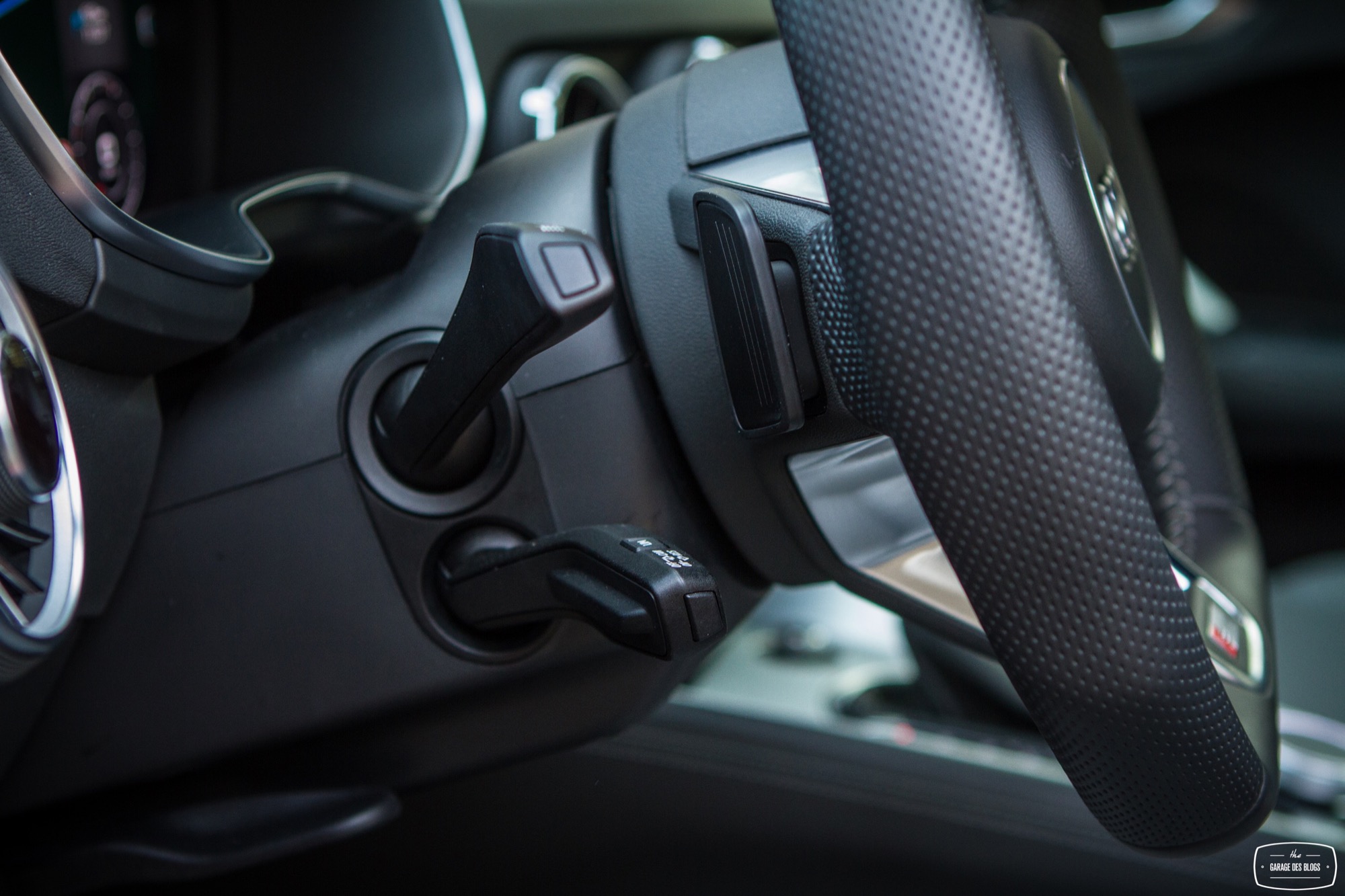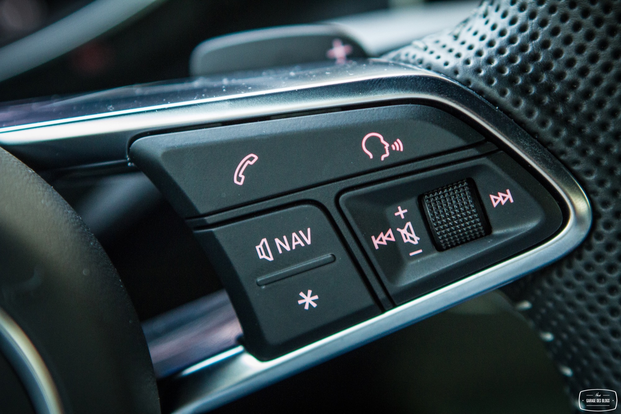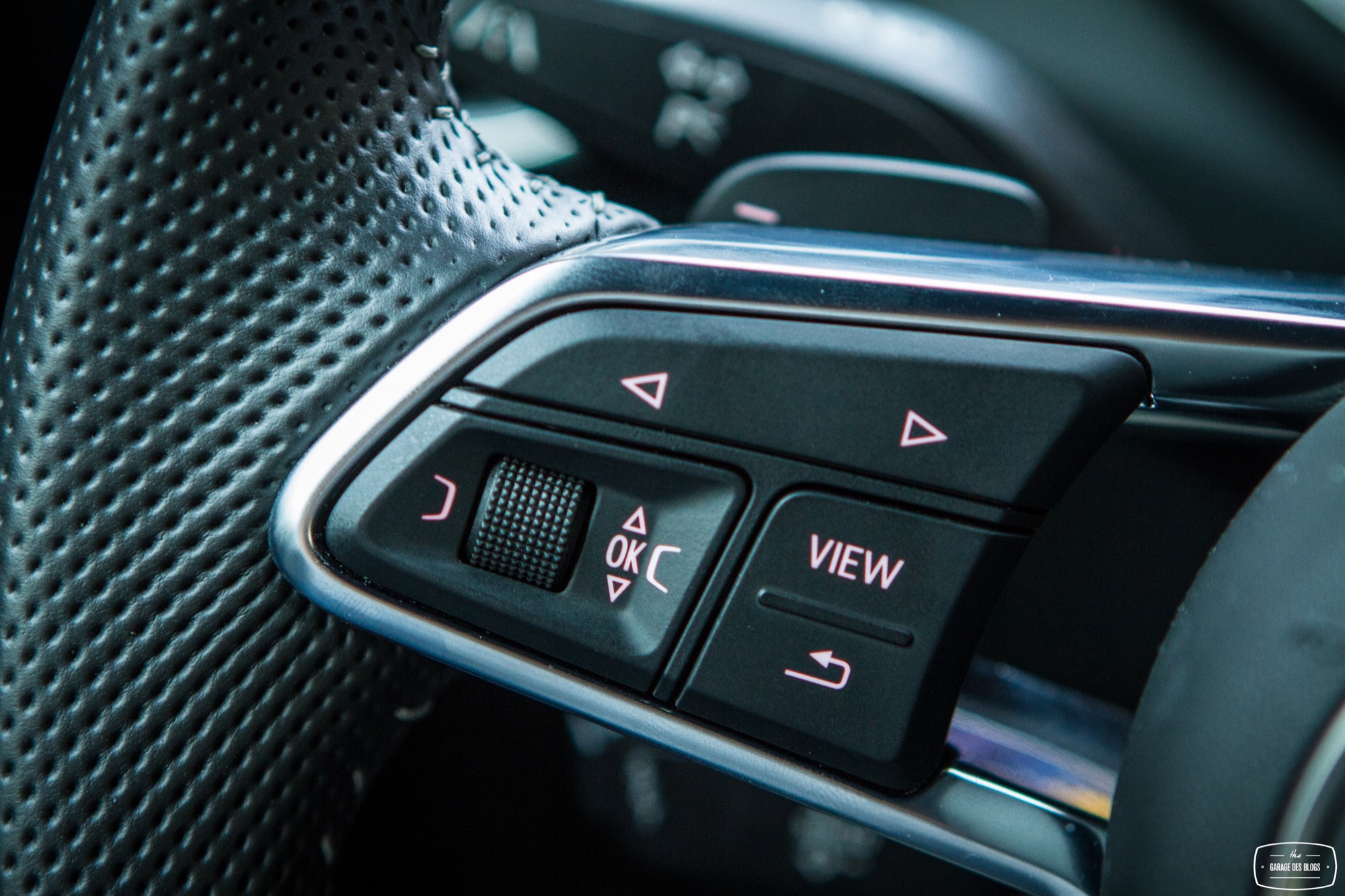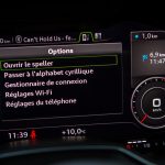 C’est tout ? Oui, c’est tout. Le passager est un passager et son espace est dénué de boutons. Tout se passe autour du volant et de ses commandes. Si l’on retrouve les comodos habituels (plutôt bien faits et de bonne facture), les palettes de passage de rapport en plastique choquent un peu avec un toucher très perfectible et plastique par rapport au reste de l’habitacle. C’est à dire vrai la seule déception réelle face à cet habitacle. Enfin bref : le Virtual Cockpit. Il se pilote en partie avec la mollette centrale, en partie avec les commandes au volant situées du côté gauche. Un petit menu à gauche. Un petit menu à droite. Une mollette cliquable au centre.