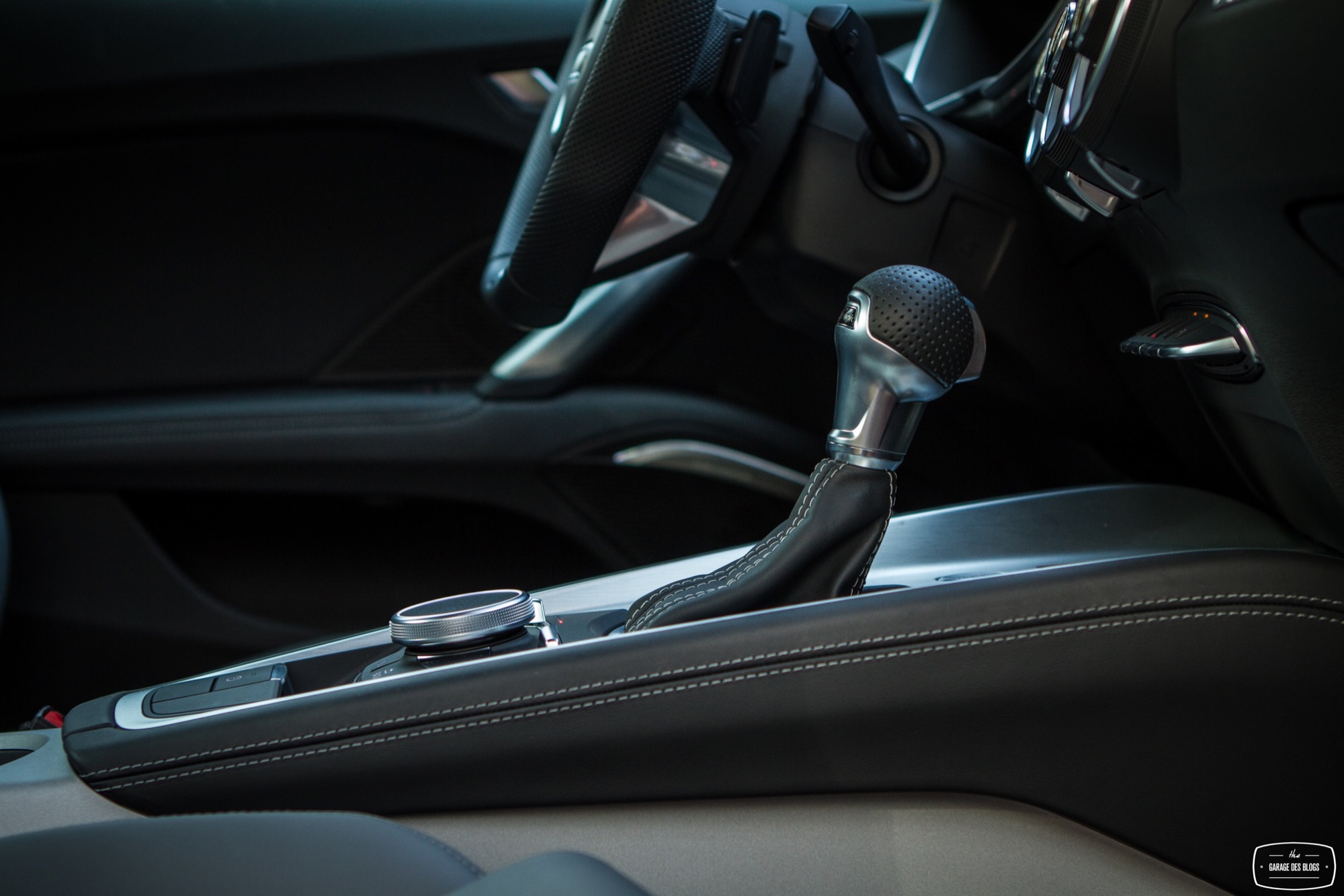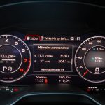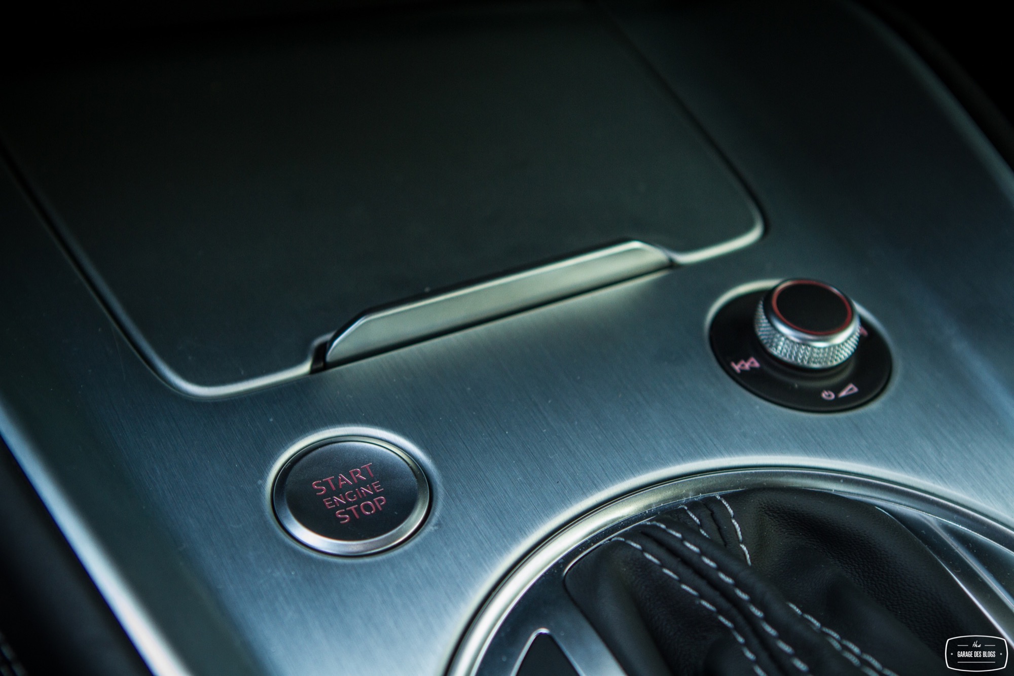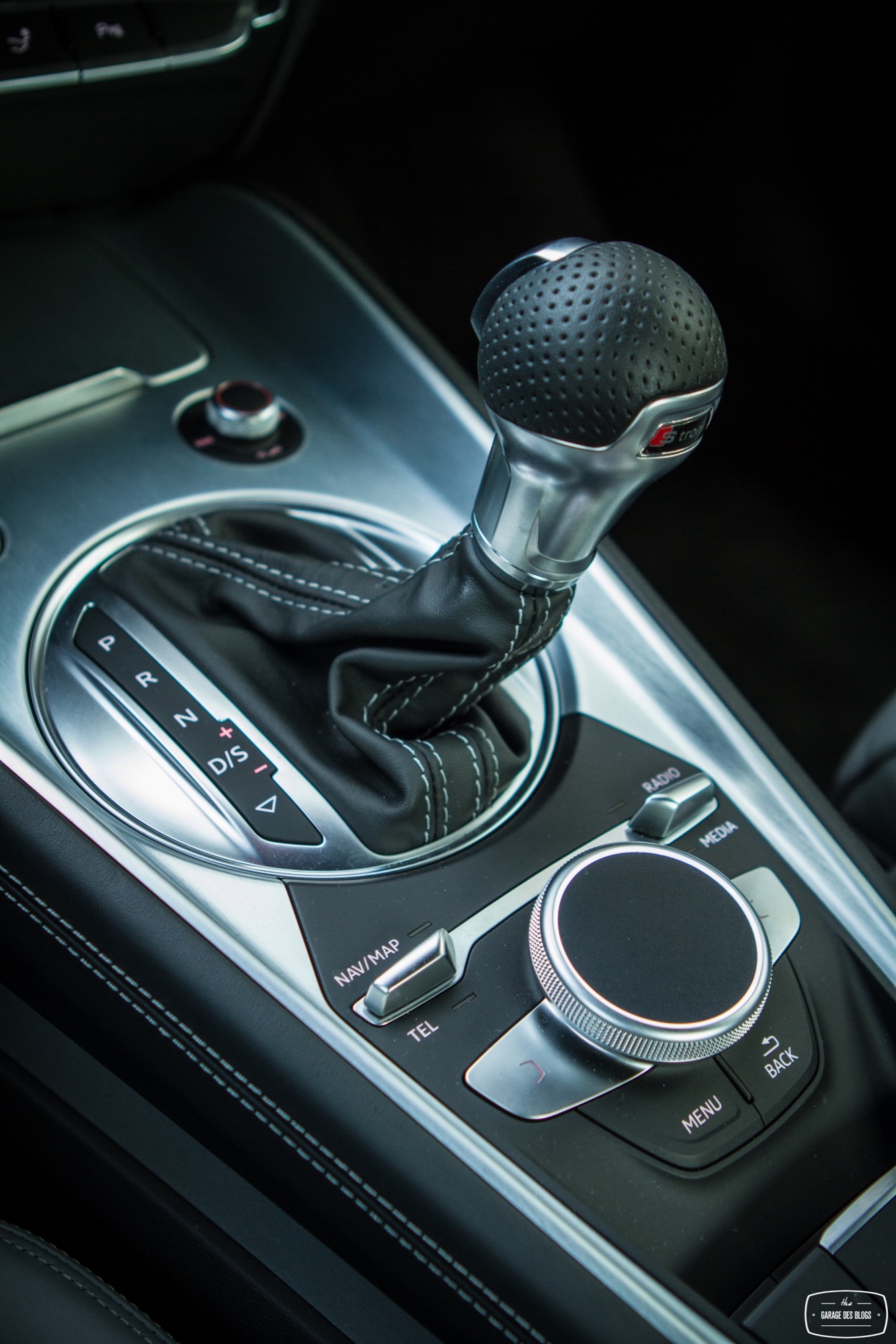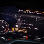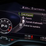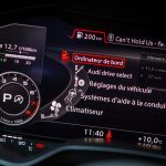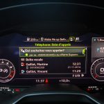 Le combat est le même du côté du tunnel de transmission avec une trappe qui cache deux ports USB et une zone à induction antidérapante où l’on peut poser son téléphone qui verra alors son antenne coupée (4kW) pour être rebasculée sur celle de la voiture (8kW). Devant, le bouton de démarrage et un rappel de commande musicale pour le passager. On récupère ensuite au choix la boîte méca ou automatique mais surtout le pavé tactile et cliquable Audi entouré de ses boutons principaux. Il s’agit véritablement d’un rappel puisqu’en réalité, on peut quasiment s’en passer une fois le Virtual Cockpit configuré aux petits oignons.