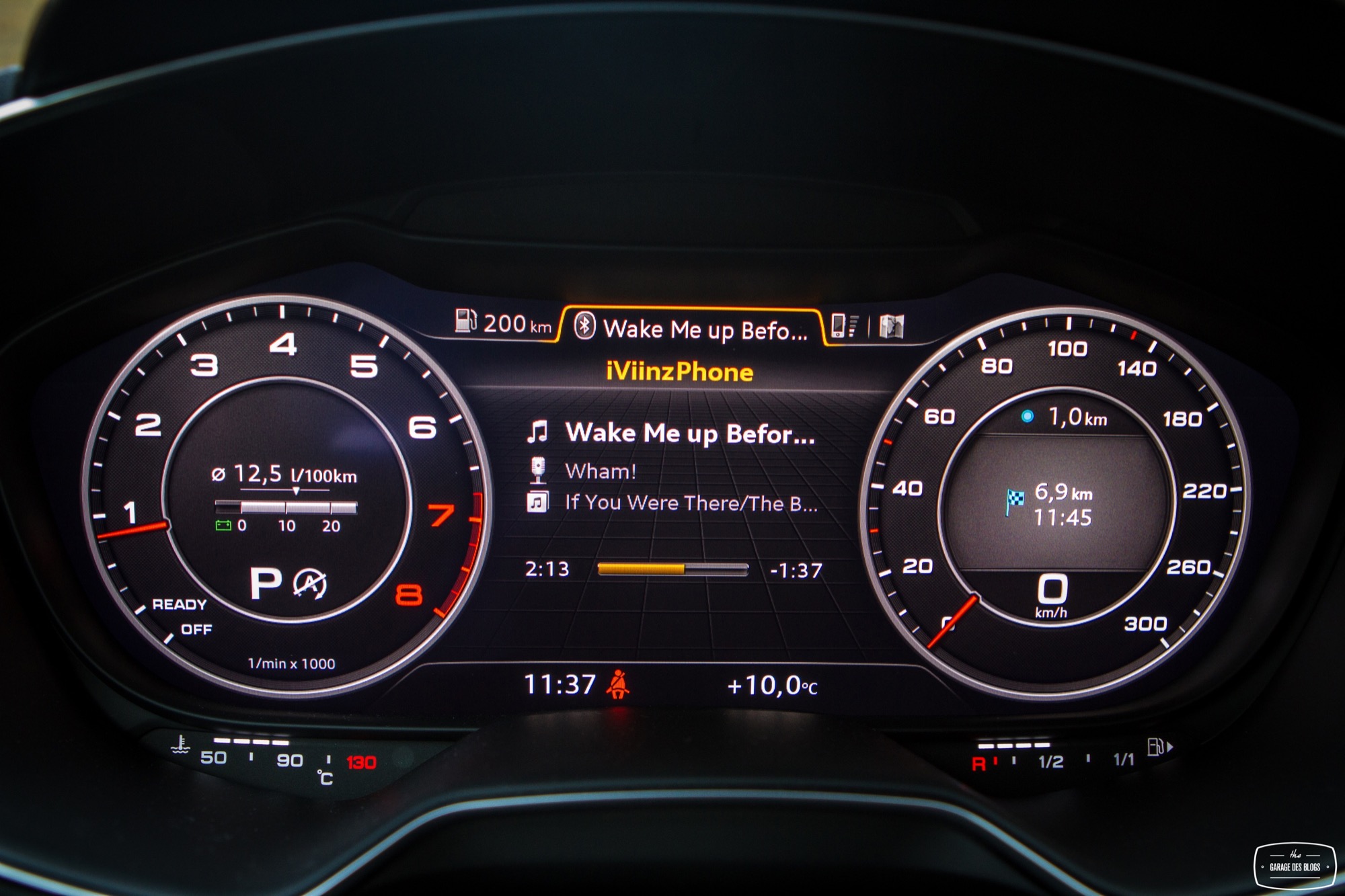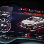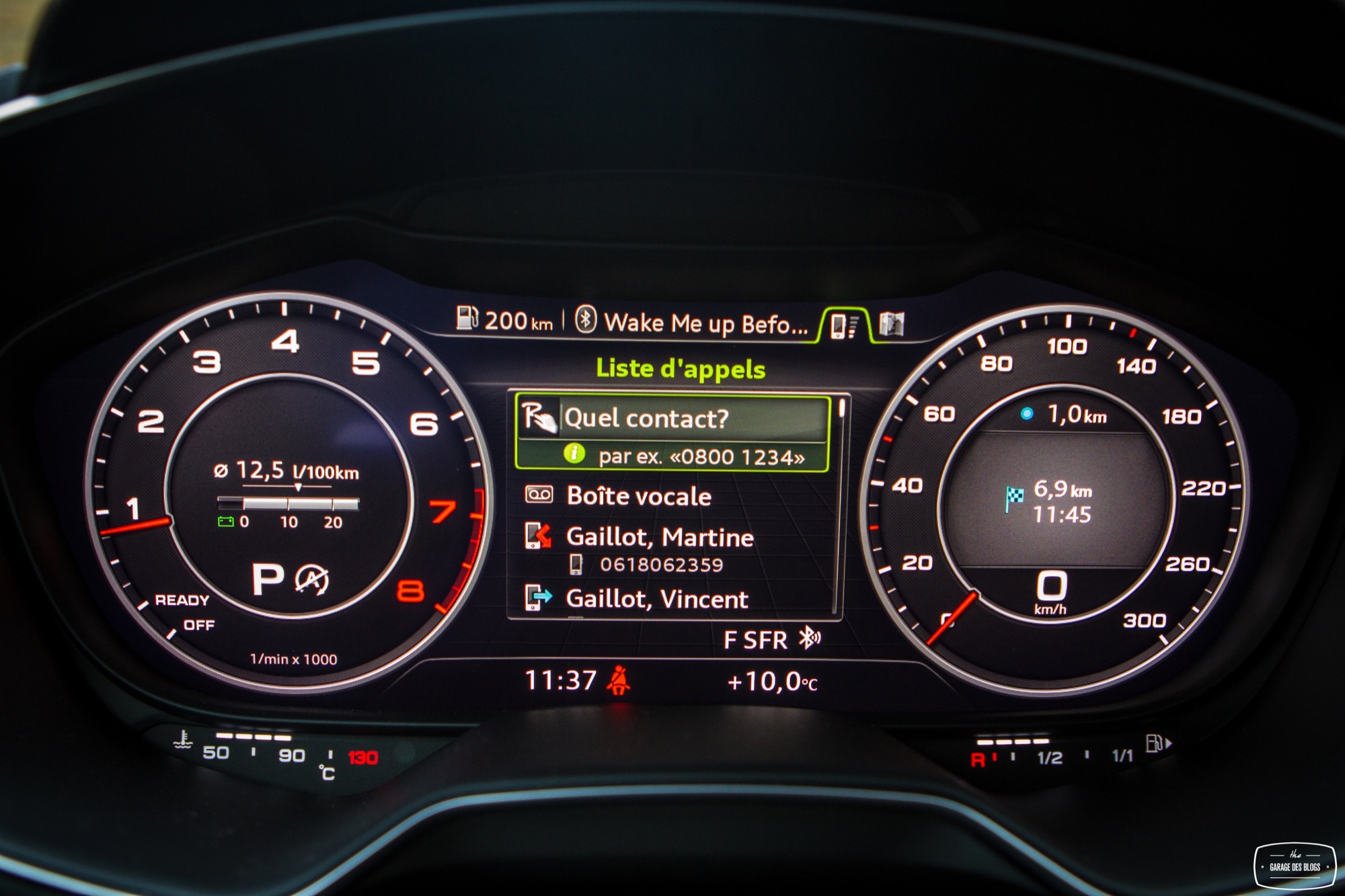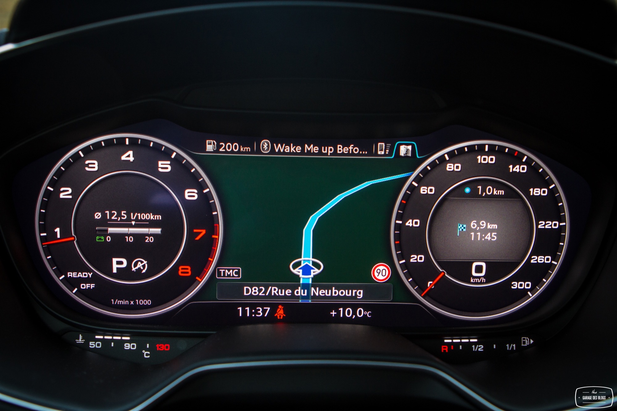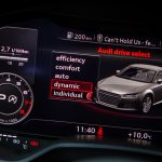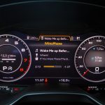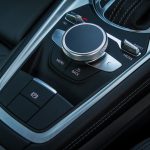 Le combat est le même du côté du tunnel de transmission avec une trappe qui cache deux ports USB et une zone à induction antidérapante où l’on peut poser son téléphone qui verra alors son antenne coupée (4kW) pour être rebasculée sur celle de la voiture (8kW). Devant, le bouton de démarrage et un rappel de commande musicale pour le passager. On récupère ensuite au choix la boîte méca ou automatique mais surtout le pavé tactile et cliquable Audi entouré de ses boutons principaux. Il s’agit véritablement d’un rappel puisqu’en réalité, on peut quasiment s’en passer une fois le Virtual Cockpit configuré aux petits oignons.