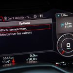 C’est aussi simple que ça et vous le voyez bien sur la photo pile au dessus. Les deux flèches servent à naviguer entre les 4 sous-menus du VC et naviguer entre infos véhicule, média, téléphone et carte. La touche VIEW permet d’afficher les compteurs en plus ou moins grand. La mollette est la mollette et enfin les petites parenthèses que vous apercevez sont celles des menus gauche/droite visibles à l’écran. Le pavé tactile ne sert finalement que pour le tactile, grosso modo et à choisir ce que l’on veut afficher dans chacun de ces 4 menus principaux. C’est clair ? J’espère, parce qu’en réalité ça l’est vraiment et une fois pris en main, on ne peut définitivement plus s’en passer. Je n’avais pour être tout à fait honnête pas du tout regardé ce qu’était ce Virtual Cockpit et je m’en foutais un peu, aussi pour être honnête.