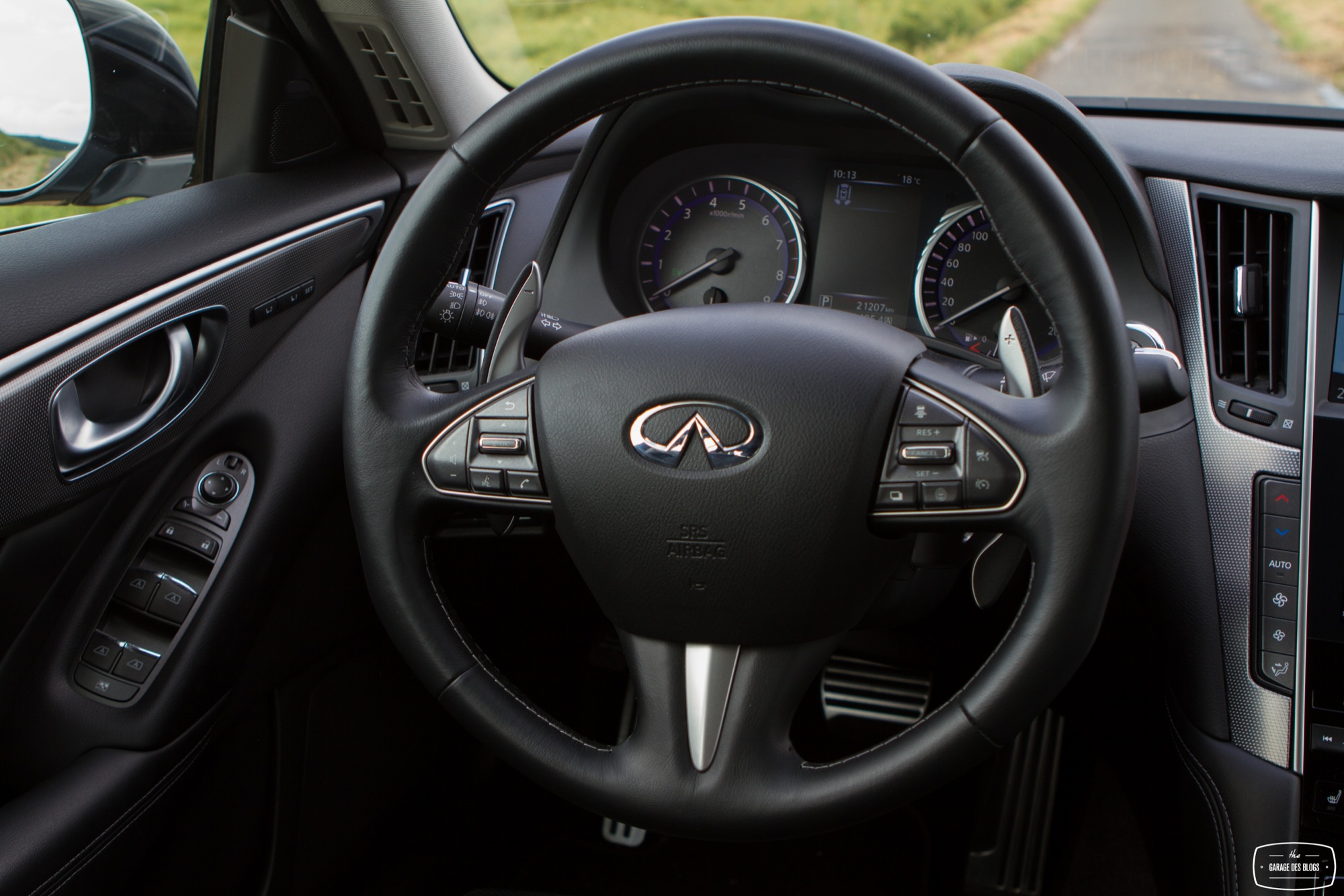 Si je devais résumer cette direction, au delà de la première technologique (destinée à se répandre comme la poudre chez les autres constructeurs) qu’elle représente, je dirais volontiers que c’est une bonne surprise. Je m’attendais à ne plus rien ressentir, à ne pas du tout me sentir en confiance avec la voiture voire même à faire des erreurs et il n’en a rien été. Il manque encore un peu de paramétrage soft pour la rendre plus complète et homogène en terme de performance entre les différents modes mais il paraît justement que cela devrait arriver bientôt chez le constructeur. Vraiment, si je ne suis pas du tout convaincu de l’utilisation de ce type de directions (à l’heure actuelle) sur des véhicules véritablement sportifs, Infiniti montre avec ce véhicule que son application est tout à fait convaincante sur une berline dynamique.