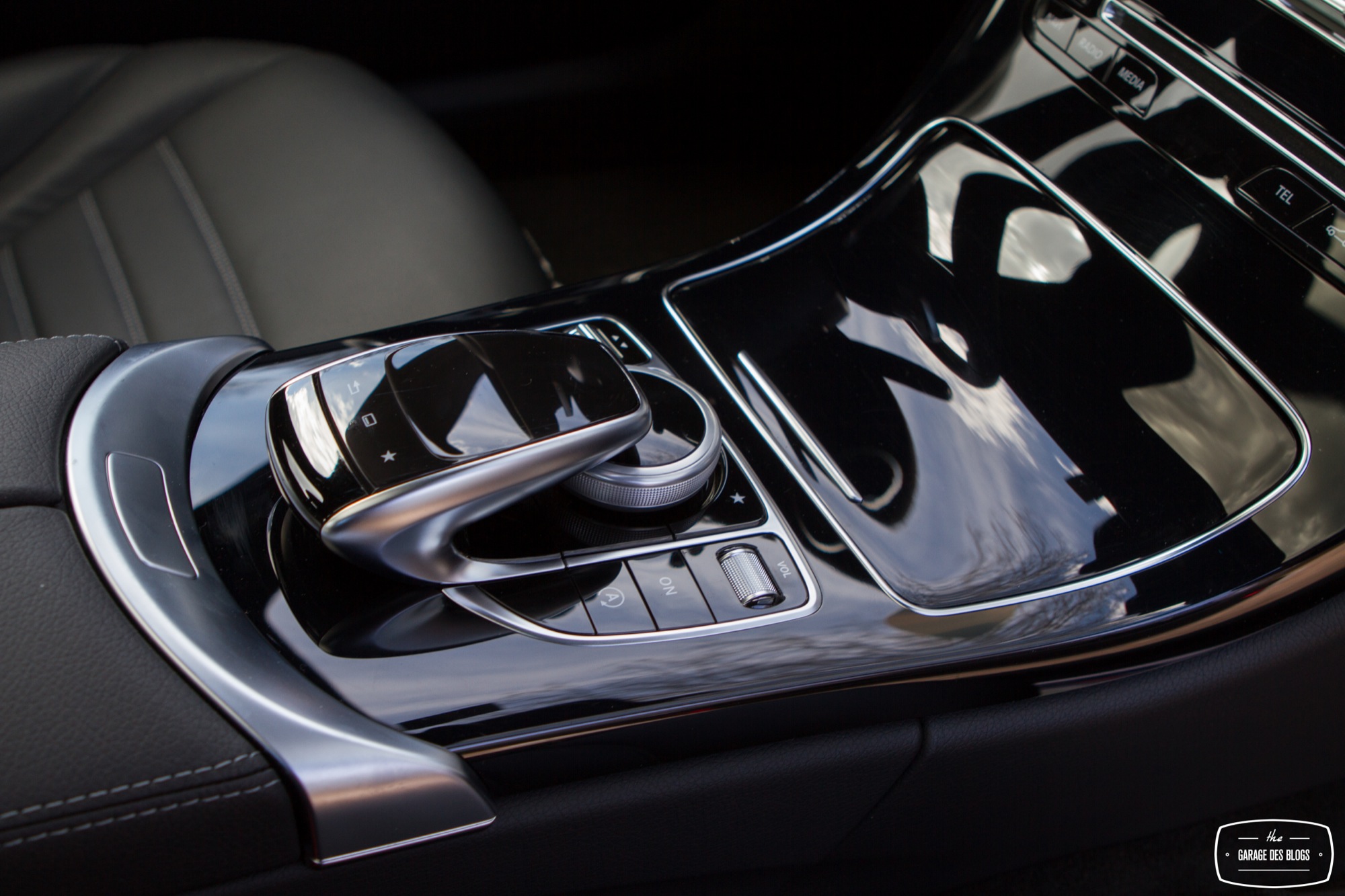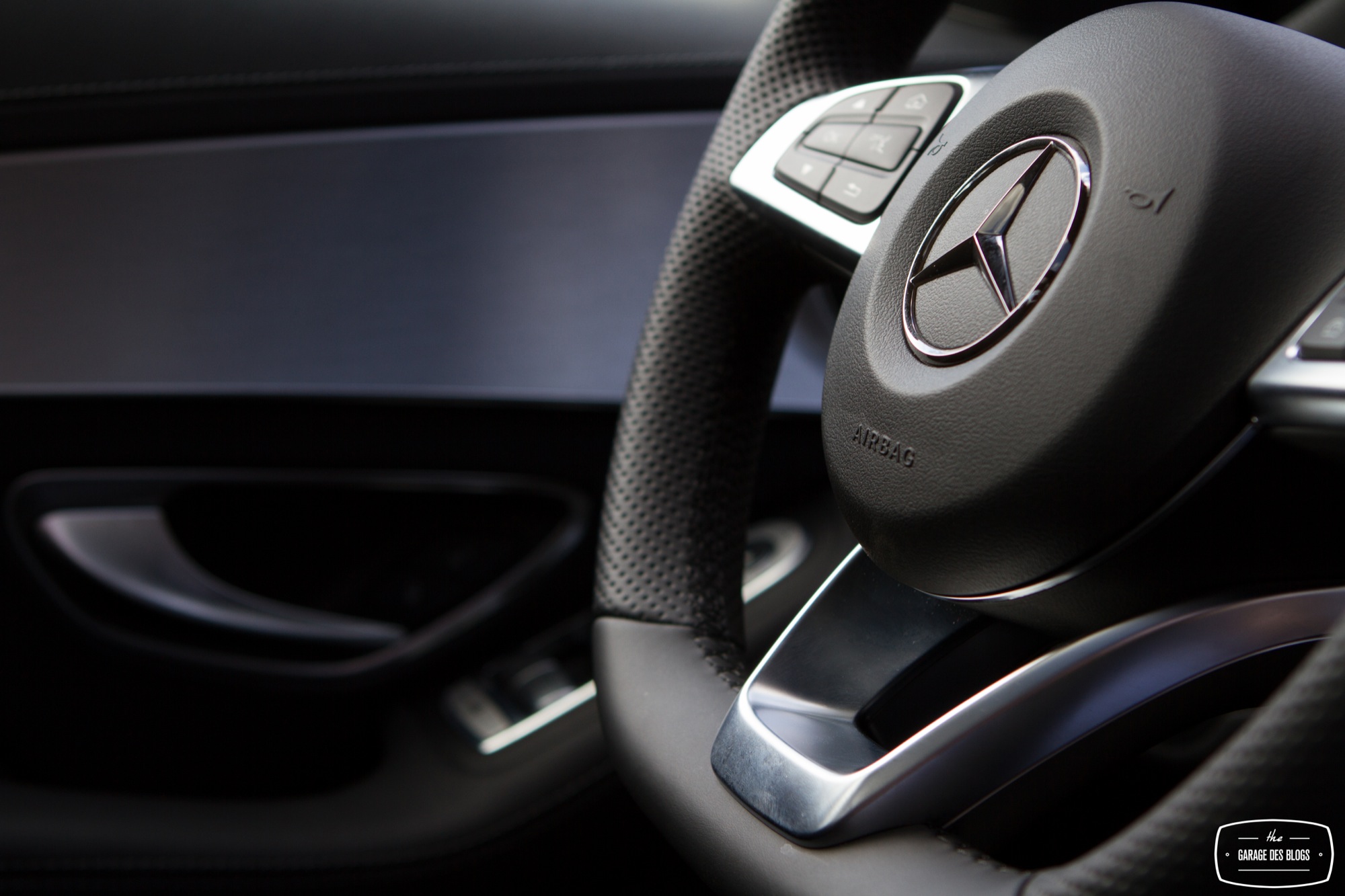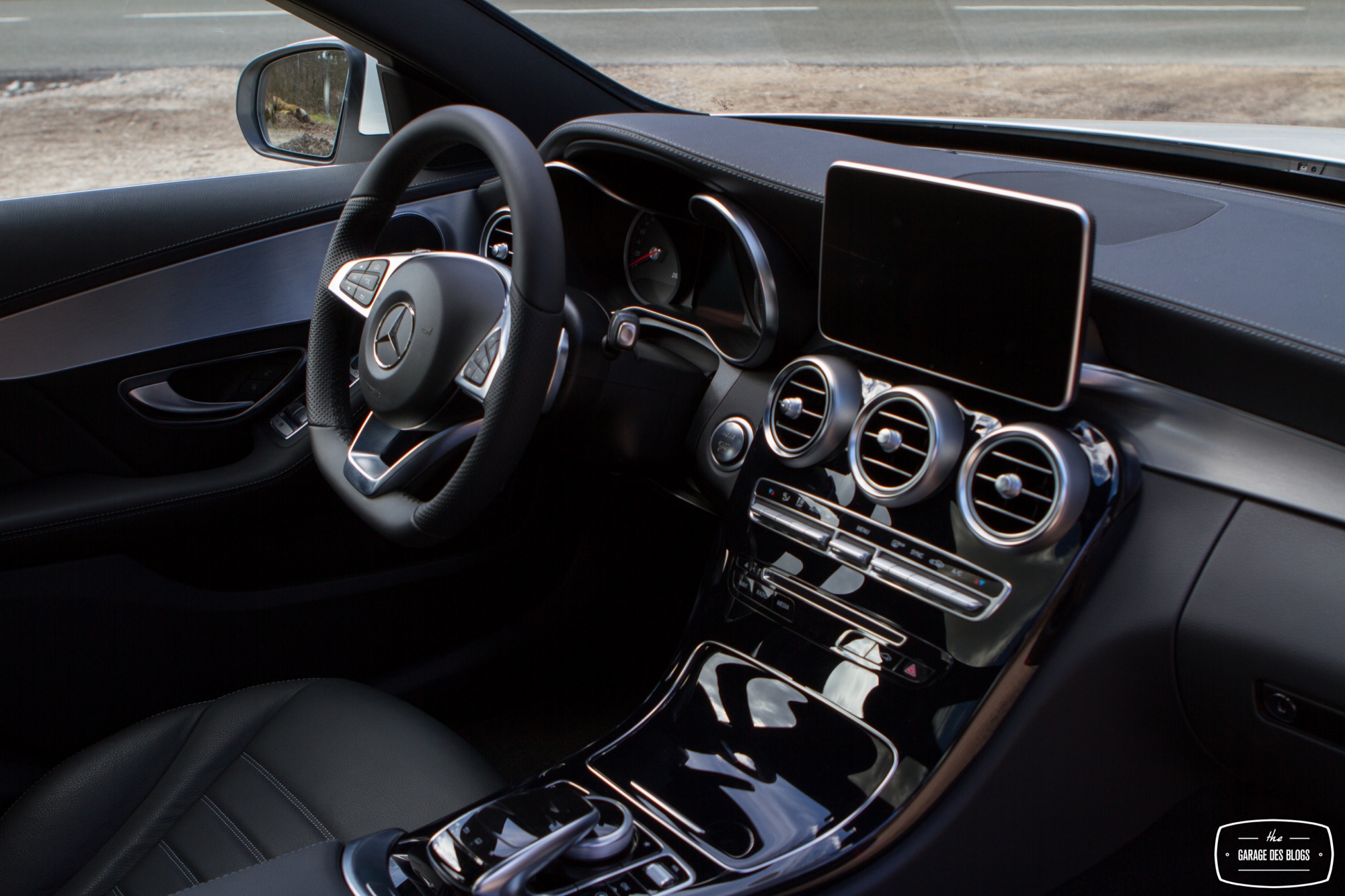 L’intérieur est quant à lui nettement plus remarquable que celui du GLA et pourtant le modèle essayé est facturé peu ou prou au même tarif, 57k€ ! L’équipement est également nettement plus riche, avec le touchpad de série en France, le sélecteur de modes de conduite, le détecteur de risque de collision, le système de détection de somnolence et ainsi de suite. En clair : la Classe C se veut une réponse aux dernières productions de la concurrence, à la fois technique et stylistique. Le pack AMG se retrouve également à l’intérieur avec un beau mélange de plastiques moussés d’excellente qualité, de noirs laqués et d’aluminium brossé. Le souci du détail se voit également au niveau des boutons de commande des vitres ! C’est souvent à ça qu’on remarque la qualité, d’ailleurs, ces fichus boutons de vitres ! Sur la Classe C : ils sont beaux. Banco.