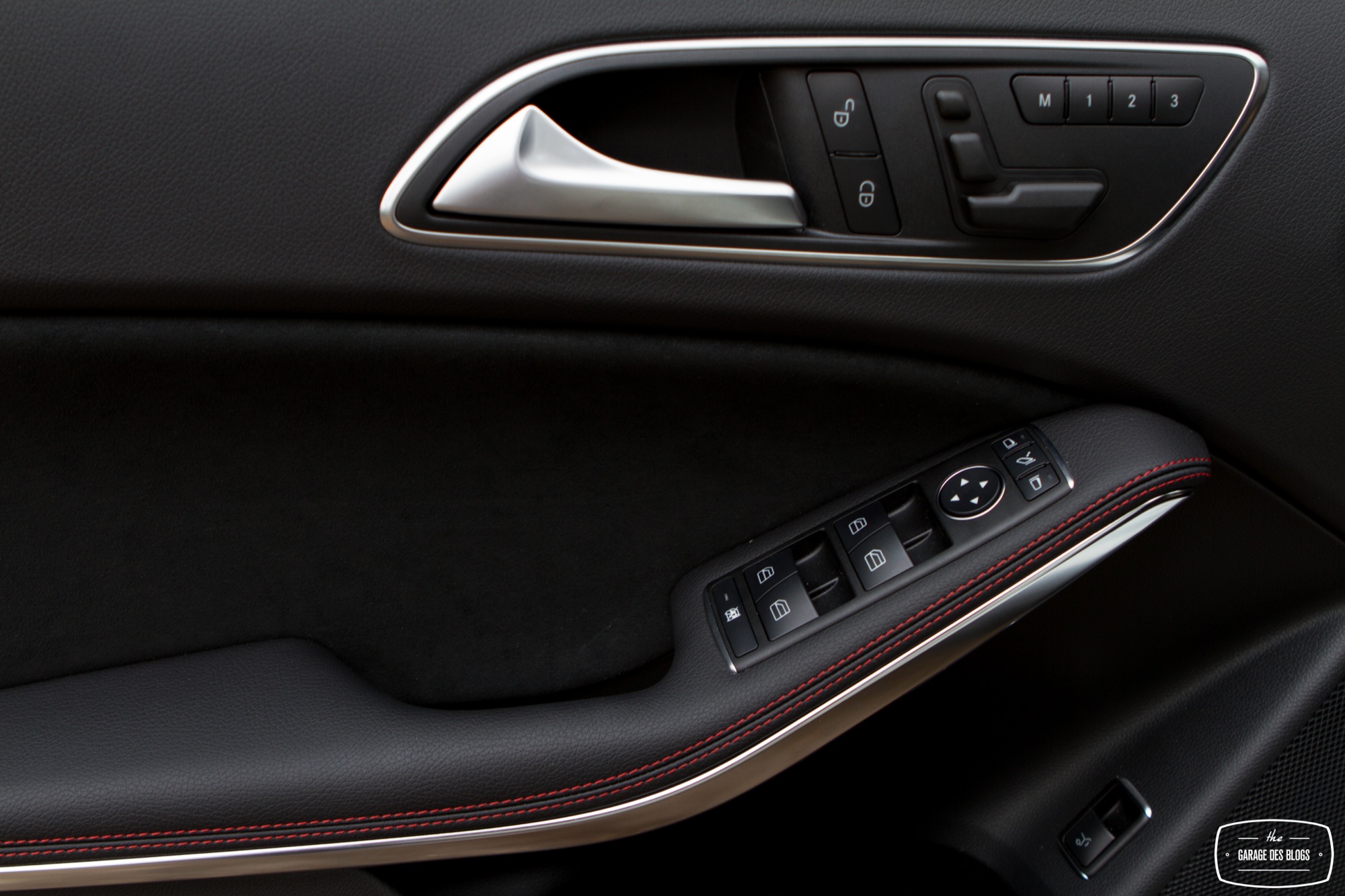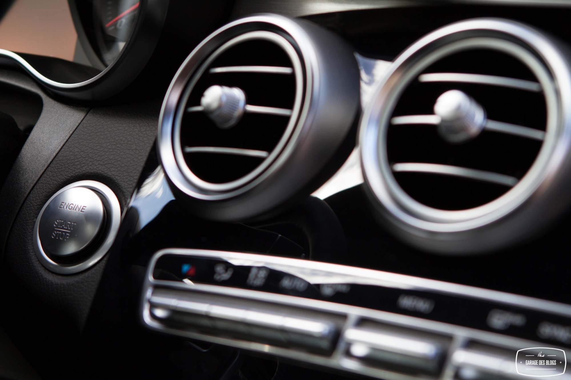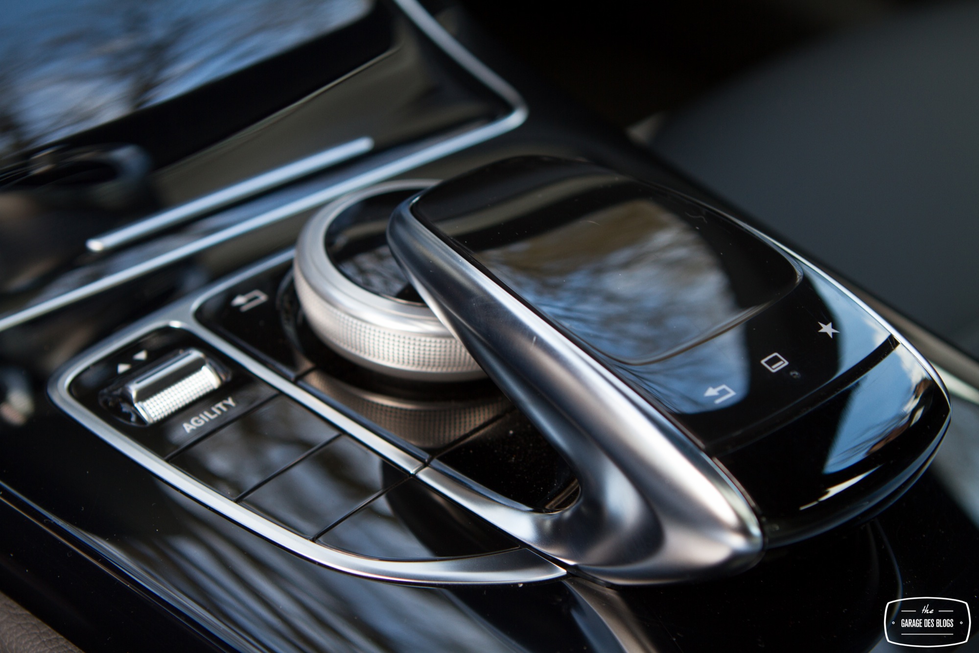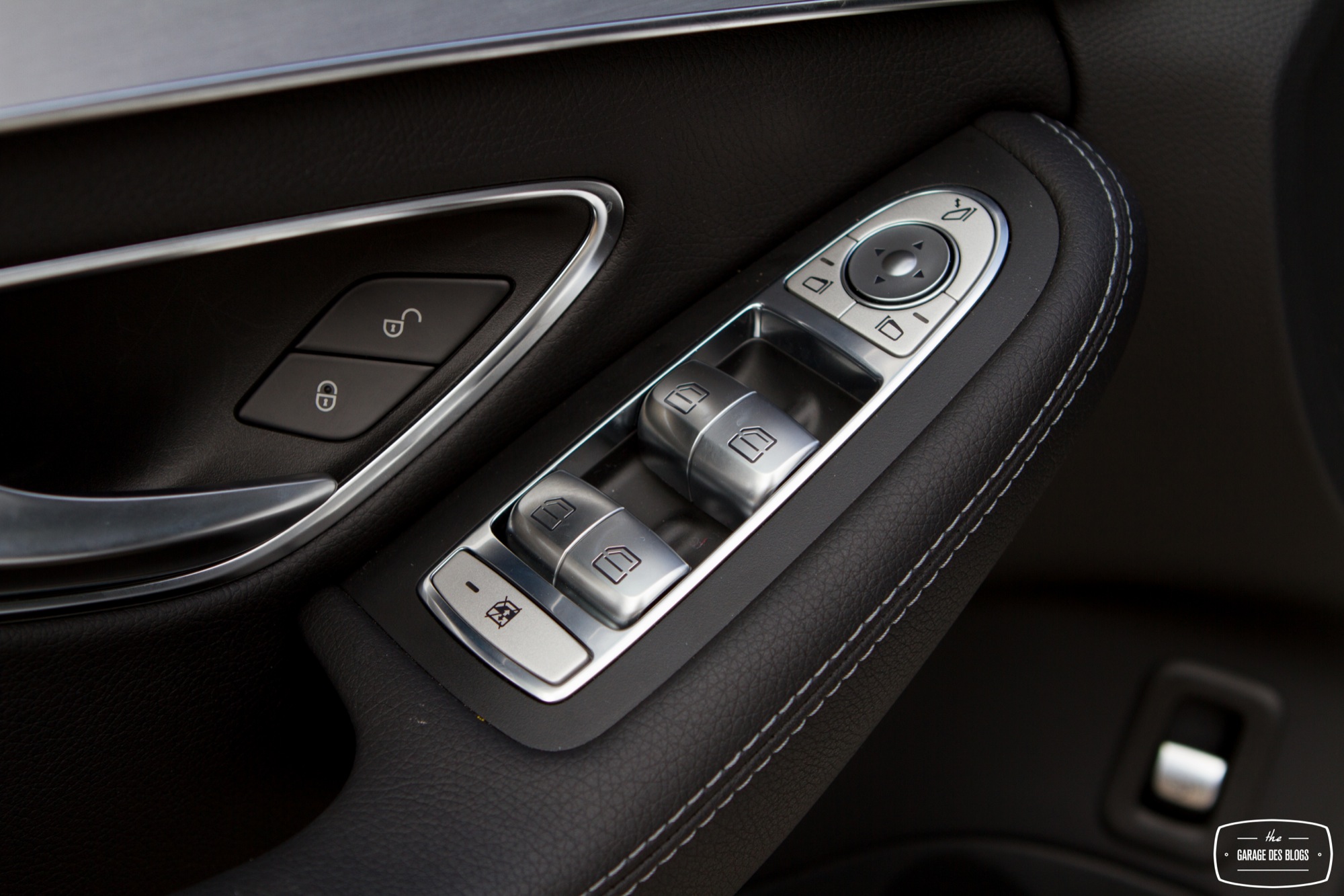 L’intérieur est quant à lui nettement plus remarquable que celui du GLA et pourtant le modèle essayé est facturé peu ou prou au même tarif, 57k€ ! L’équipement est également nettement plus riche, avec le touchpad de série en France, le sélecteur de modes de conduite, le détecteur de risque de collision, le système de détection de somnolence et ainsi de suite. En clair : la Classe C se veut une réponse aux dernières productions de la concurrence, à la fois technique et stylistique. Le pack AMG se retrouve également à l’intérieur avec un beau mélange de plastiques moussés d’excellente qualité, de noirs laqués et d’aluminium brossé. Le souci du détail se voit également au niveau des boutons de commande des vitres ! C’est souvent à ça qu’on remarque la qualité, d’ailleurs, ces fichus boutons de vitres ! Sur la Classe C : ils sont beaux. Banco.