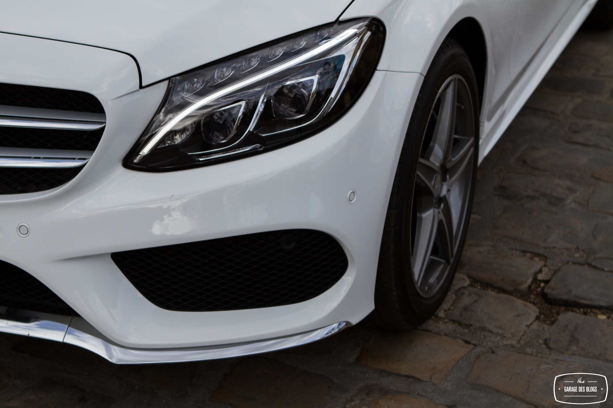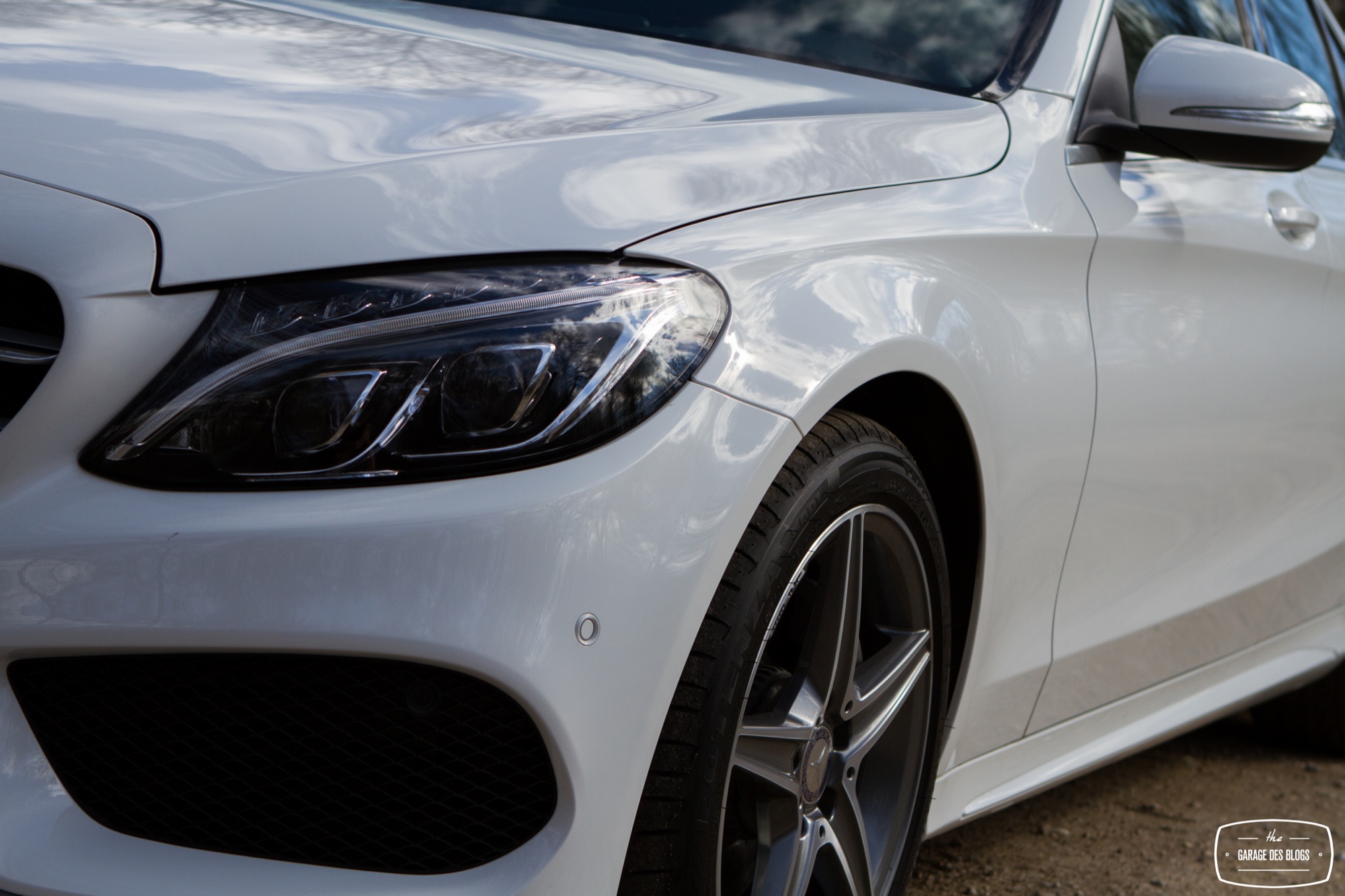 On passe maintenant à la Classe C 220 BlueTEC. Il s’agit là de la cinquième génération de C, prenant enfin en compte les nouveaux codes stylistiques introduits avec la Classe A. Je n’étais pas particulièrement amoureux de l’ancienne génération, très pépère à mon goût. Cette nouvelle version est très nettement plus dynamique, notamment pour ce qui est de son regard et de sa calandre. Le nouveau vaisseau est également plus long, 9.5 cm, mais néanmoins plus léger, 100 kg, grâce à une carrosserie à 48% composée d’aluminium. Le modèle essayé, 170 ch diesel, constitue le cœur de gamme, en attendant la future C400 et ses 333 chevaux !