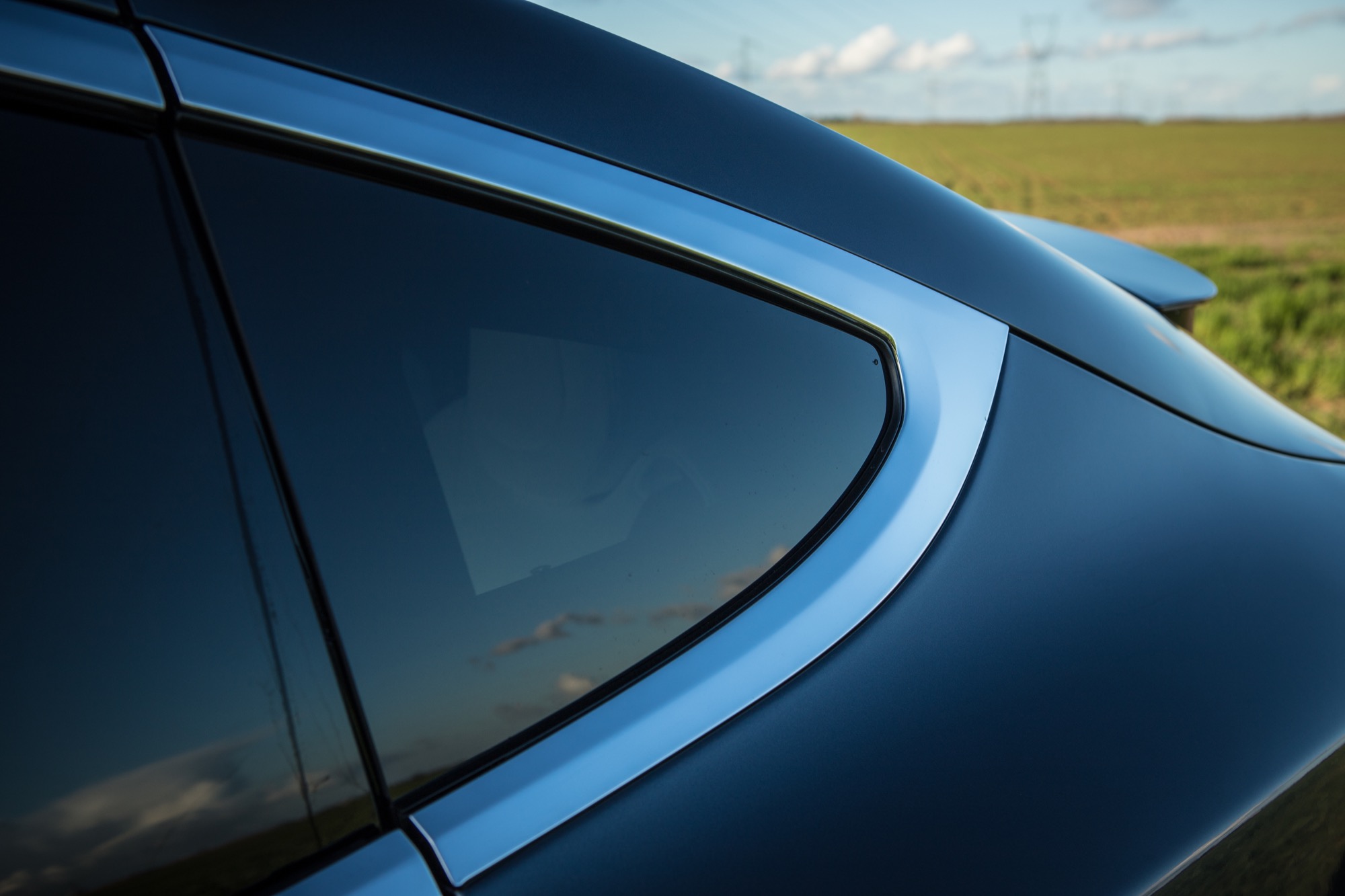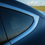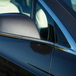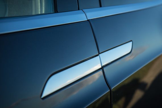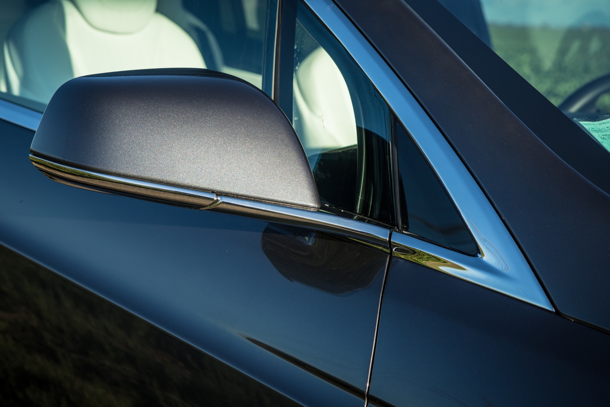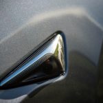Sur les flancs, on découvre des roues là-aussi assez communes mais ce que l’on note surtout, ce sont les deux petits bulbes Tesla en retrait des arches de roue et abritant des caméras utilisées par la fonction de conduite semi-autonome. On retrouve d’ailleurs une autre paire de caméras intégrées dans les montants de portières avant. J’aime assez la jonction entre la lame de commande d’ouverture des portières avant et arrière, dommage que les deux ne soient guère alignées.