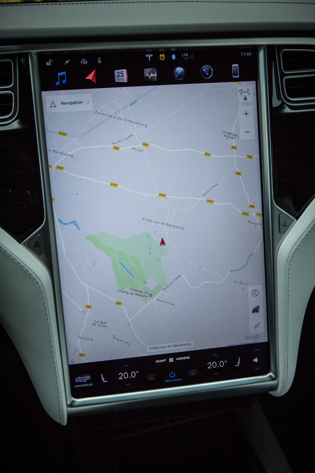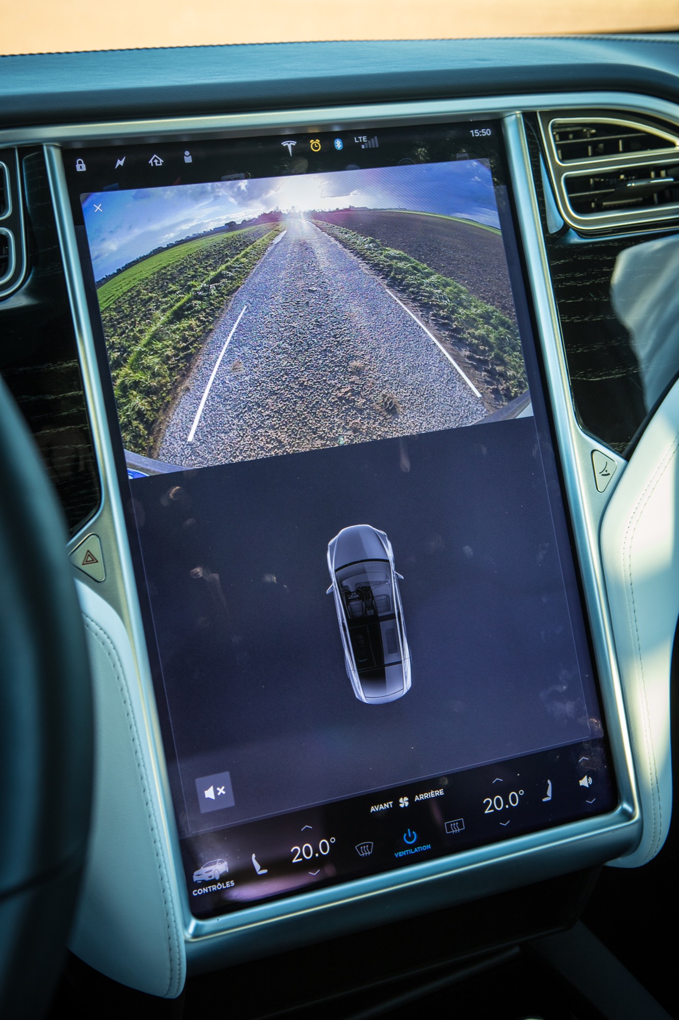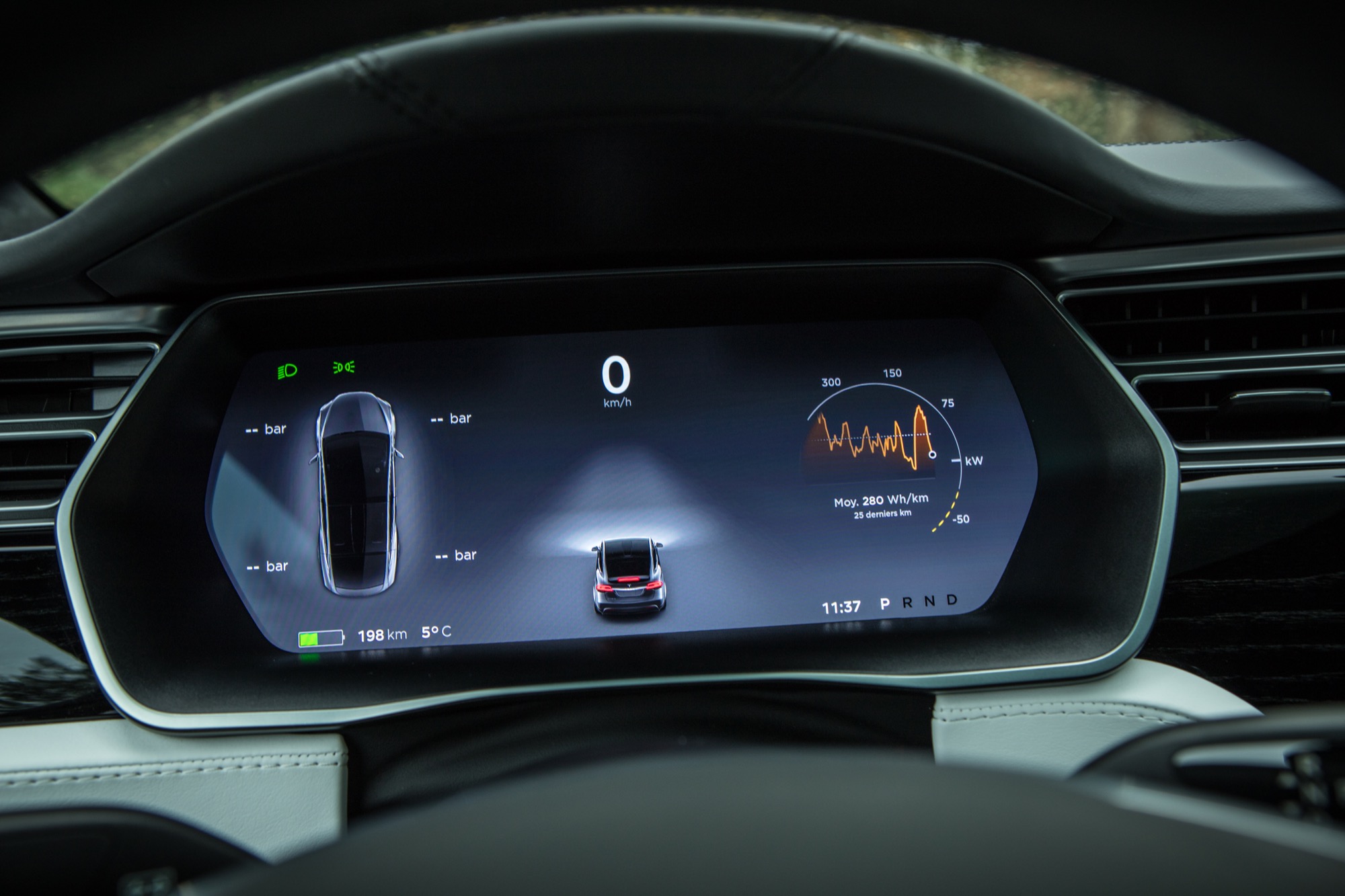 Le double moteur électrique, allant avec le D de l’auto et synonyme de quatre roues motrices, se montre lui aussi discret. Un léger sifflement ici ou là, l’habitacle étant bien isolé des machines électriques situées sur les deux essieux. La mise en vitesse est copieuse, bien que nettement en retrait de mes souvenirs de la version “P” de Model S que j’avais pu essayer.