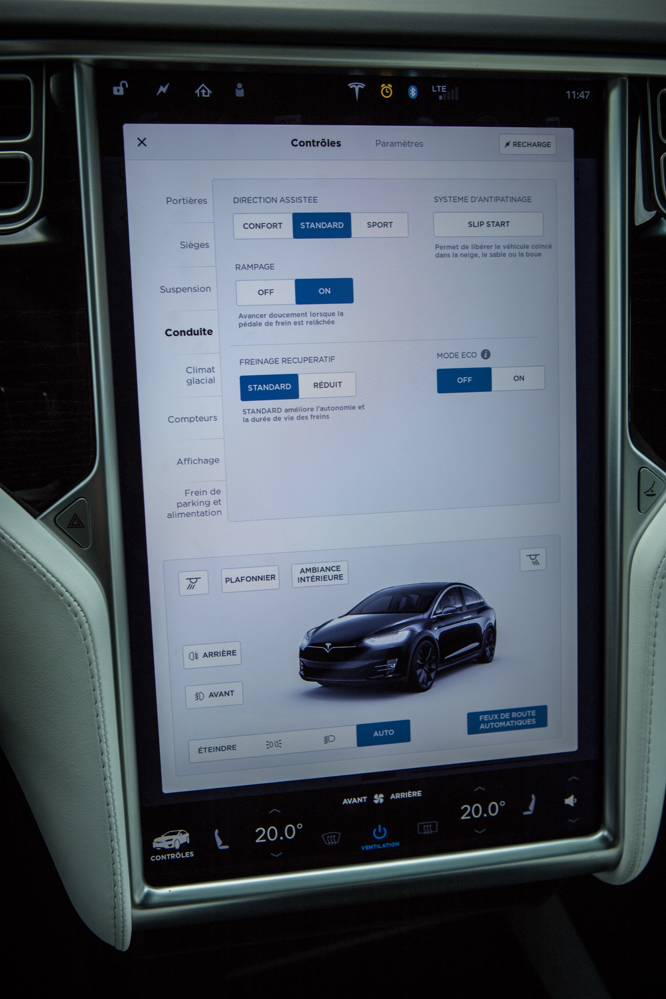 C’est d’ailleurs le seul moment où l’auto semble un peu se désunir un peu, sautillant, comme si les suspensions peinaient à suivre le rythme. Ce n’est pas grand chose et c’est à dire vrai surtout en cherchant un peu à la taquiner, “pour voir”. La Tesla Model X n’est pas là pour ça, elle est là pour déplacer en toute quiétude une famille et sur ce point, c’est réussi.