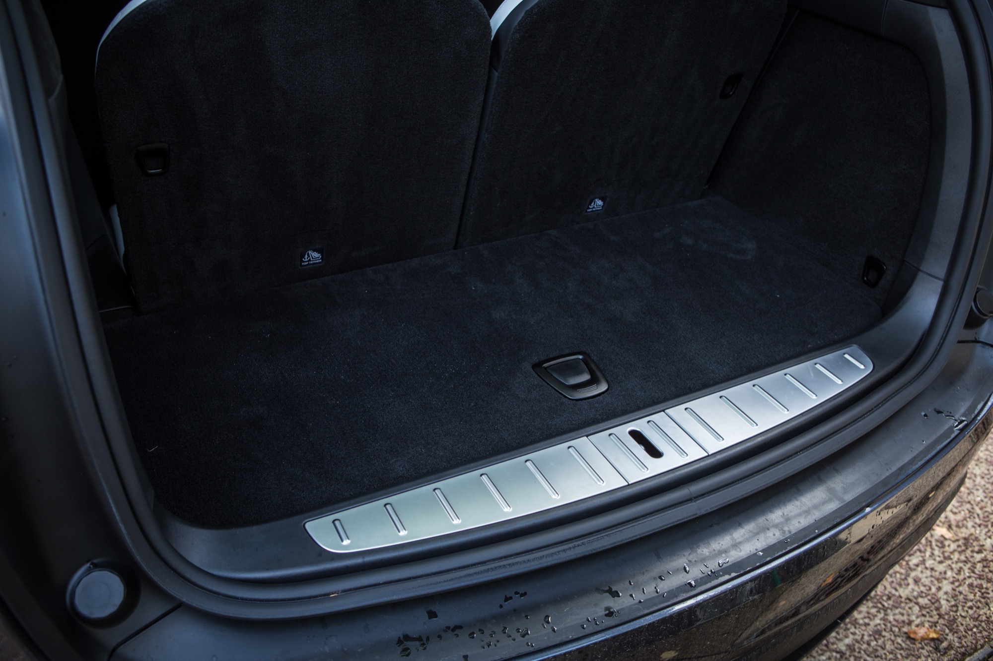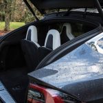 Avant de conduire, attardons-nous encore un peu sur la dimension pratique du Tesla Model X 100D. L’auto dispose de deux coffres. Le premier, à avant, est déjà assez conséquent. Le second, à l’arrière pourrait paraître ridicule, jusqu’à ce qu’on ouvre la trappe qui le coupe en fait en deux. Il y a donc, en sus de l’espace situé entre les sièges 3 & 4, de quoi loger pas mal de bagages pour les 6 occupants. Si d’aventure vous n’êtes que 4, les sièges 5 & 6 se rabattent pour libérer un espace qui devient alors gargantuesque.