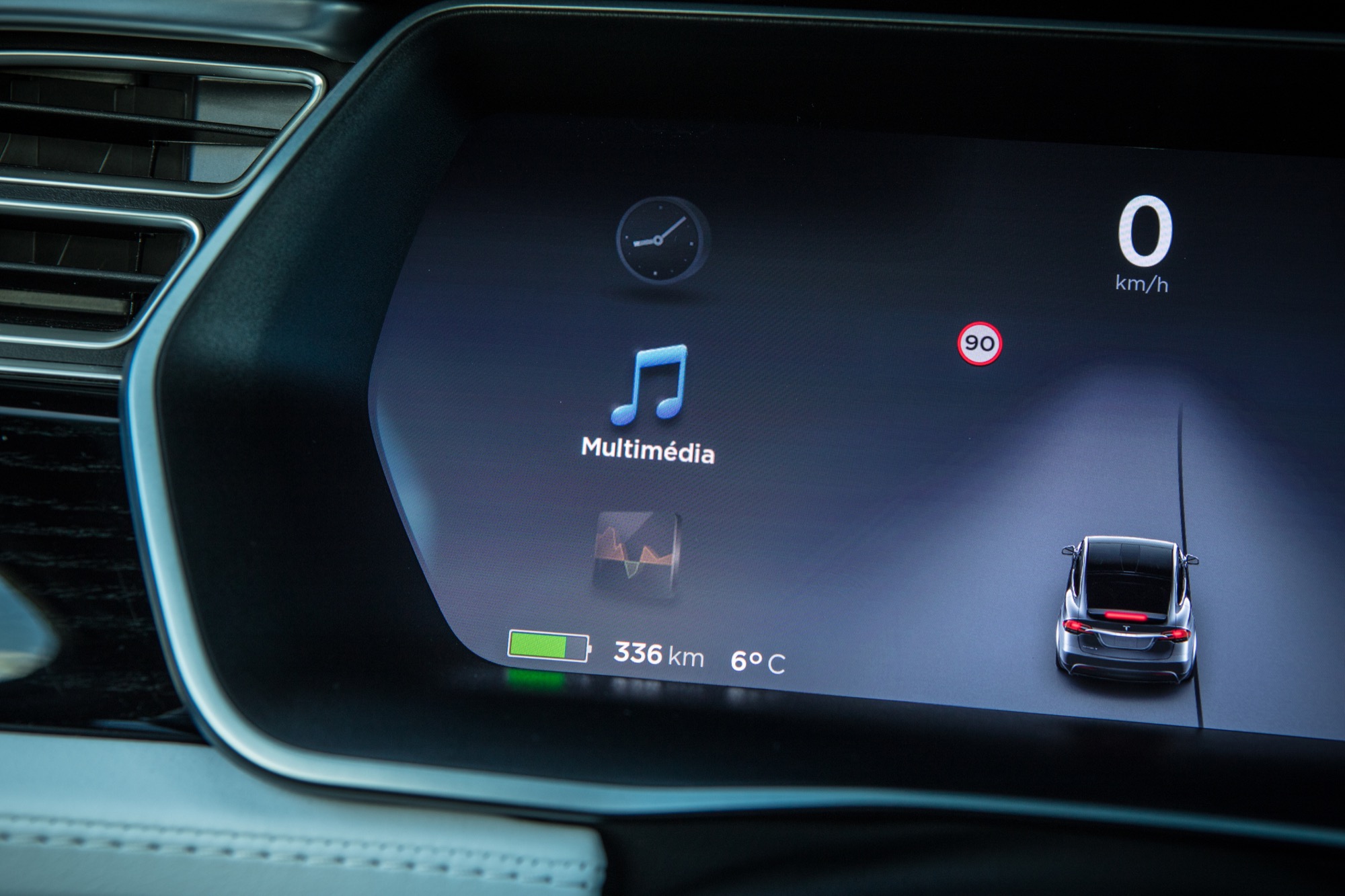 La conduite de l’auto inspire de toute façon beaucoup de calme, comme toujours avec les véhicules 100% électriques. Non pas que la puissance ou la confiance ne soient pas au rendez-vous, je pense que c’est surtout une question de bruit, de vibrations, plutôt de leur absence. La conduite est plus apaisée et c’est d’autant plus vrai avec ce pare-brise gigantesque et cet habitacle lumineux.