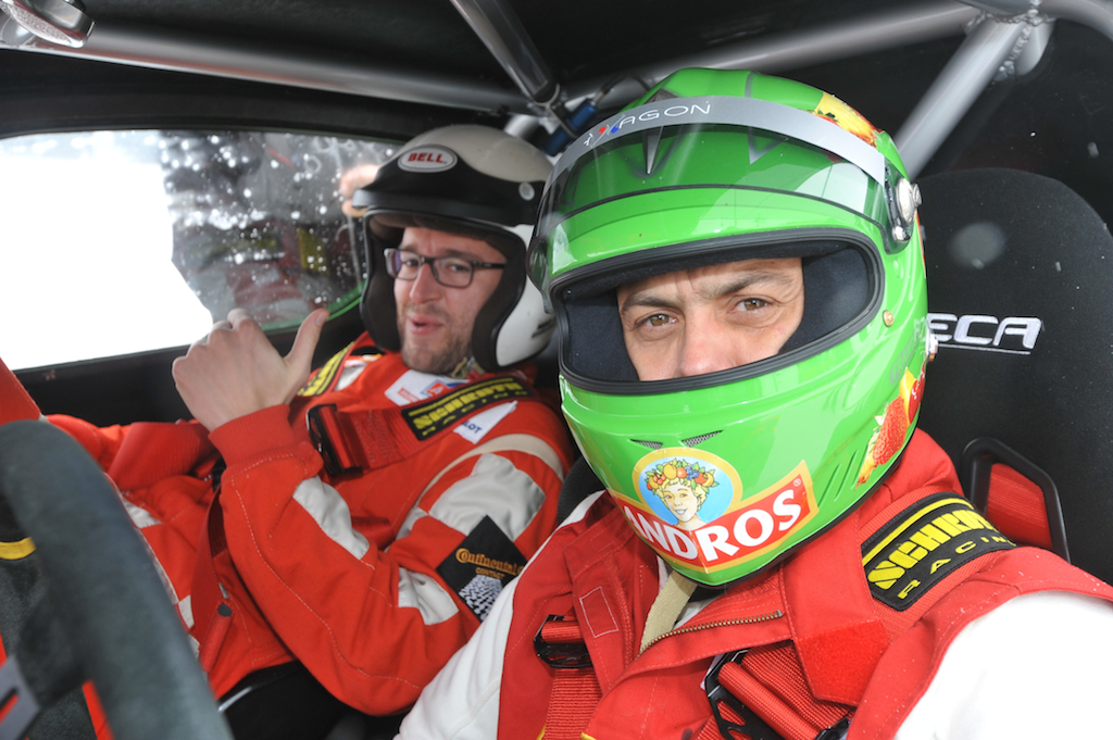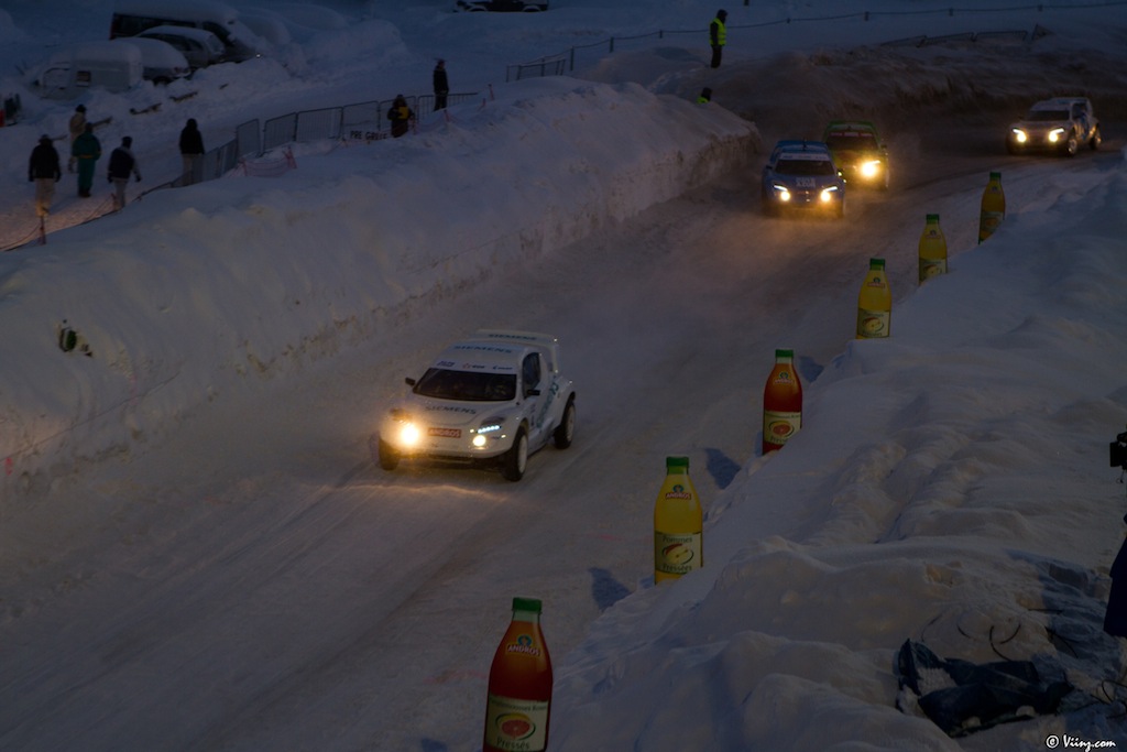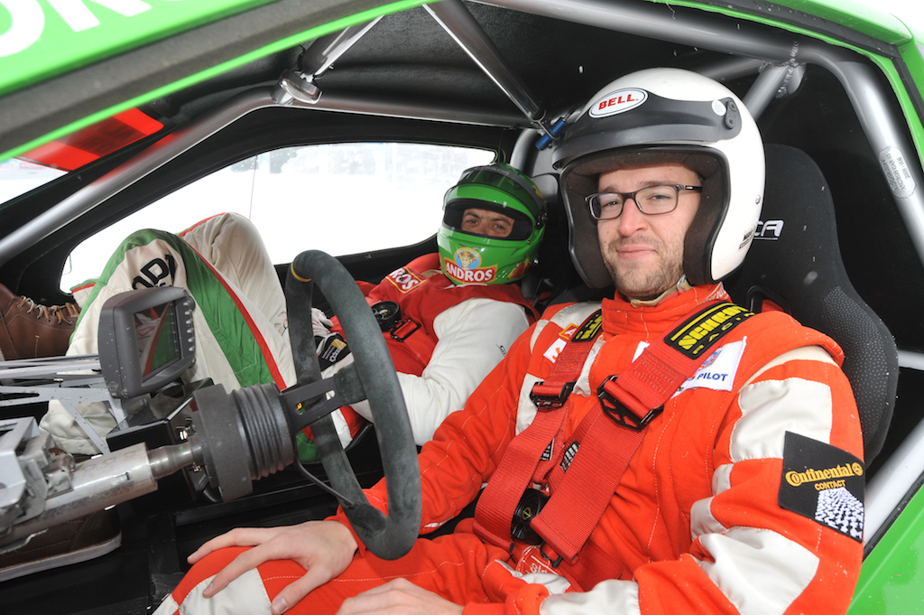 Toujours est-il que j’ai eu la chance de faire quelques tous à bord de cette voiture pas comme les autres, d’abord en tant que pilote, ensuite en tant que passager de Franck Lagorce puisque c’est lui qui nous prêtait gentiment sa voiture ! Hors de question de la casser donc, surtout que Franck était à mes côtés pour me conseiller et jauger un peu mon niveau sur la glace ! Première chose : il semble que je sache freiner, envoyer la voiture en dérive et doser l’accélération / dérive / volant. Sauf que j’ai quand même un mal fou à mettre la voiture complètement de travers puis à maintenir la glisse ! Question d’habitude me dit-on. Soit, il va falloir bosser alors.