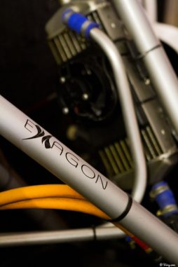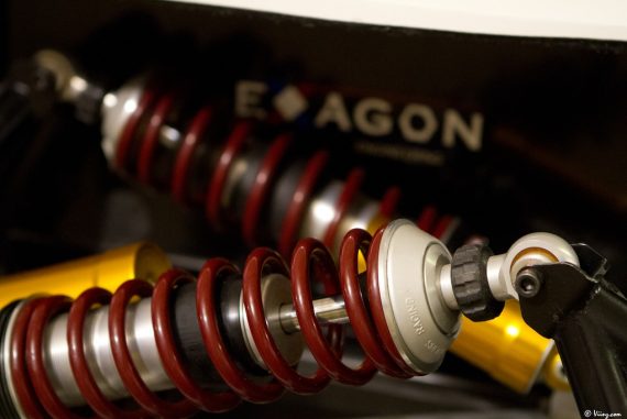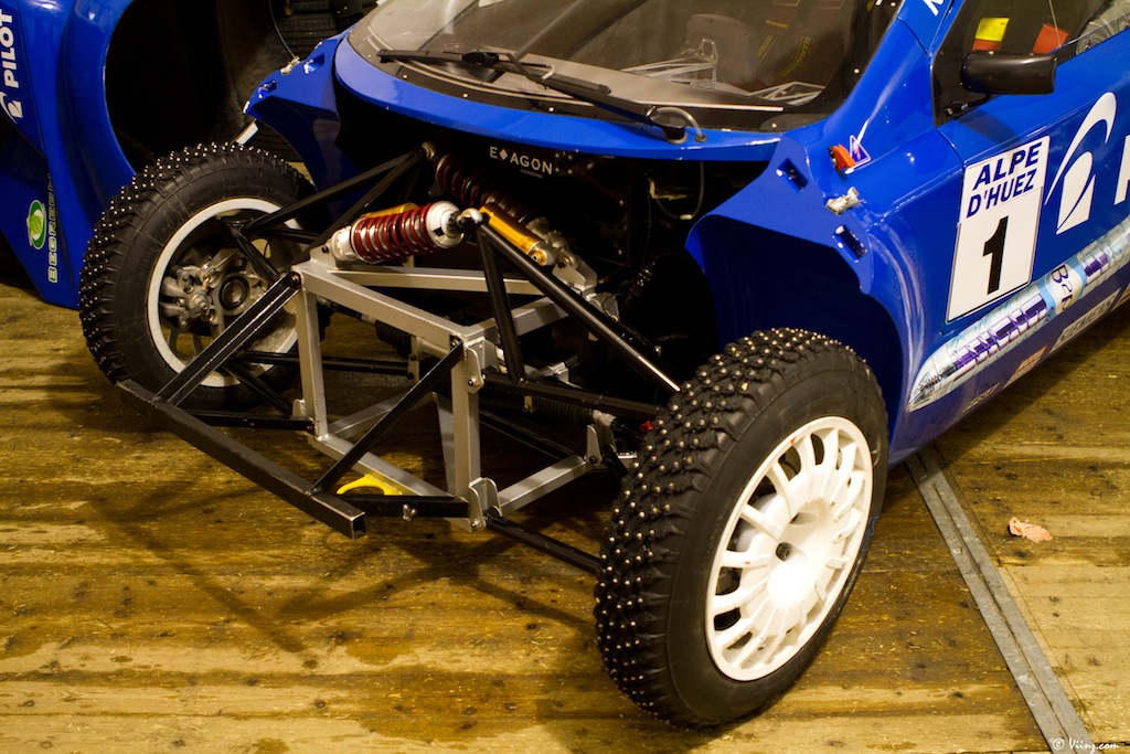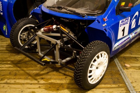 Le véhicule électrique développé par Exagon Engineering, c’est en fait une coque de fibre de verre posée sur un cœur mêlant à la fois une conception simple et robuste et une véritable innovation technologique. La conception simple et robuste, c’est la partie châssis et trains roulants, Exagon ayant développé quelque chose de peu coûteux mais répondant à toutes les exigences du Trophée que ce soit en terme d’endurance, de performance et de sécurité. L’entreprise basée sur le technocentre de Nevers-Magny Cours s’est en effet appuyée sur la grosse expérience en compétition de ses membres et de son fondateur, Luc Marchetti pour produire un véhicule peu cher mais très efficace.