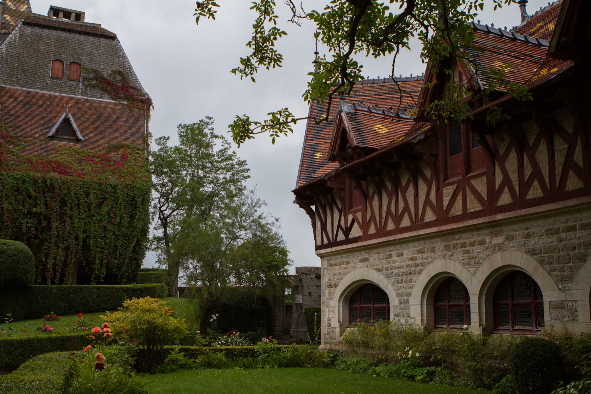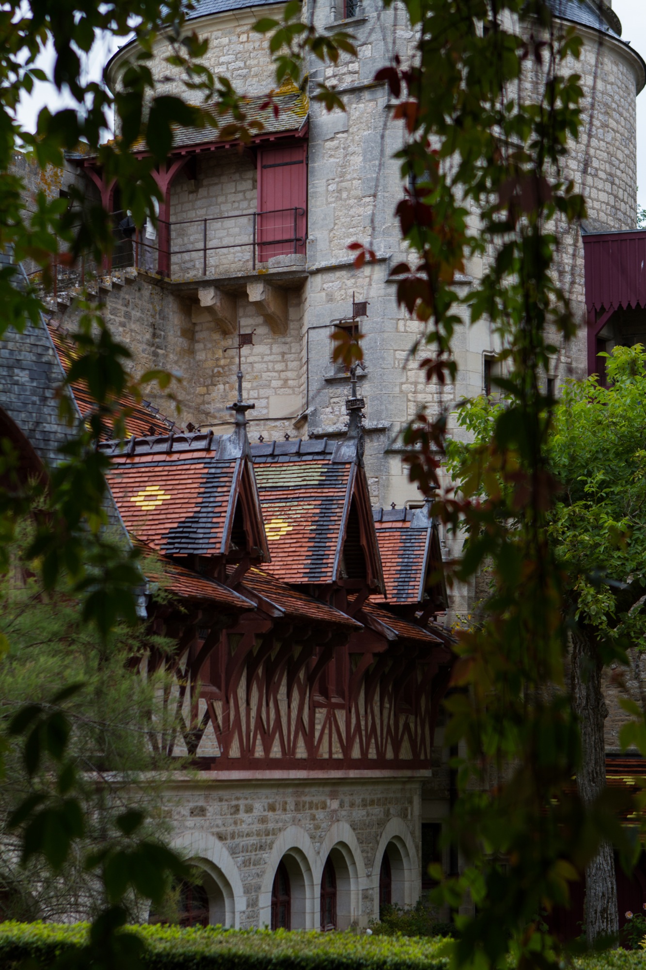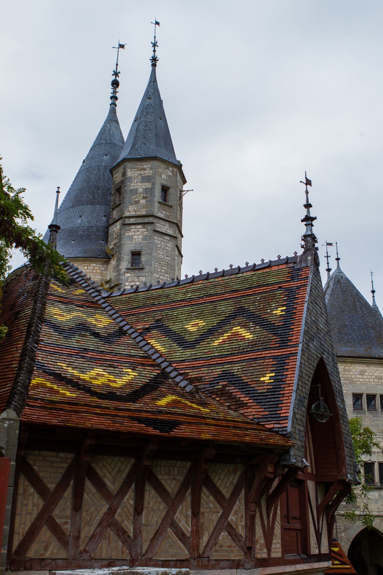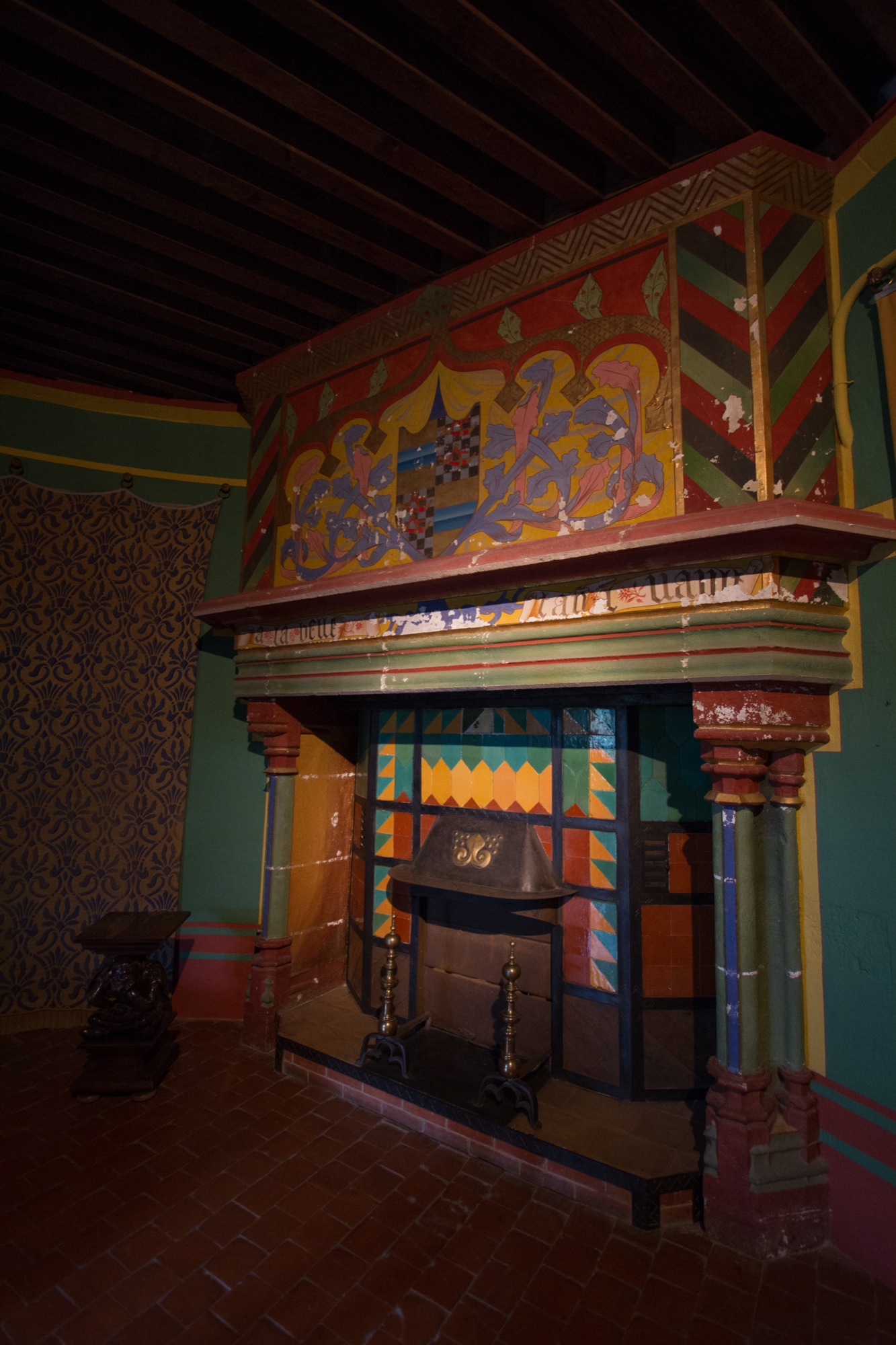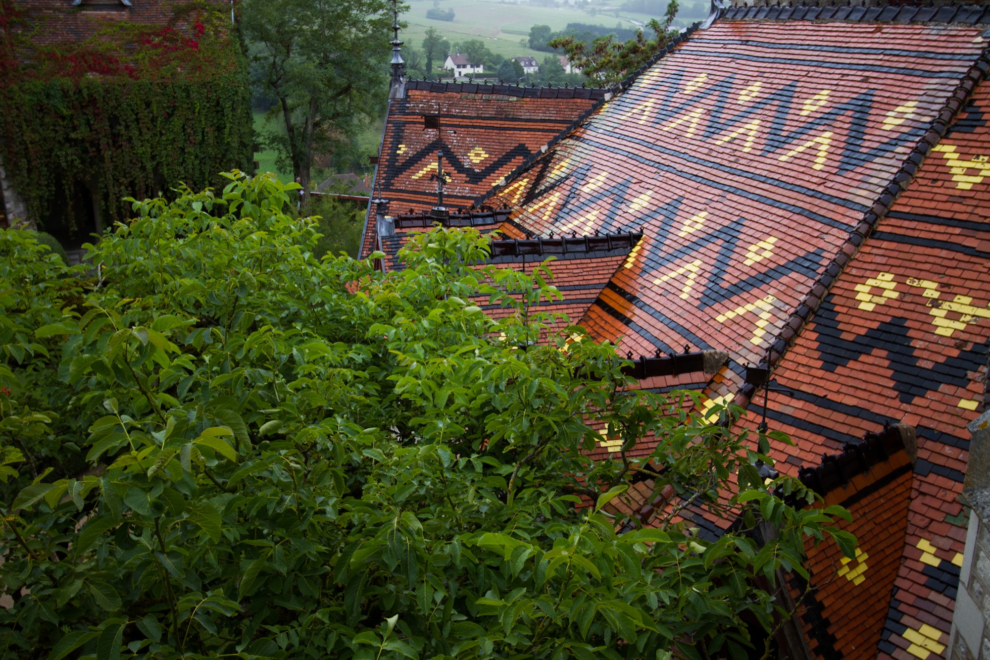 Sous des dehors somme tout assez quelconques (de la pierre, des tours, un pont-levis), ce château n’en est pas moins singulier une fois franchie la porte d’entrée. On découvre alors la cour principale du château, cernée de bâtiments aux toits multicolores. La visite commence d’ailleurs par la tour principale qui permet de prendre rapidement de la hauteur pour admirer d’une part le château et ses alentours et d’autre part les quelques chambres aux plafonds ronds qui la composent.