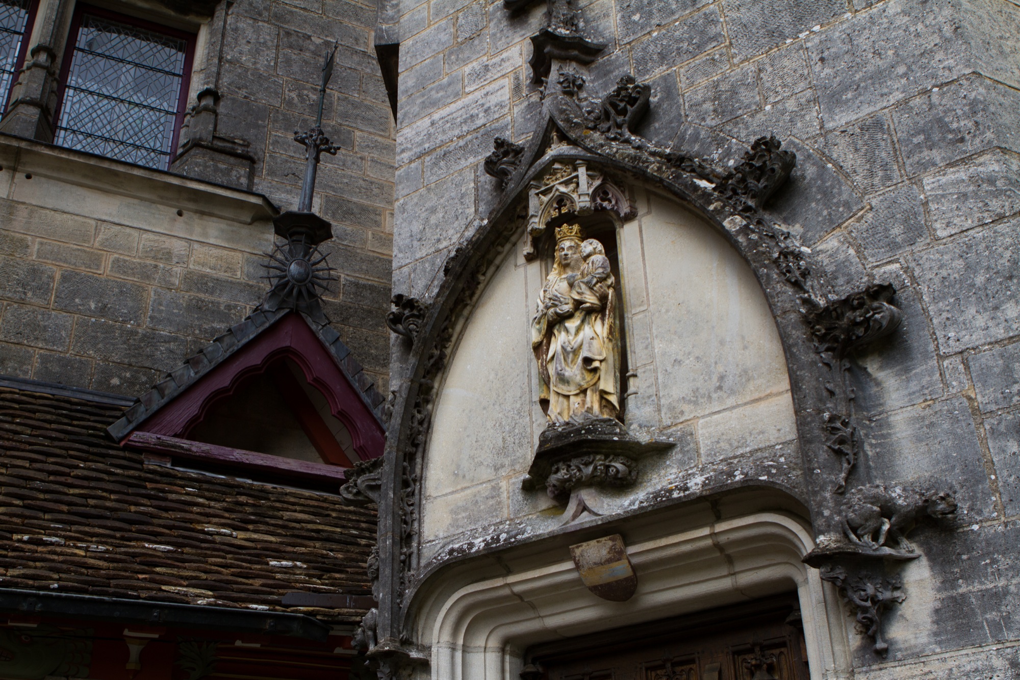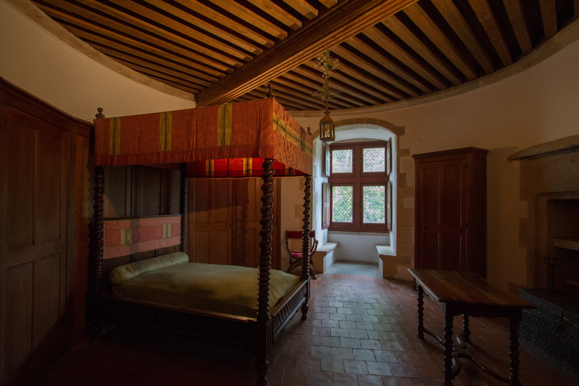 La tour se compose de deux chambres principales, l’une assez classique dans son genre et l’autre, chinoise. C’est l’occasion de réellement se pencher sur les origines du lieu. Devenu ruine et carrière de pierre, le château de la Rochepot est revenue à la vie à une époque où la France s’est éveillée à son capital médiéval, le (re)découvrant, élites comme populace. C’est dans ce contexte que Cécile Carnot, femme du président de la République Sadi Carnot, achète les ruines et fait reconstruire le château pour leur fils. Cette chambre chinoise est donc témoin de cadeaux de l’impératrice de Chine à Sadi Carnot, tout “simplement”. Deux accès vers l’extérieur permettent par ailleurs de dominer la cour principale et de se gorger les pupilles des incroyables toits colorés du château.