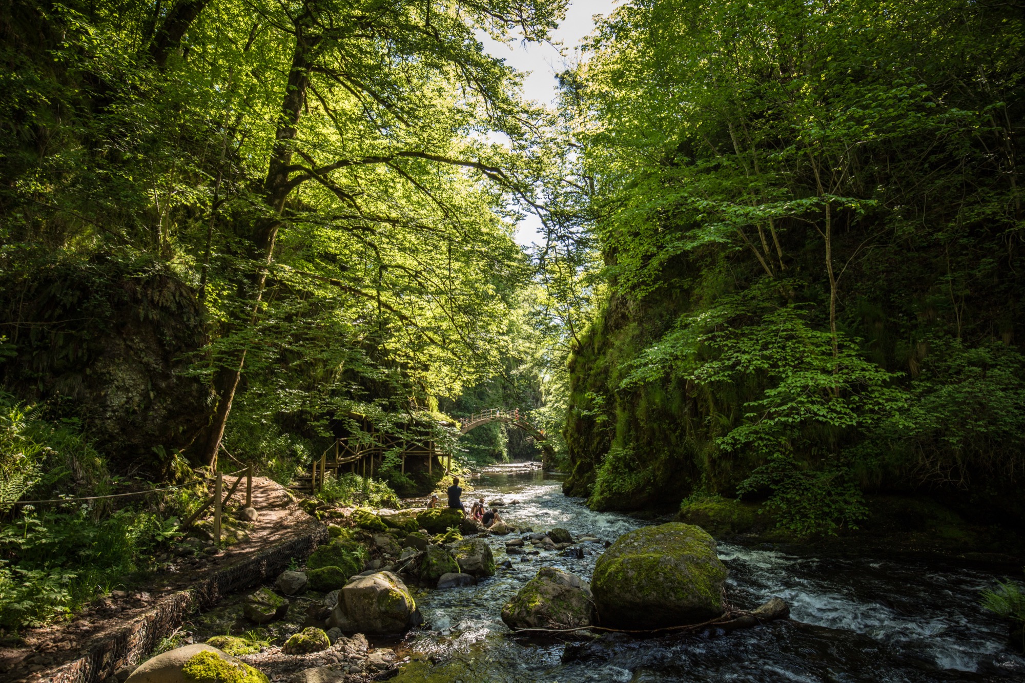 Pour terminer ce premier voyage très satisfaisant dans le Cantal, j’ai choisi une petite attraction de la vallée où je randonnais : les gorges de la Jordanne. Le parcours, initialement utilisé par les bergers et fermiers, était l’une des rares voies d’accès au fond de vallée, critique pour les être humains d’il y a plusieurs siècles ou millénaires !