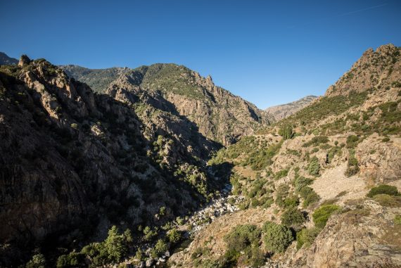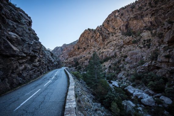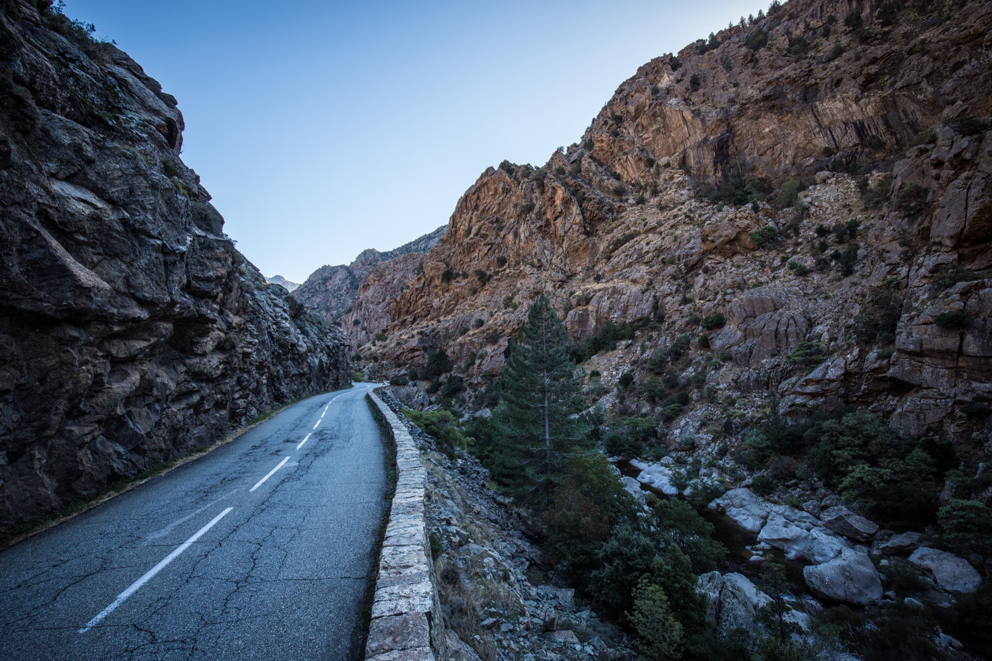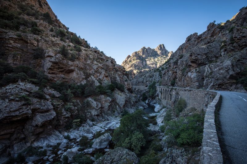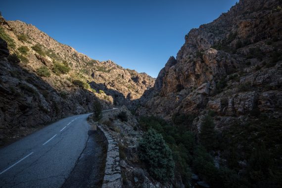 La journée commence (au delà du fait de remplir la voiture) par un bout de route tout à fait spectaculaire et nommé Scala Di Santa Regina. Ce défilé, avec ses roches superbes, ses flancs escarpés et sa sauvagerie, protège l’un des accès à l’une des vallées les plus pures et dures de Corse : le Niolo.