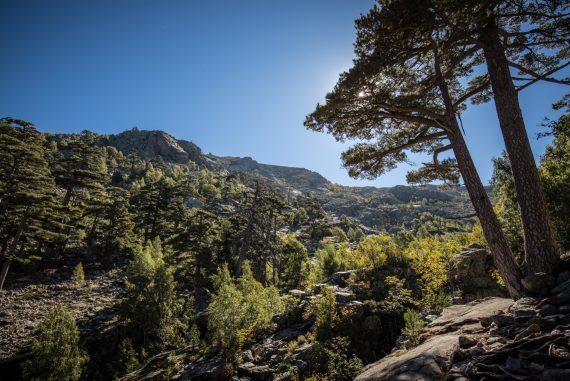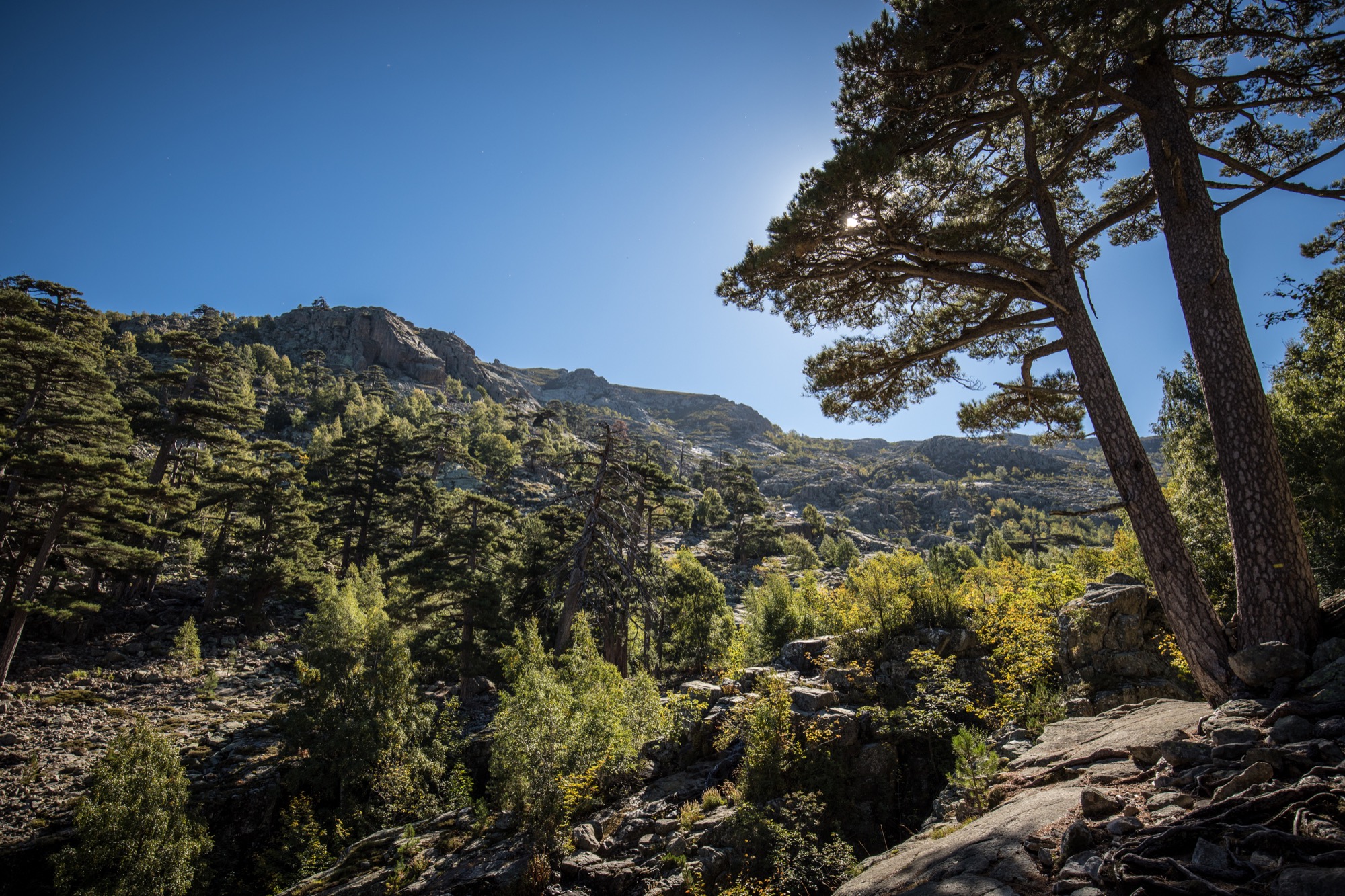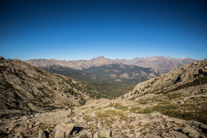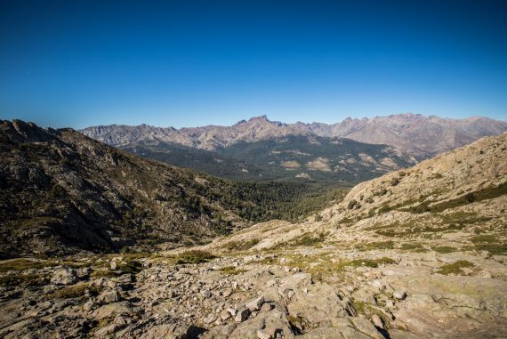 La descente par le même chemin est donc un peu teintée de la nostalgie de ce moment improbable et privilégié, alors que tous deux reprennent le GR20 pour continuer leur marche. De notre côté, nous retraversons le désert minéral donnant sur le Cinto, nous admirons une nouvelle fois les pins laricio avant de retourner prendre un verre et un café à Calaluccia.