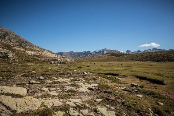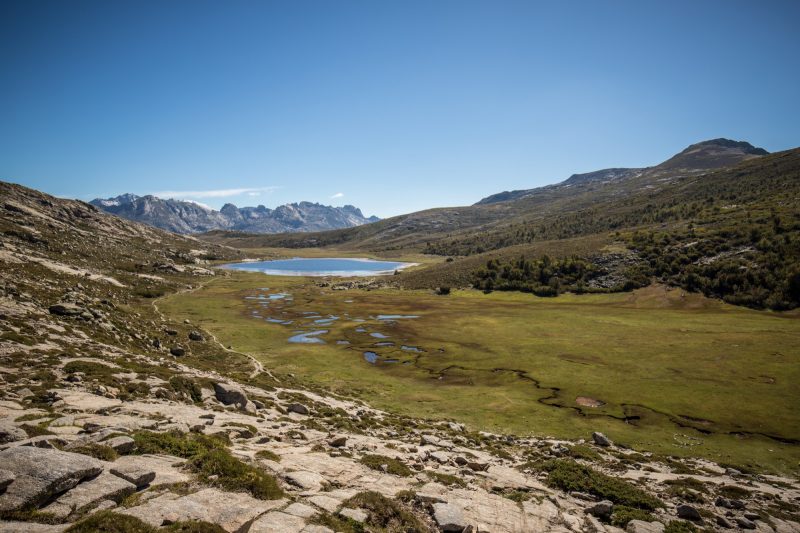 La crête, la voilà. La claque est instantanée, passée la petite croix qui marque son point de traversée. Le lac de Nino est sublime, avec sa petite plaine humide creusée de pozzines. Au loin, la crête du Rotondo est visible, avec quelques morceaux de la randonnée faite autour du Melo et du Capitello. Impossible de ne pas rester bouche bée devant ce paysage.