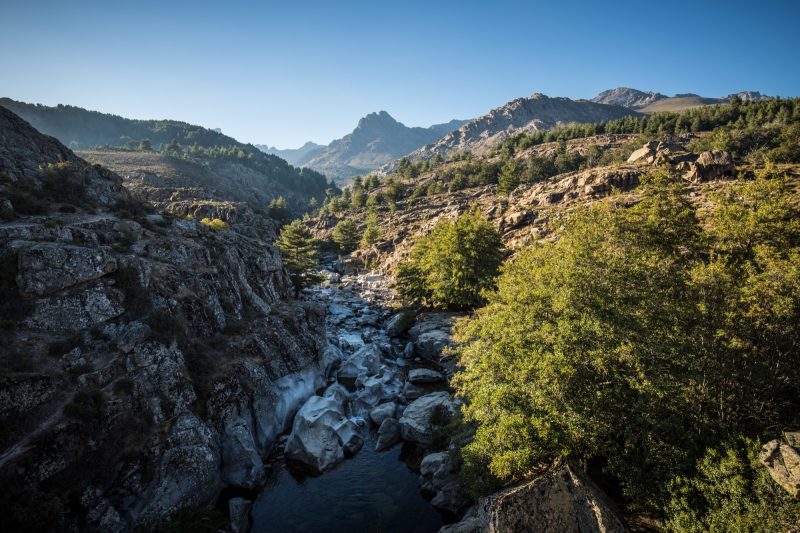 Après la traversée de cet incroyable défilé, je continue ma route en direction du point de départ de ma randonnée du jour ! Je dépasse le lac de Calaluccia et le village éponyme, ainsi que celui de Albertacce pour finalement atteindre, après avoir évité un très grand nombre de cochons corses, le parking de l’ONF, à la frontière entre Haute-Corse et Corde du Sud.