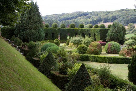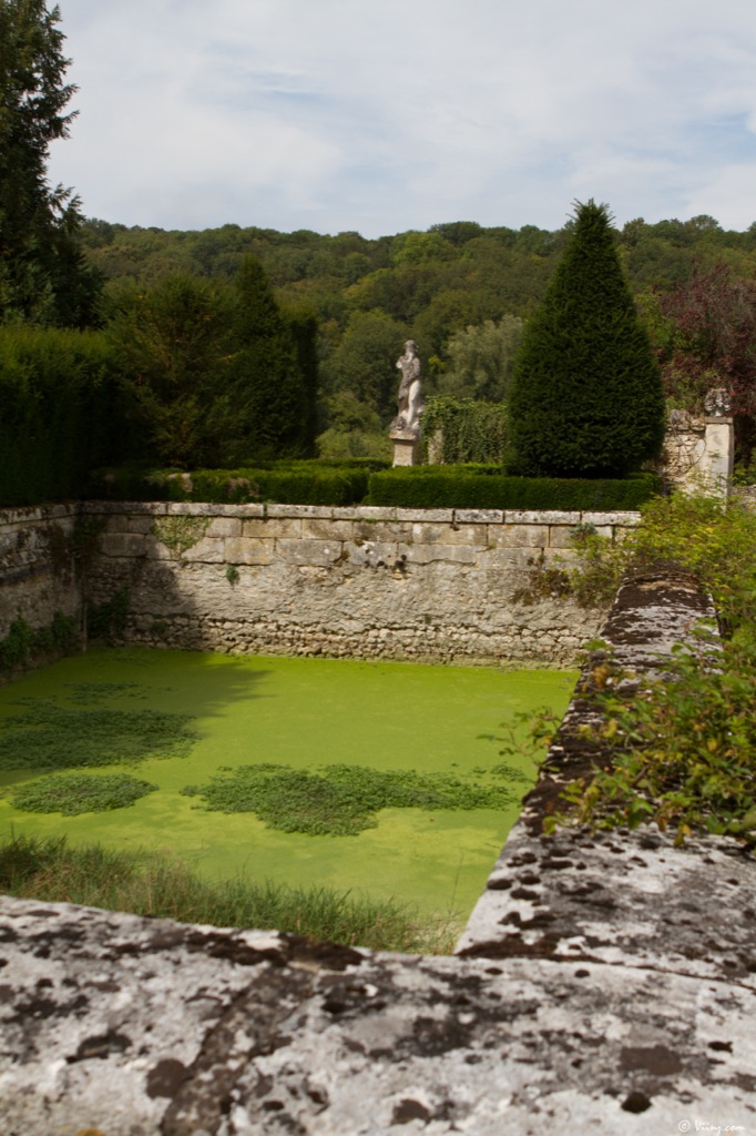 On continue avec la portion centrale de la terrasse basse, ses bassins et sa fontaine de vasques successives donnant finalement sur le jardin de la Lune, bien joli mais l’ensemble semble manquer cruellement d’entretien… C’est cela qui m’a dérangé à Ambleville : le château est magnifique, le jardin aussi mais on a une impression de léger abandon.