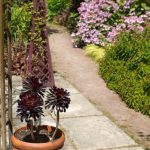 Dernier tableau avant la collation salvatrice, le jardin rouge et ses Aeonium Arboreum Schwarzkopf, plantes hallucinantes que je ne connaissais pas et que je verrais bien à la maison… Jugez plutôt !