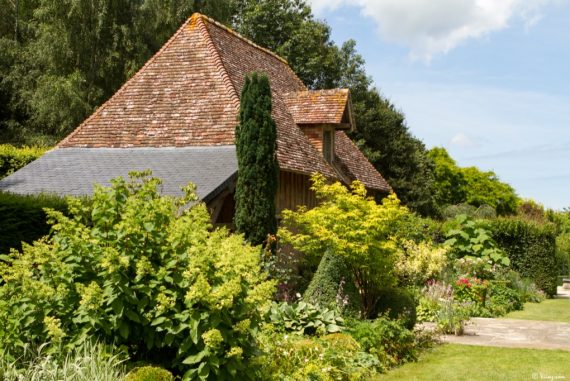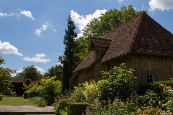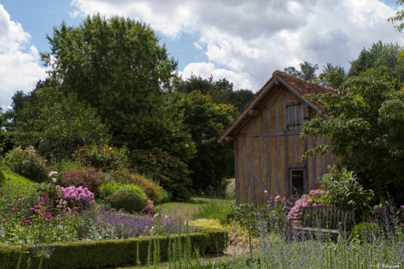 Enfin, on retrouve l’allée principale traversée alors qu’on se rendait dans le jardin des senteurs… Une sublime masure normande y trône, entourée d’une profusion de verdure. Un véritable tableau.