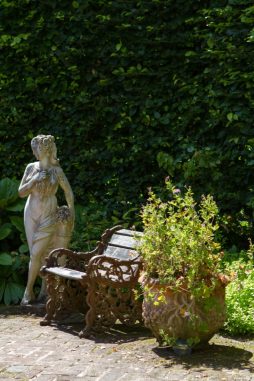 L’espace suivant, peuplé de rosiers aux senteurs éclatantes, n’est pas en reste. Finalement, mon cœur balance quand je vois ce banc environné d’herbes et que mon nez se perd dans les pétales de telle ou telle beauté légèrement fanée relâchant avec ferveur son parfum.