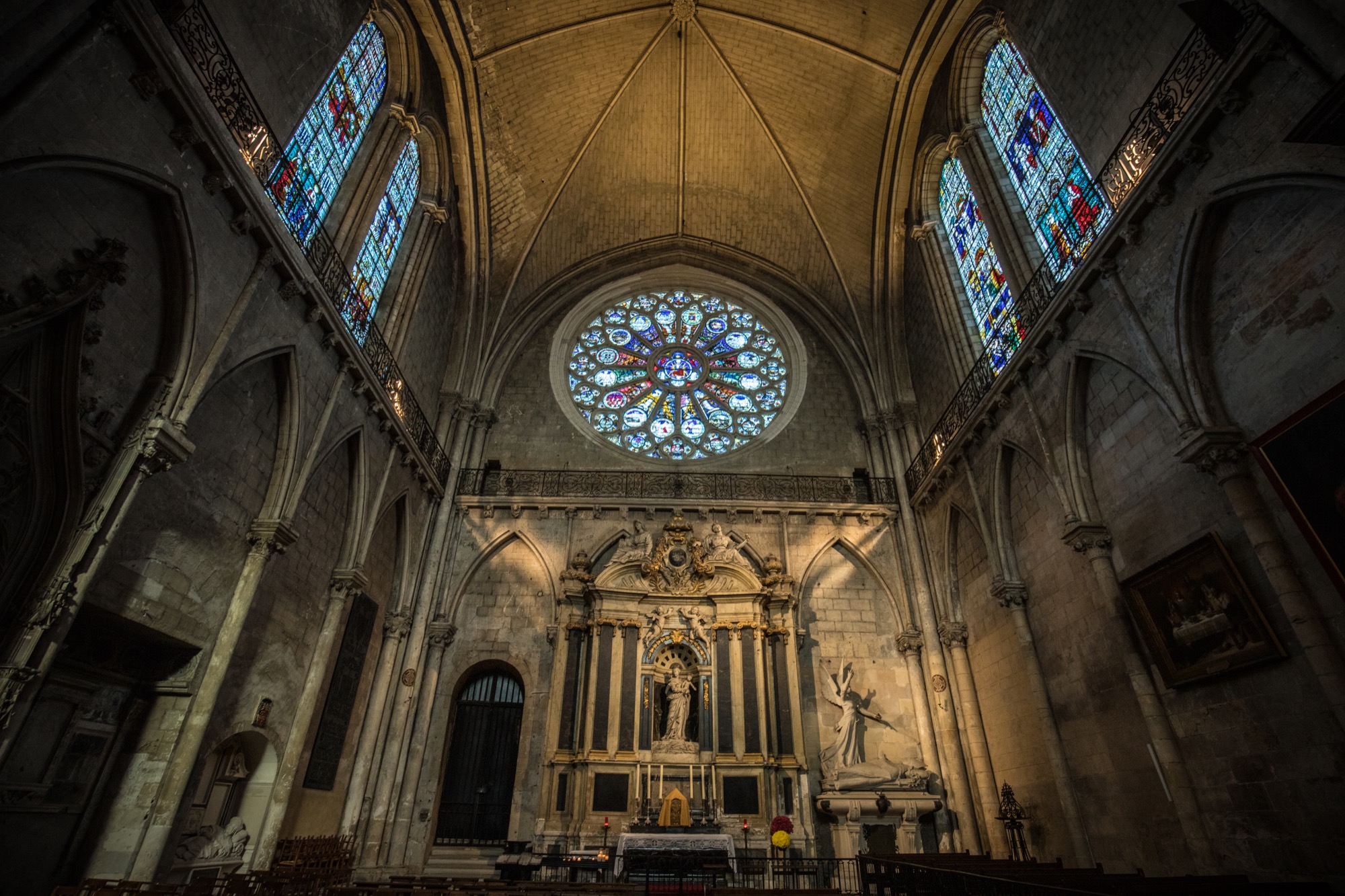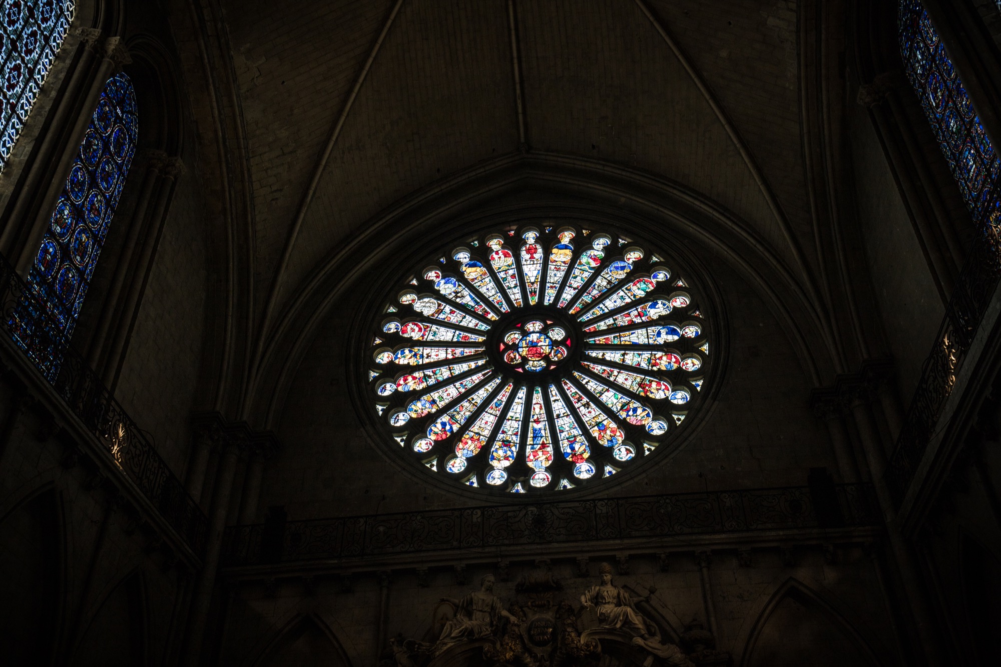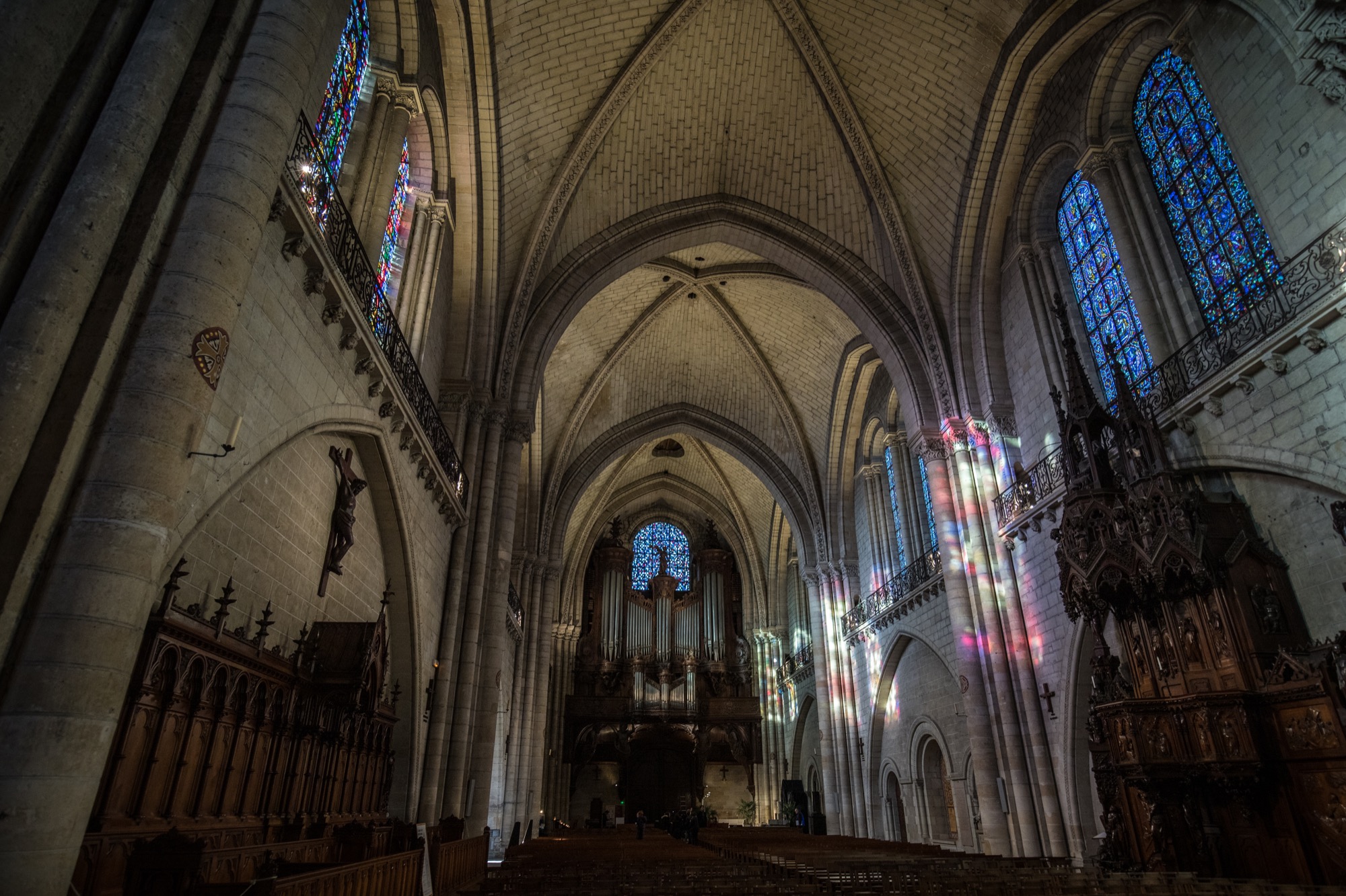 La cathédrale agit comme un aimant, bien que sa façade soit partiellement recouverte d’un échafaudage destiné à la restauration de la rosace que l’on imagine superbe. Si la façade d’une verticalité à tomber à la renverse et ses flèches de 74 mètres de haut impressionnent déjà, ce sont en fait ses vitraux qui datent du XIIème siècle côté gauche ! D’autres sont là depuis le XIIIème et le XVème, miraculeusement préservés.