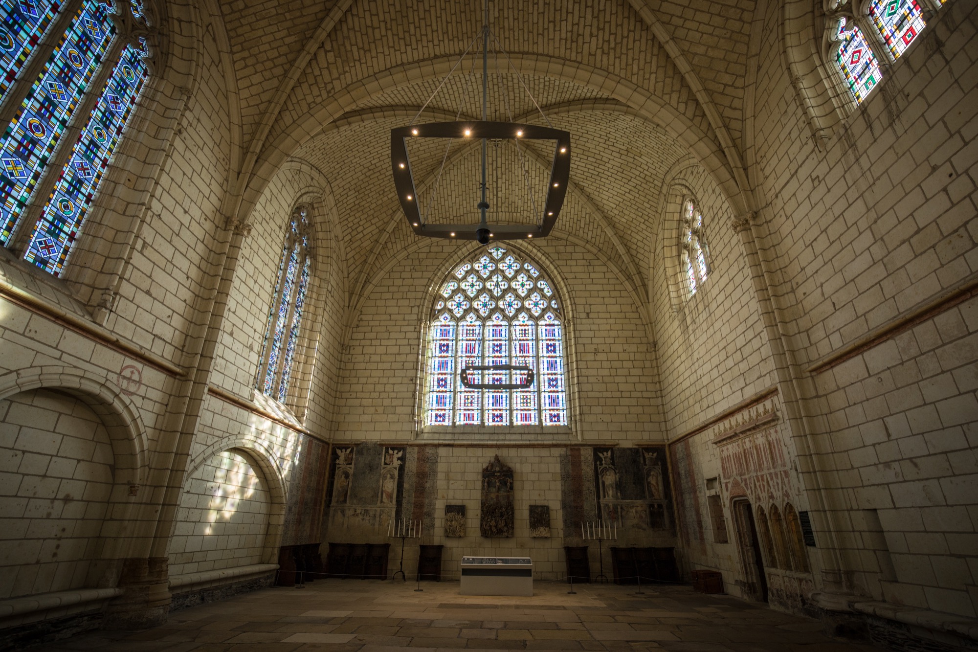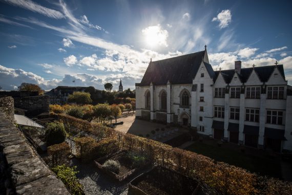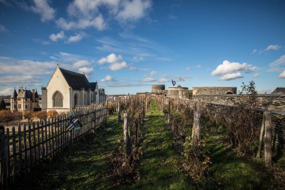 On continue ensuite sur le beau chemin de ronge en passant par la tour du Moulin et les improbables jardins suspendus, vigne incluse. Superbes, surtout avec quelques couleurs automnales et ce soleil typiquement “douceur angevine”. On rejoint enfin la Porte des Champs, l’ancienne porte dont je parlais en début d’article, avec le logis du gouverneur attenant. Sans oublier la délicate chapelle dont certains vitraux sont d’origine !